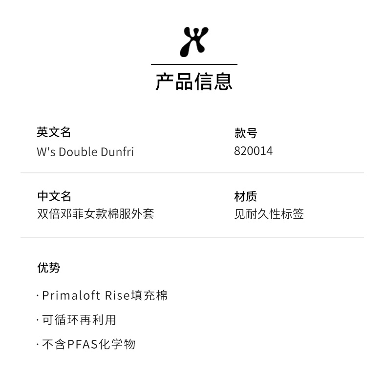 HOUDINI胡丁尼 Double Dunfri双倍邓菲女户外冬季保暖连帽棉服棉衣 820014