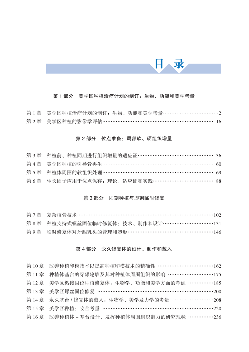 美学区种植是医生对患者各种信息的综合评判,然后综合运用种植各项技术进行的一种治疗过程,因此也代表着种植领域的最高诊疗水平。本书从临床诊疗出发,详细介绍了美学区种植治疗计划、放射学评估、局部软硬组织增量及处理、暂时修复体的制作、永久修复体的种类选择和戴牙、咬合的设计与考量。除此以外,还介绍了局部生长因子的使用、改善种植义齿组件设计和治疗流程以提高组织再生的内容。全书展示了大量的相关临床病例,可以给读者非常直观实用的诊疗建议,是一本难得的临床参考书。