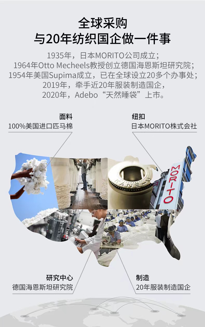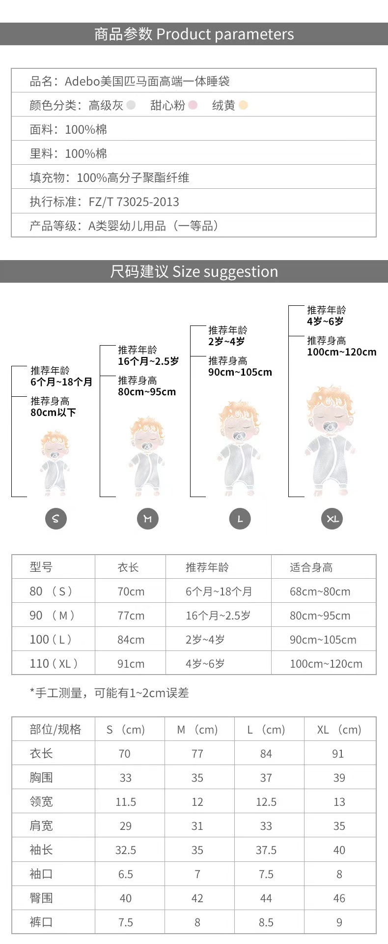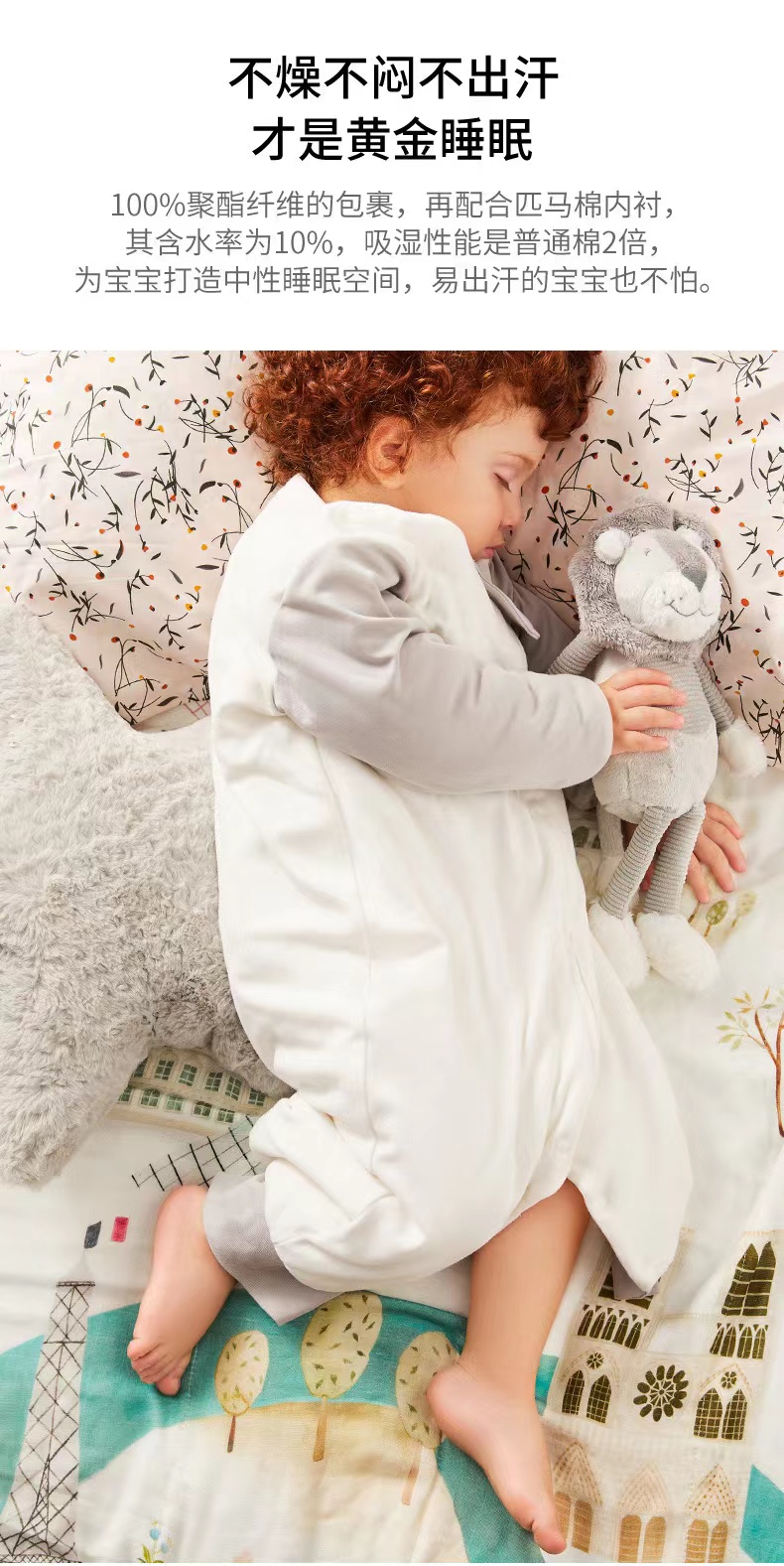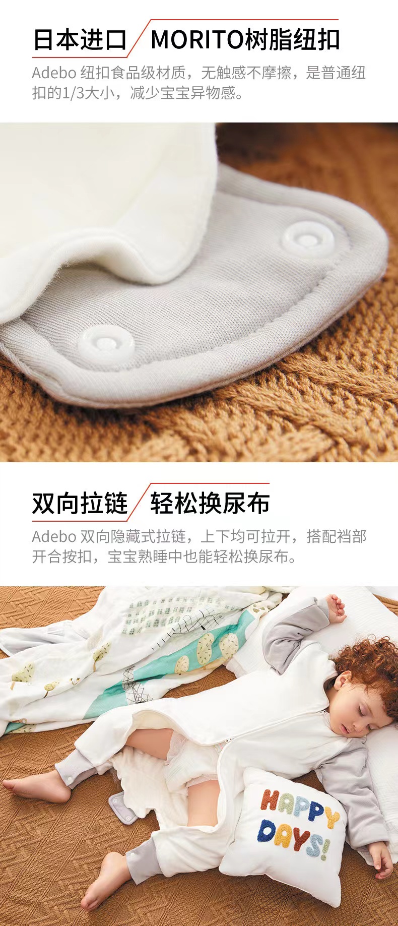 【美国进口匹马棉 宝宝可以“舔”的睡袋 】Adebo婴儿恒温睡袋秋冬款儿童分腿式婴儿加厚衣服防踢保温睡袋美国品牌