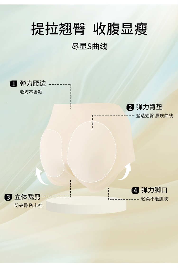 雅黛丽无痕内裤夏季薄款高腰三角裤3D提臀显瘦短裤简约高弹裤头