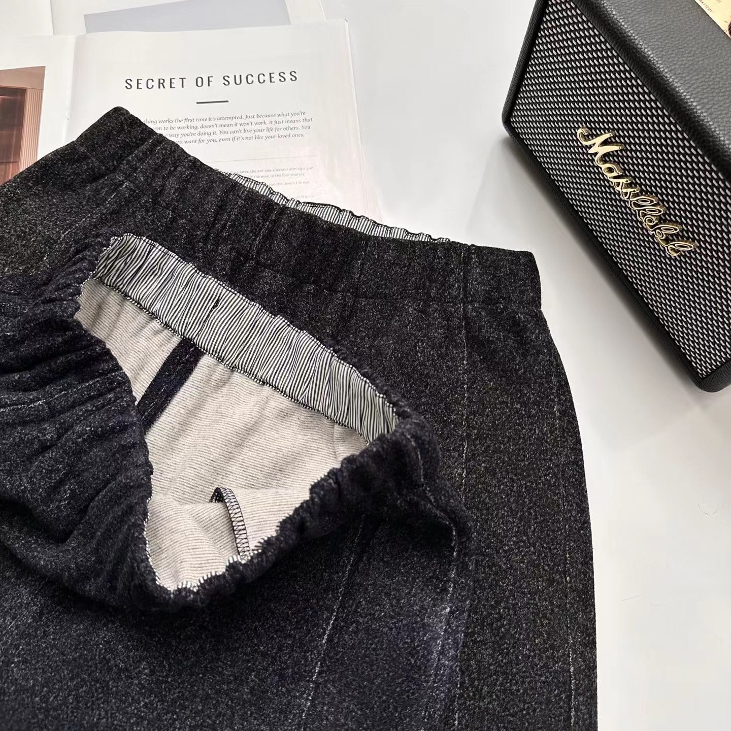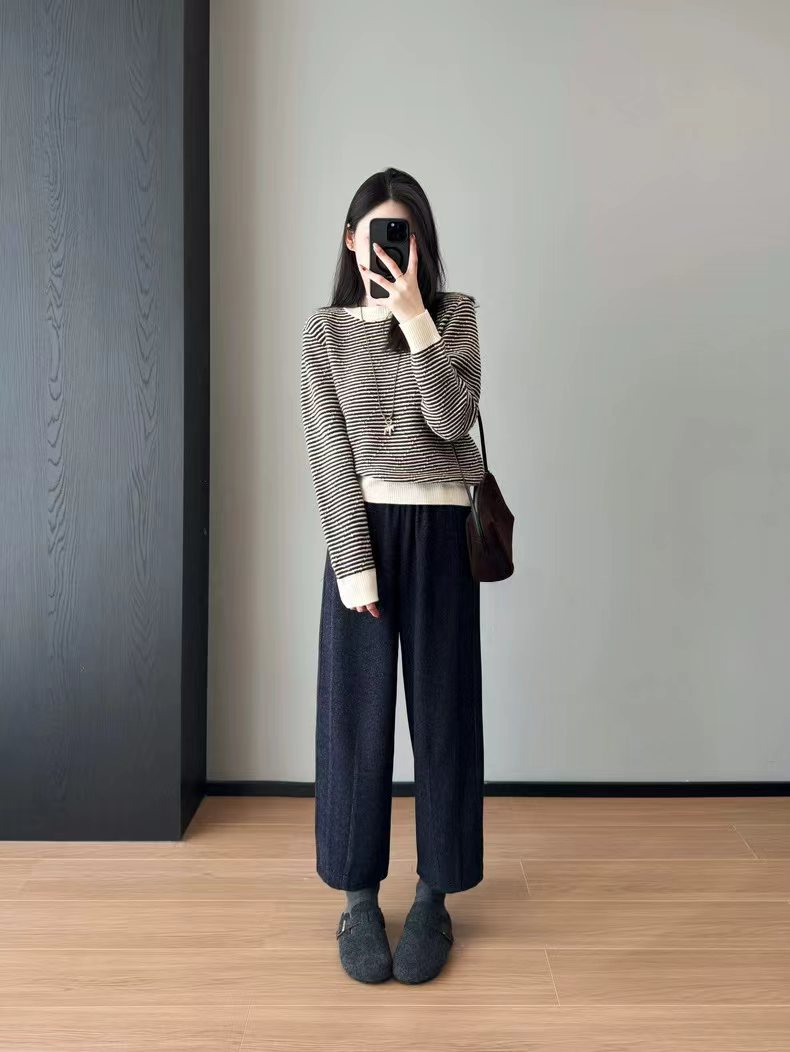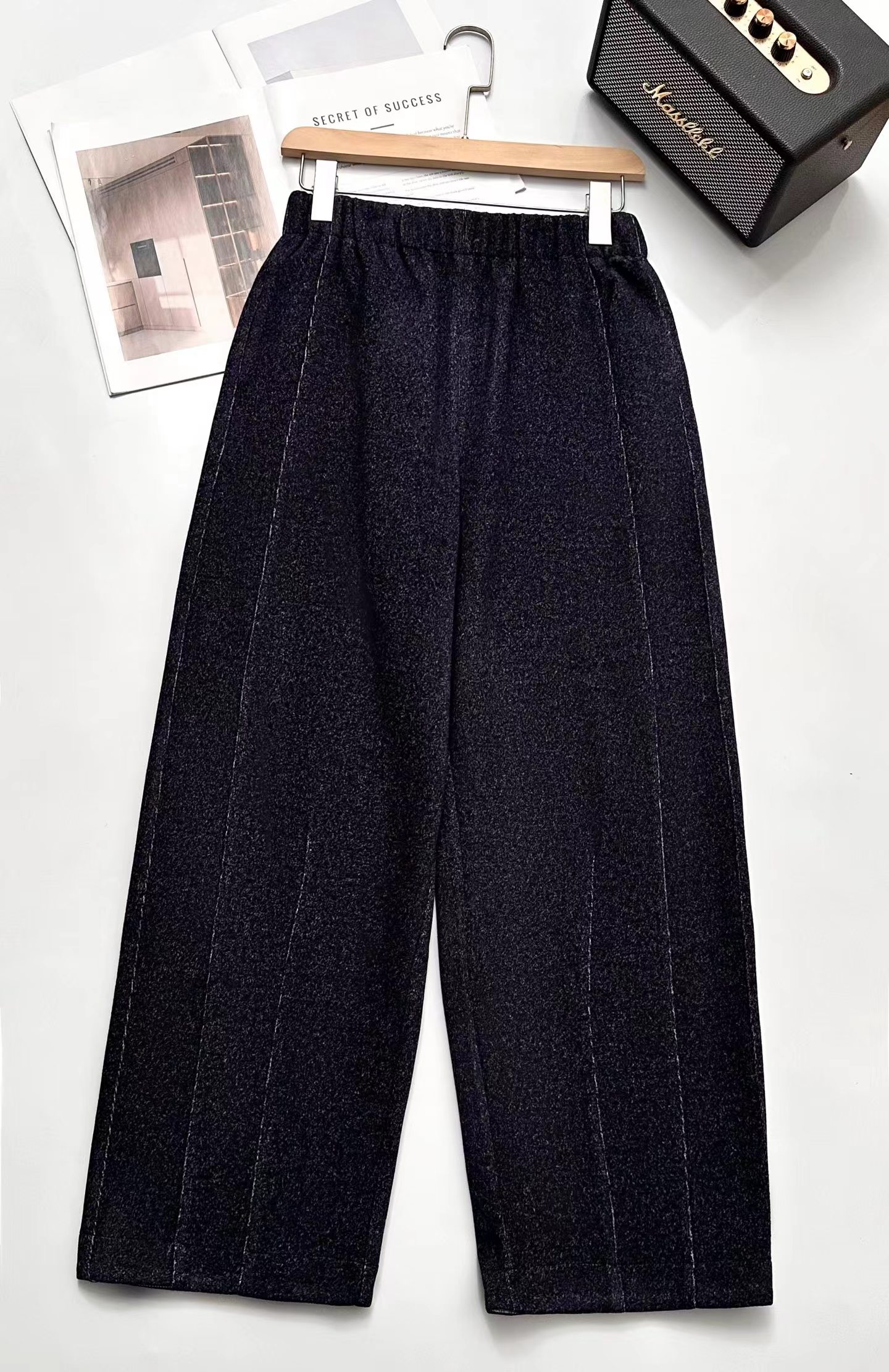 花纱柏林裤!冬季保暖加厚磨毛松紧高腰山本羊毛毛呢马丘裤一条由内而外,从版型到材质都让人无可挑剔的一款裤子!马丘裤与羊毛的结合,保暖又时髦,版型挺括不拖沓!定制面料!版型质感都巨好~裤型巨洋气~上身挺括显瘦~属于难得遇到的好面料!足足等了一个月终于出货了~!大工厂出货!质量真的太好了!既有通勤该有的率性干练,也有适合日常生活该有的舒适灵活上身非常舒适,修饰身材,包容大多数人的腿型,率性洒脱随性舒适还带点复古的调调,舒适有型两不误。版型 非常 遮肉显瘦的萝卜裤版型,有一点慵懒的休闲风范,垂坠有型不容易松垮,对于各种身材都很友好,全松紧腰头,给呼吸和活动都带来了舒适的穿着感受,裤腿由上而下逐渐收拢将胯部多余的肉肉都遮盖起来,利落有型,裤腿足够宽松,整体线条流畅,面料舒适有质感,面料软糯厚实、手感柔软舒适保暖性好,零压力,零束缚~