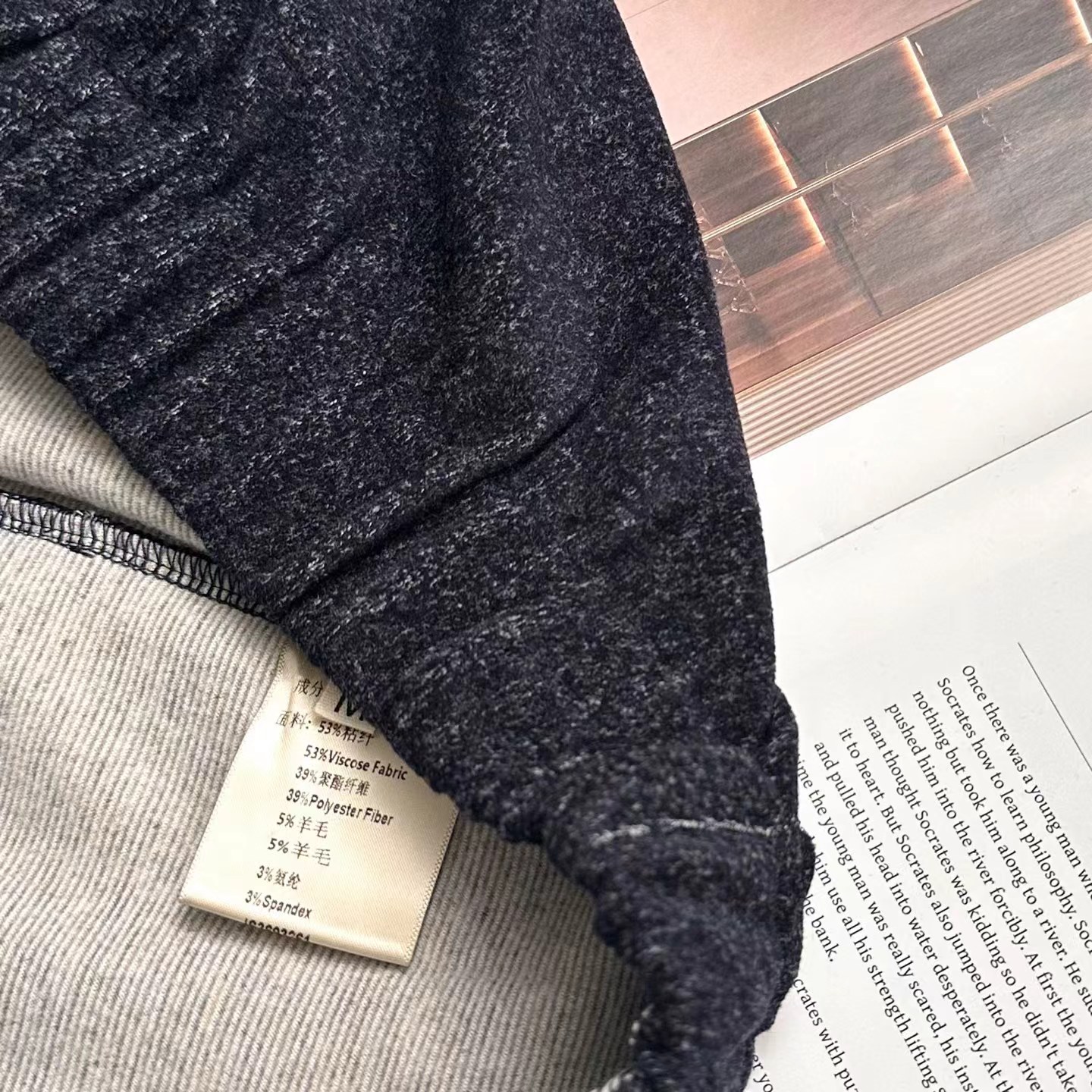 成分:53%粘纤39%聚酯纤维3%氨纶5%羊毛