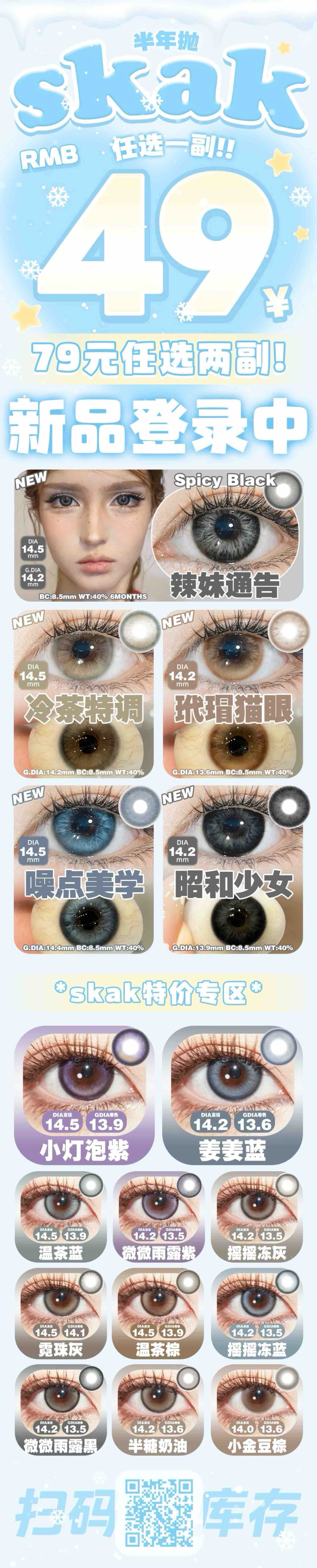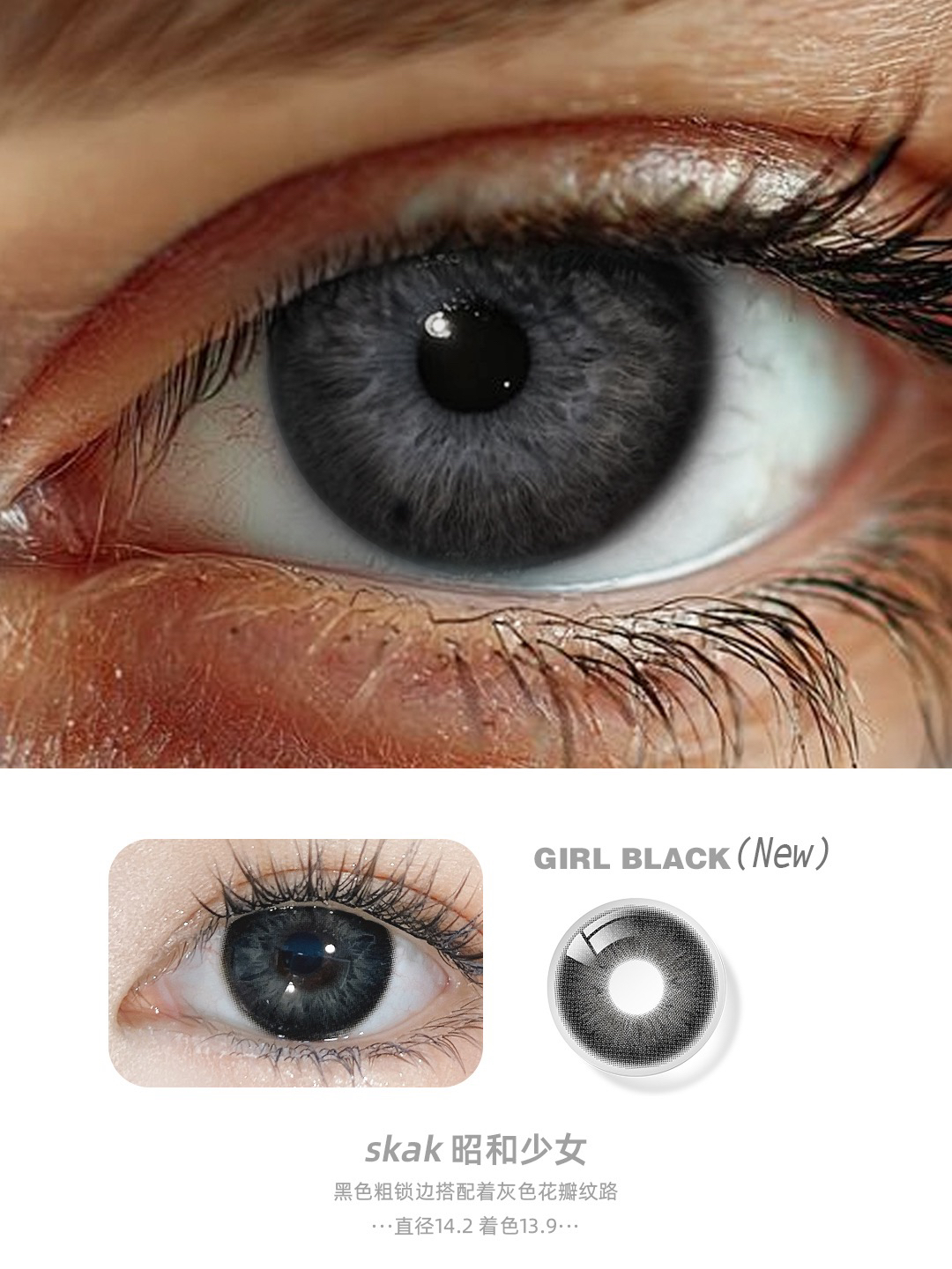 SKAK半年抛辣妹通告/昭和少女等小直径大直径灰色棕色黑色蓝色美瞳