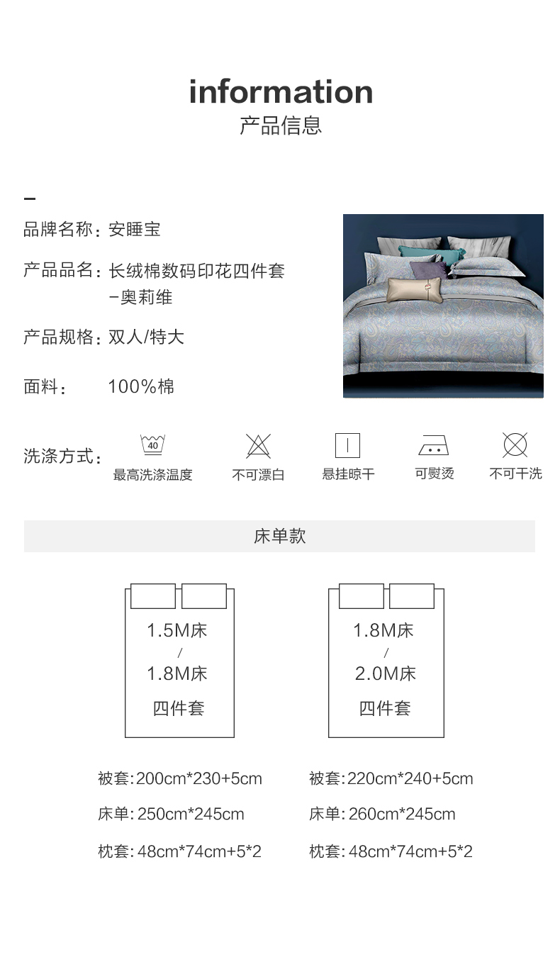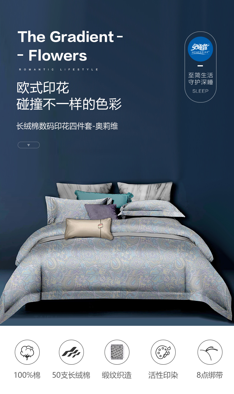【春上新】10楼 安睡宝 长绒棉数码印花四套件-奥莉维 吊牌价3999-4299元 活动价1699-1799元