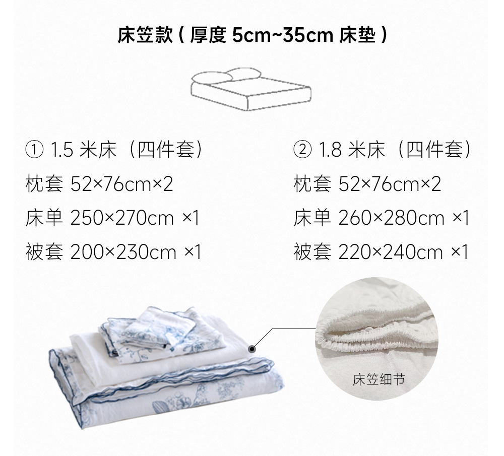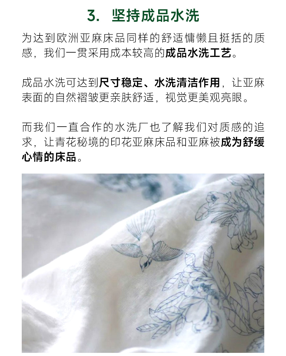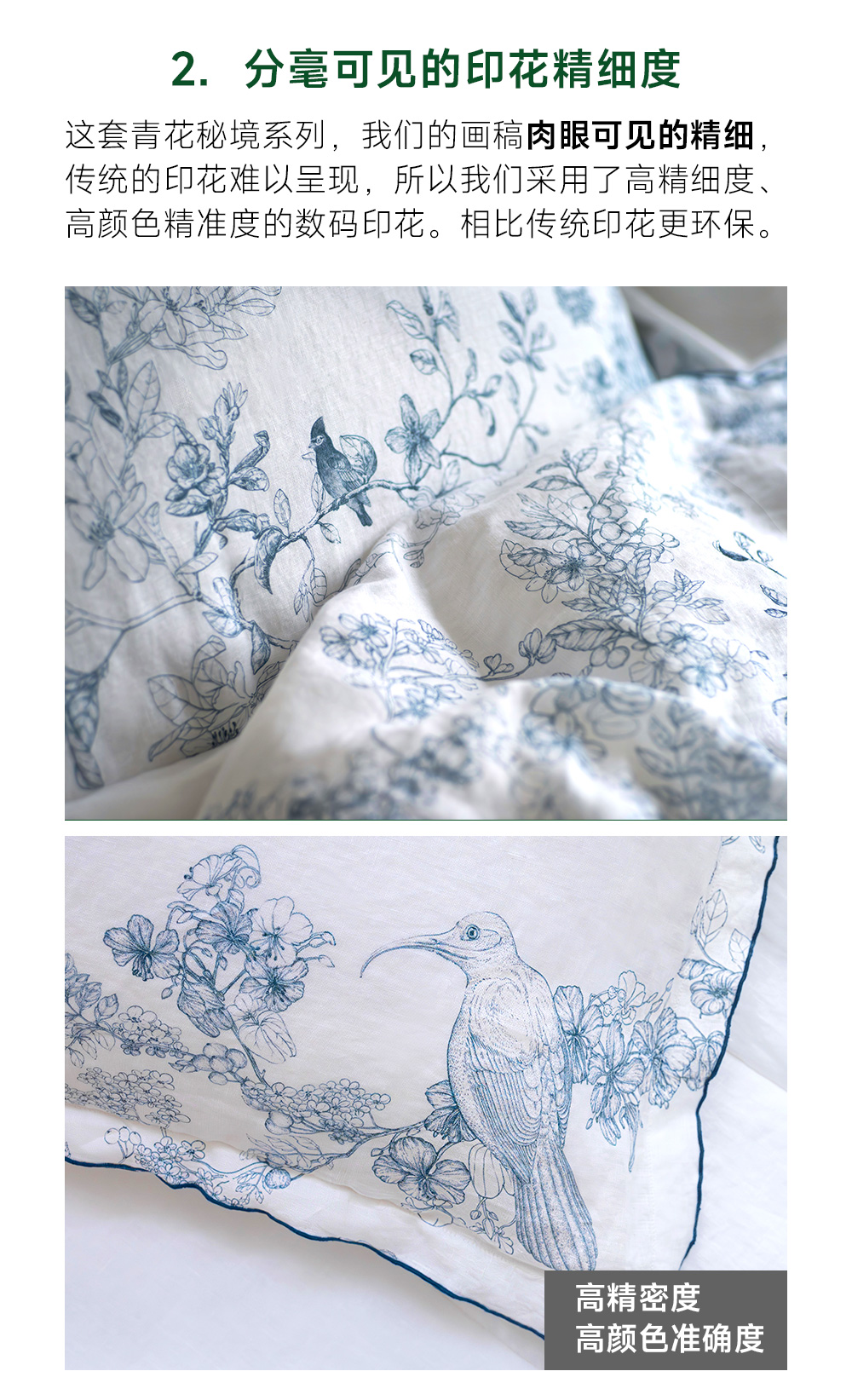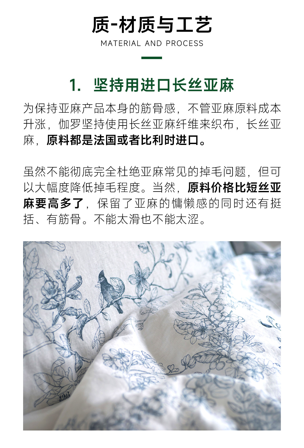 伽罗 JALO 青色茶色青花秘境系列水洗印花亚麻床品
