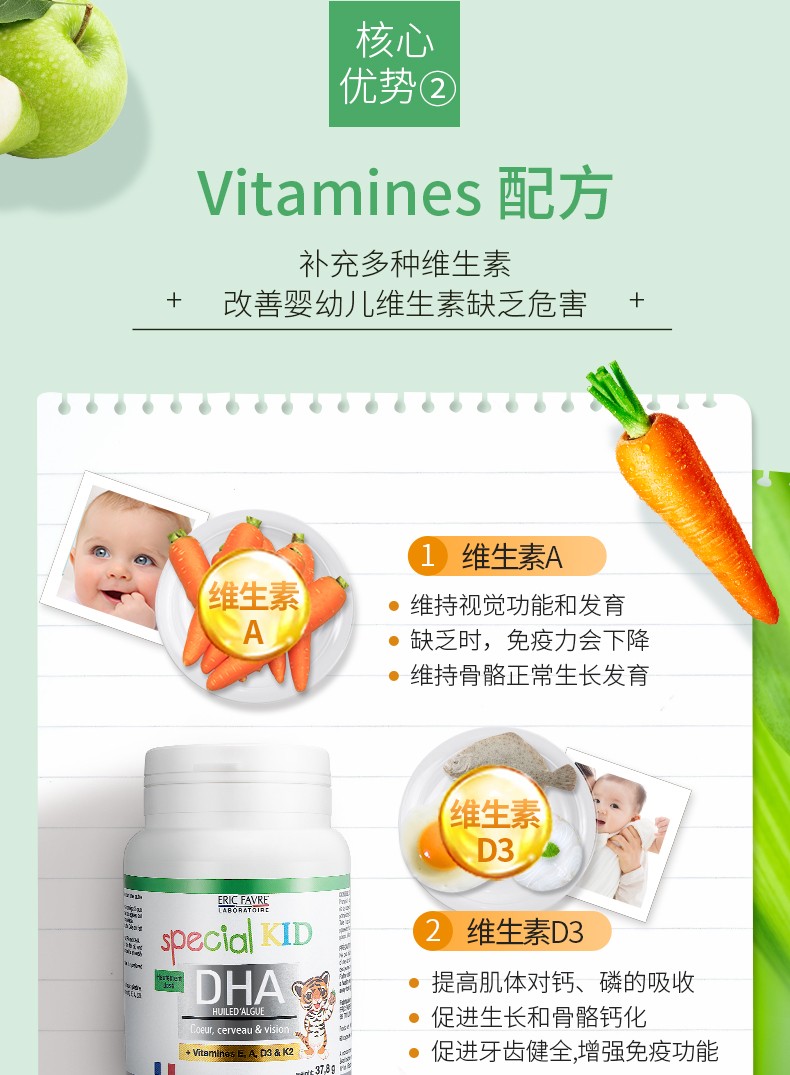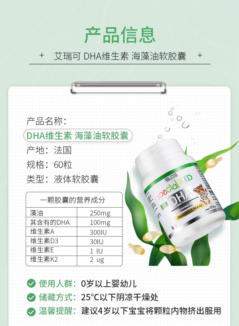 【保税区包邮直发】法国 Eric Favre艾瑞可 儿童DHA藻油 60粒