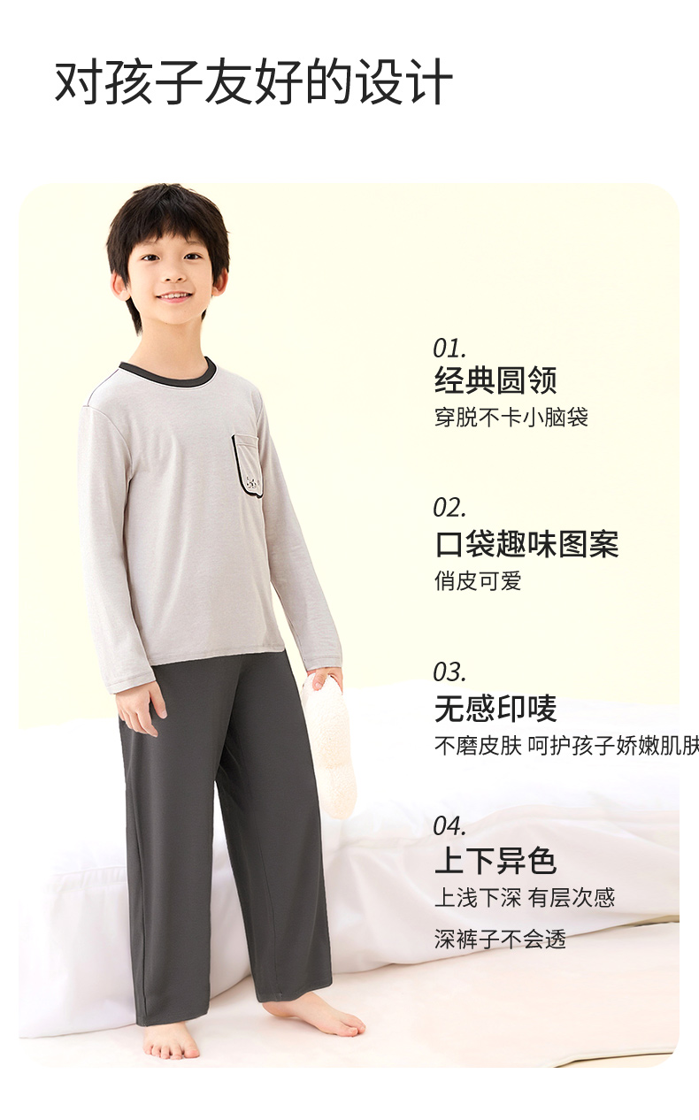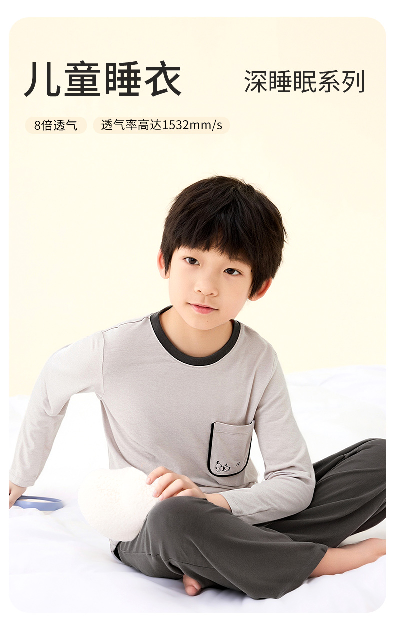 深睡眠蚕丝睡衣】真丝针织睡衣100%桑蚕丝儿童长袖家居服金三塔 BBY039