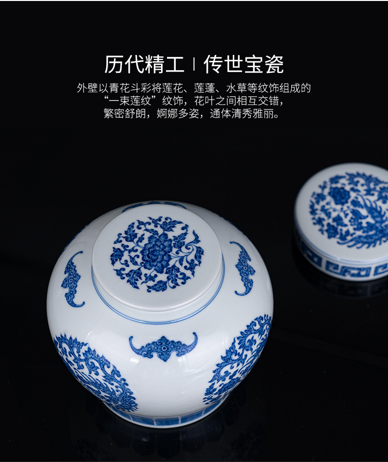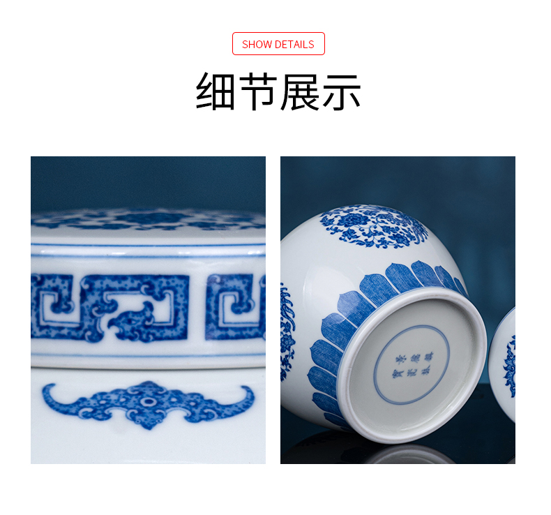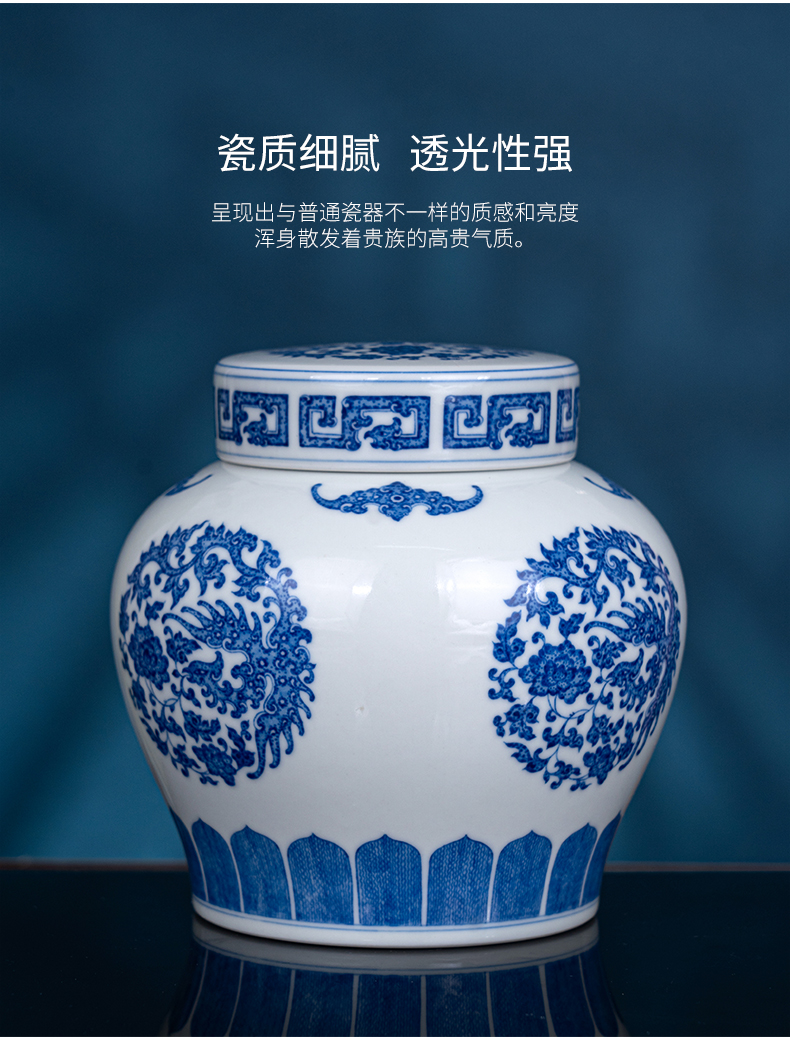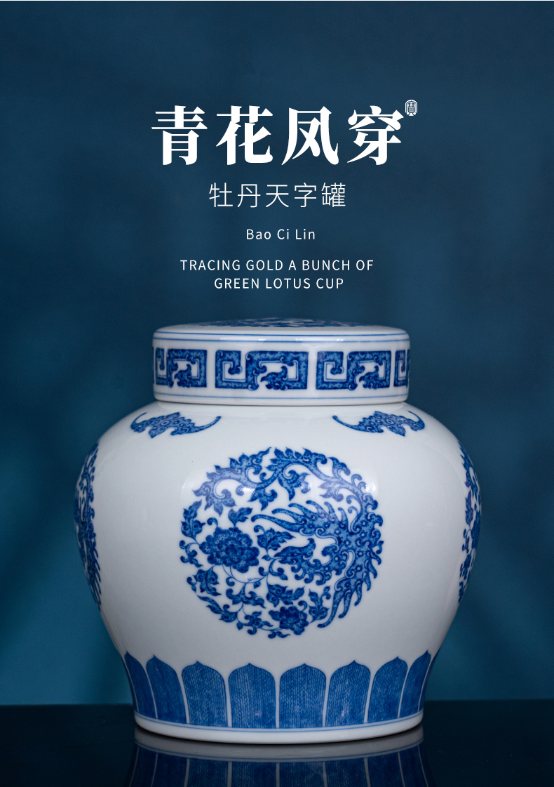 青花凤穿牡丹天字罐