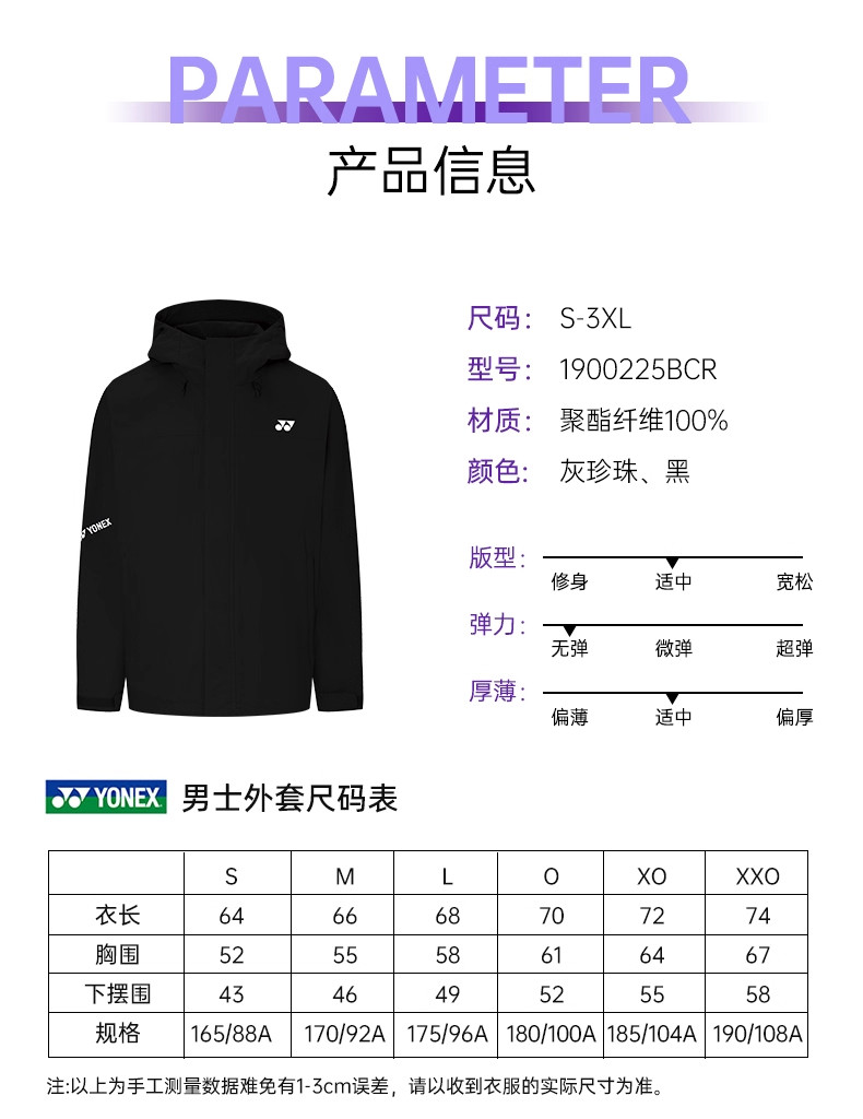 尤尼克斯 男款 运动上衣外套 1900225BCR