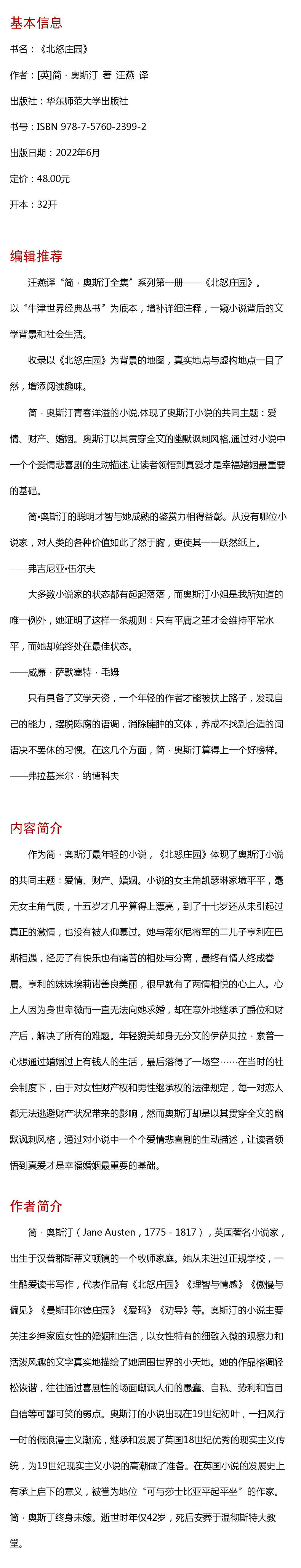 北怒庄园 简·奥斯汀全集 哥特爱情小说 诺桑觉寺 独角兽文库 典雅精装 外国文学