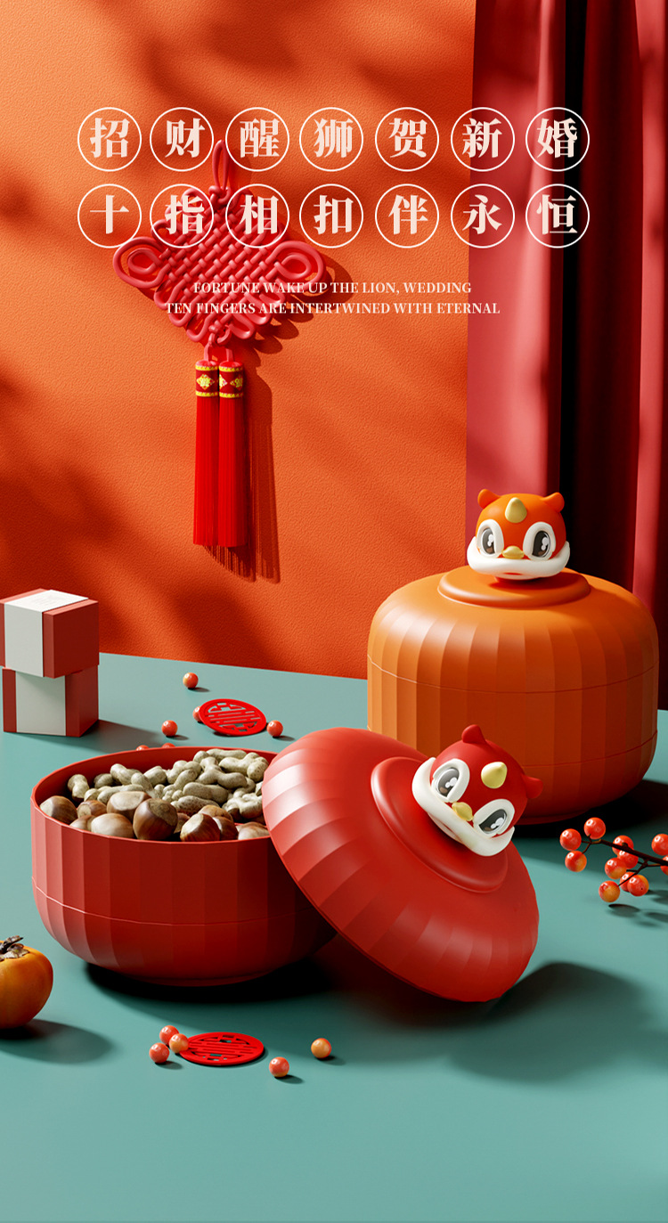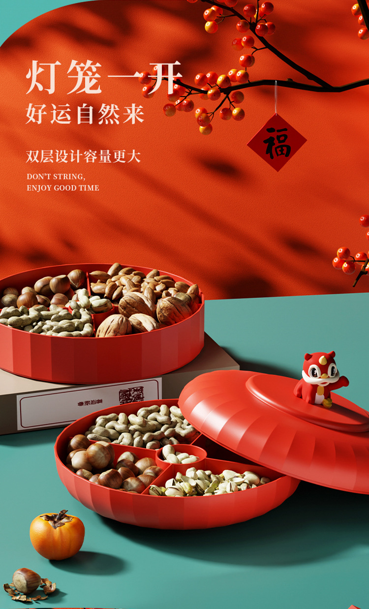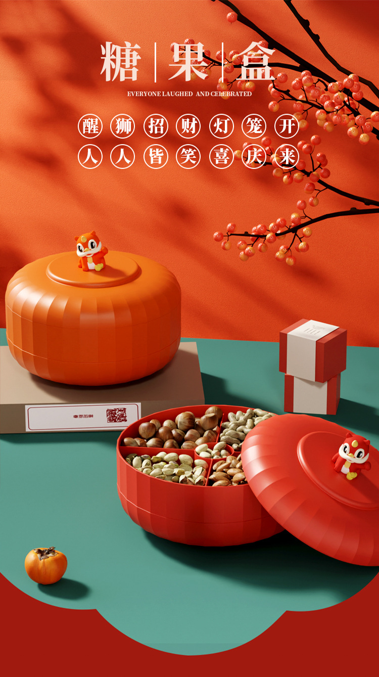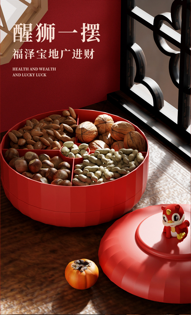 【伴手礼❗️醒狮灯笼糖果盒】新年爆款果盘喜事糖果盘国风醒狮分格果盘高端客厅摆件坚果盘伴手礼新年礼盒年货礼盒