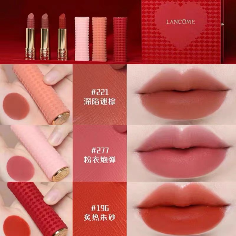 LANCÔME兰蔻【寻爱】口红三支装礼盒3.4g*3支 #丝绒雾面196炙热朱砂 #丝绒雾面221深陷迷棕 #丝绒雾面277粉衣炮弹-礼盒礼袋