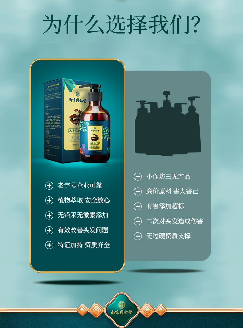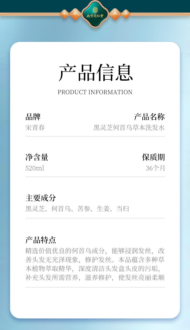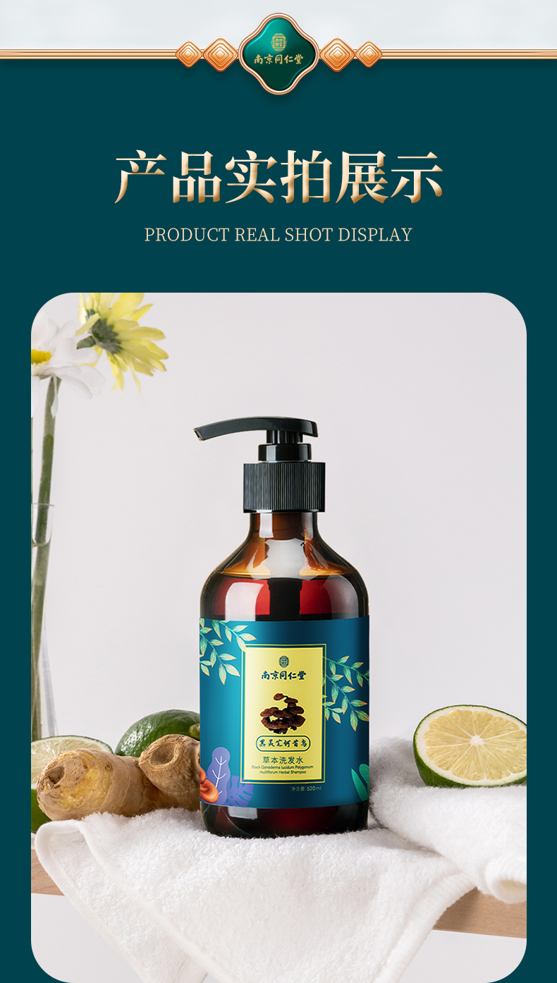 【南京同仁堂乐家老铺 黑灵芝何首乌草本洗发水520ml】深层润养 温润净护 柔顺亮泽