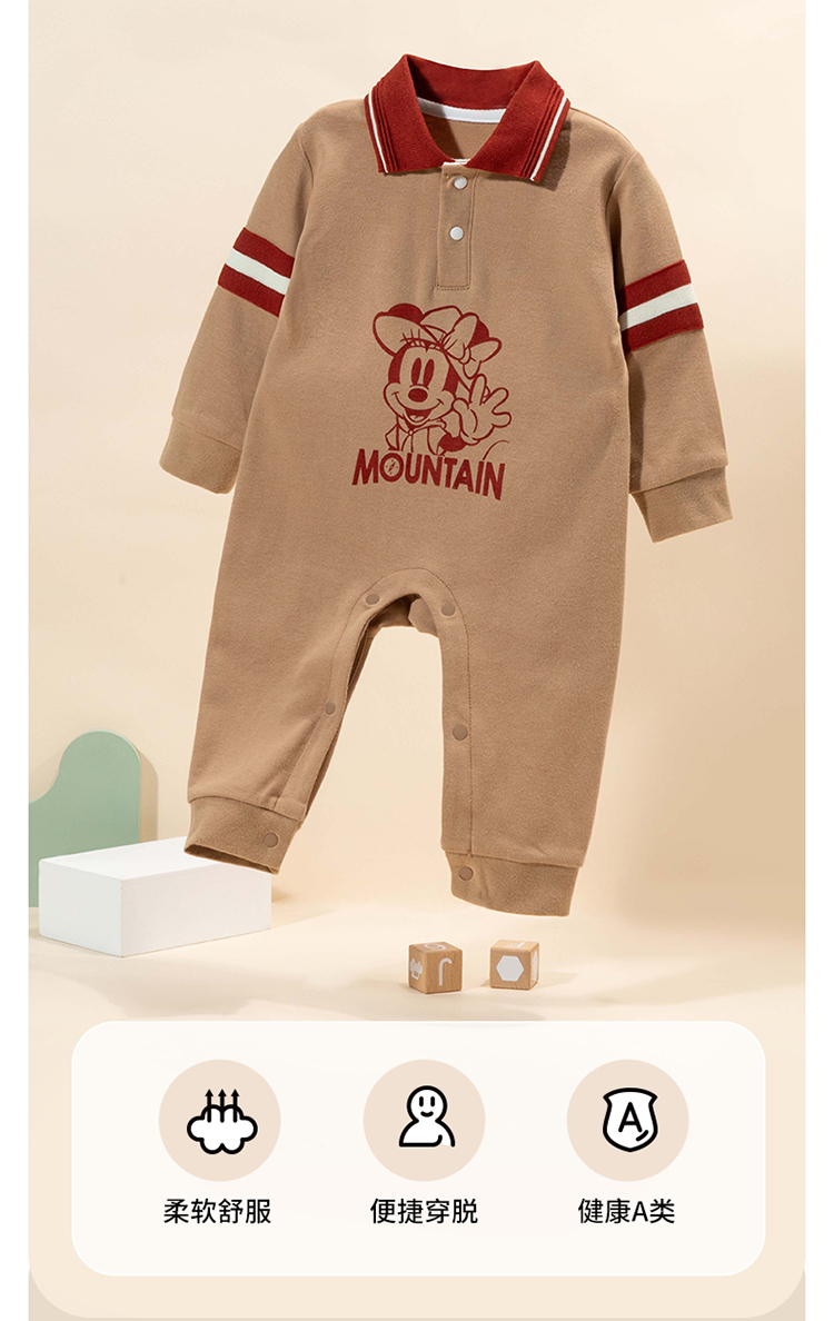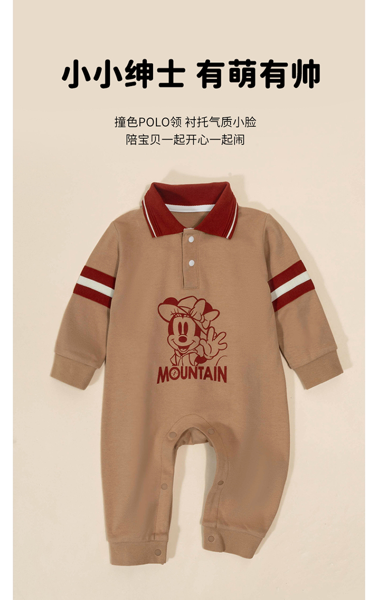 迪士尼童装男童纯棉连体衣新生婴幼儿童米奇宝宝POLO翻领连体衣ZD3DL010