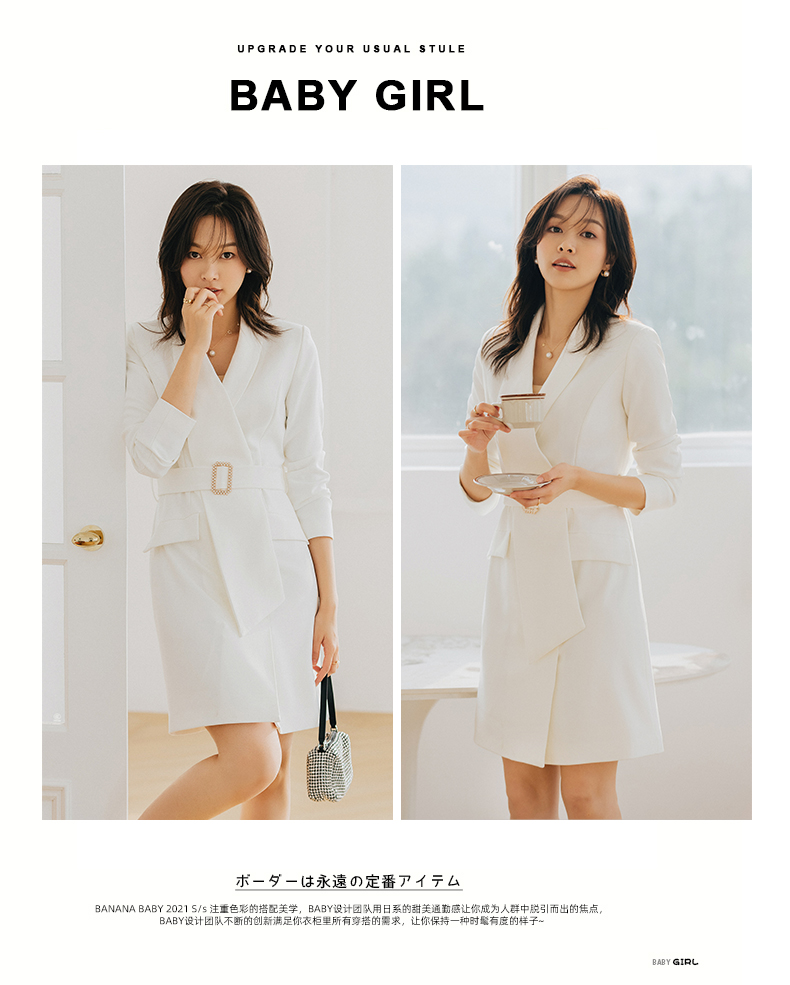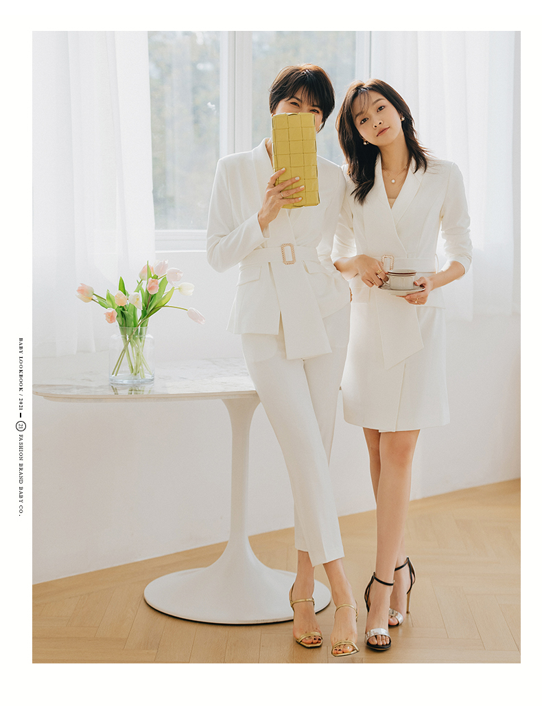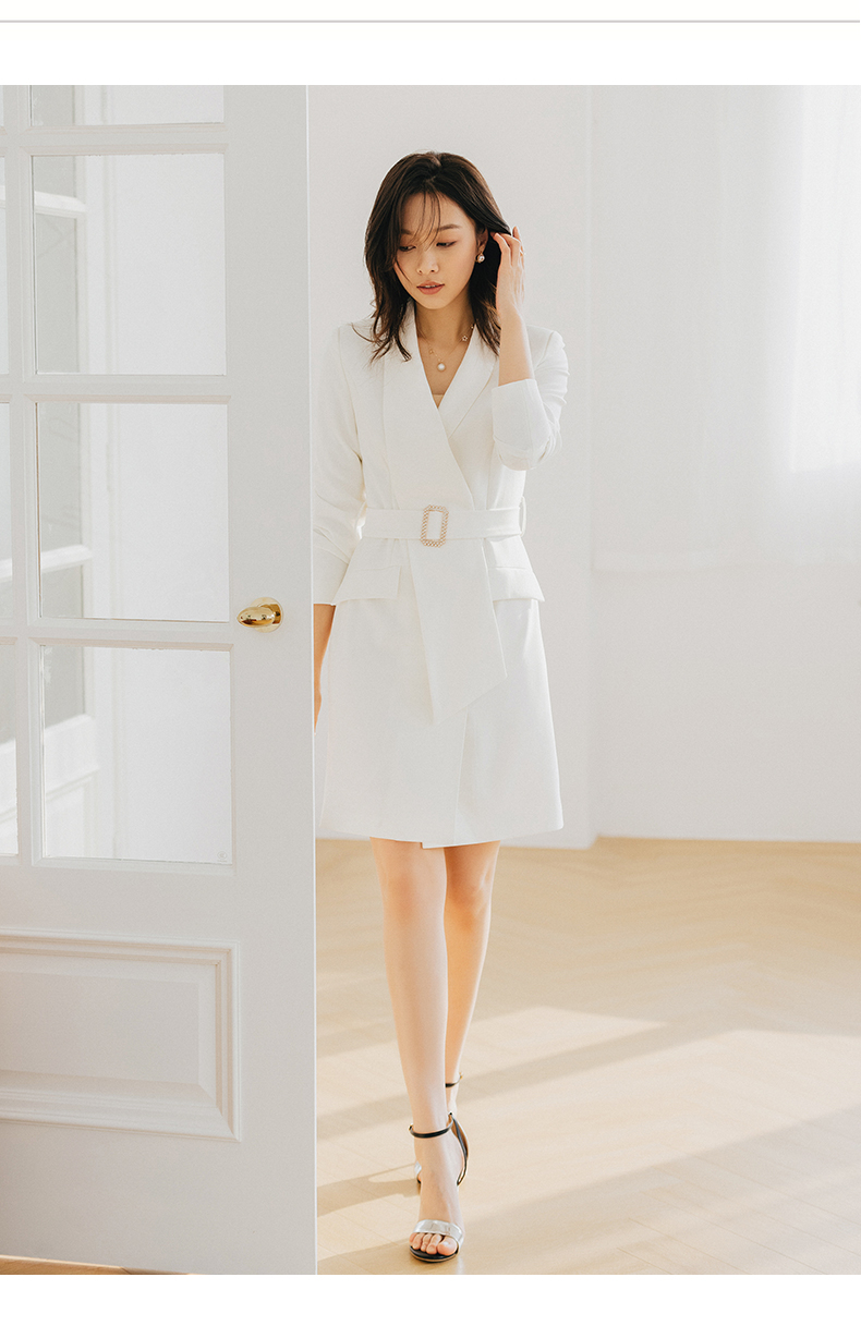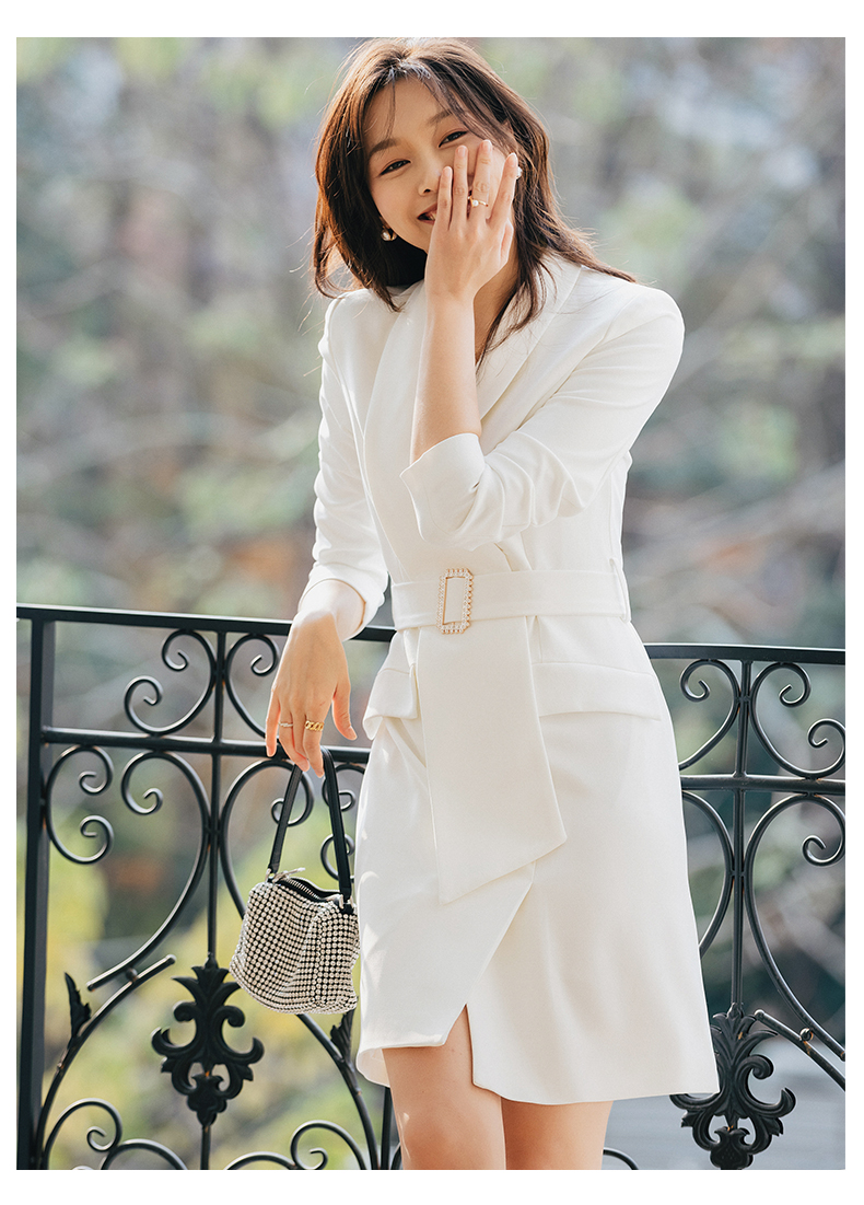 白色连衣裙女秋冬新款法式时尚职业工装不规则轻熟风西装裙