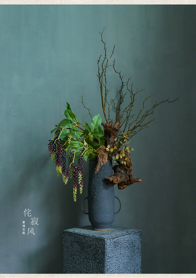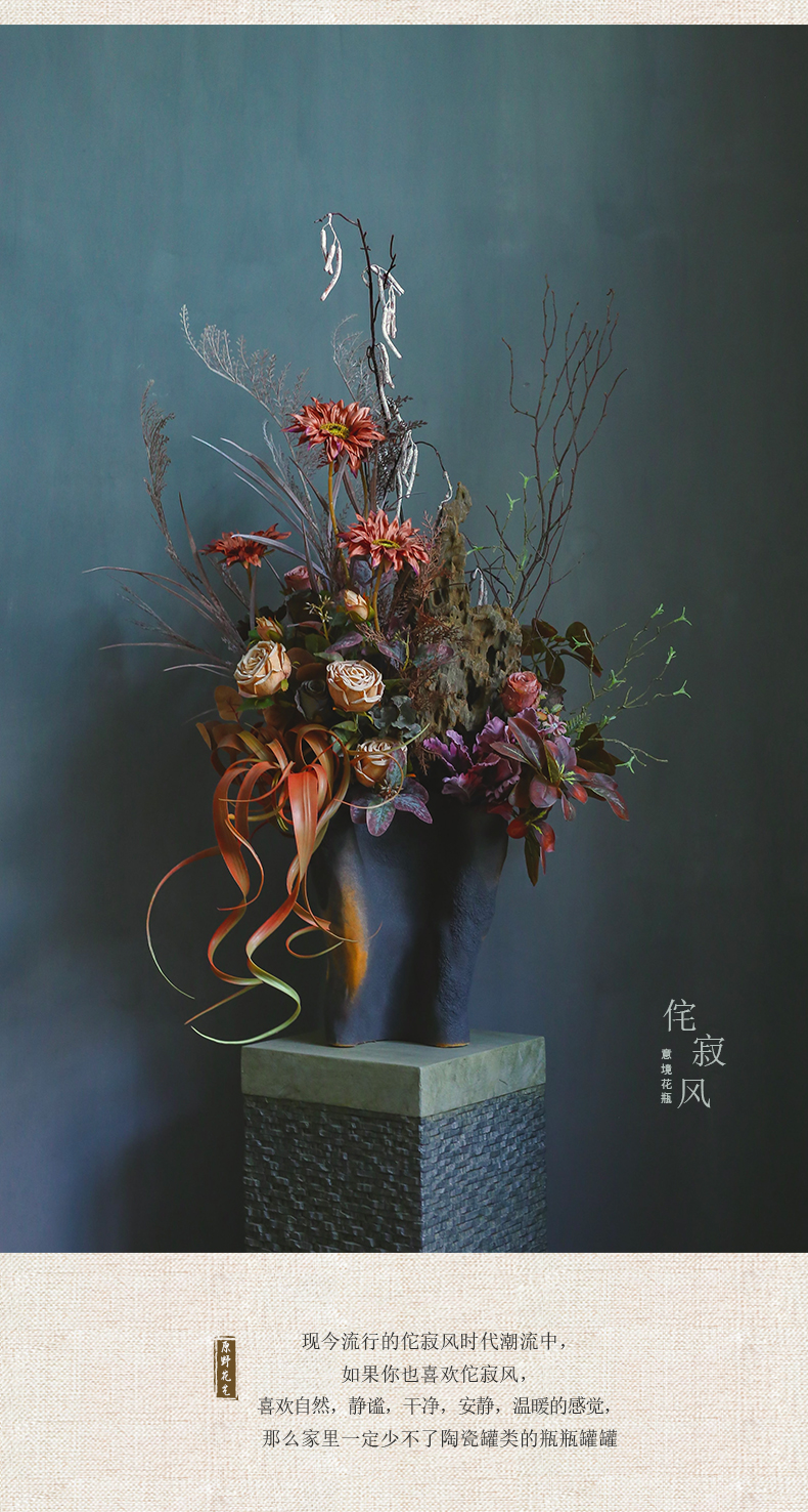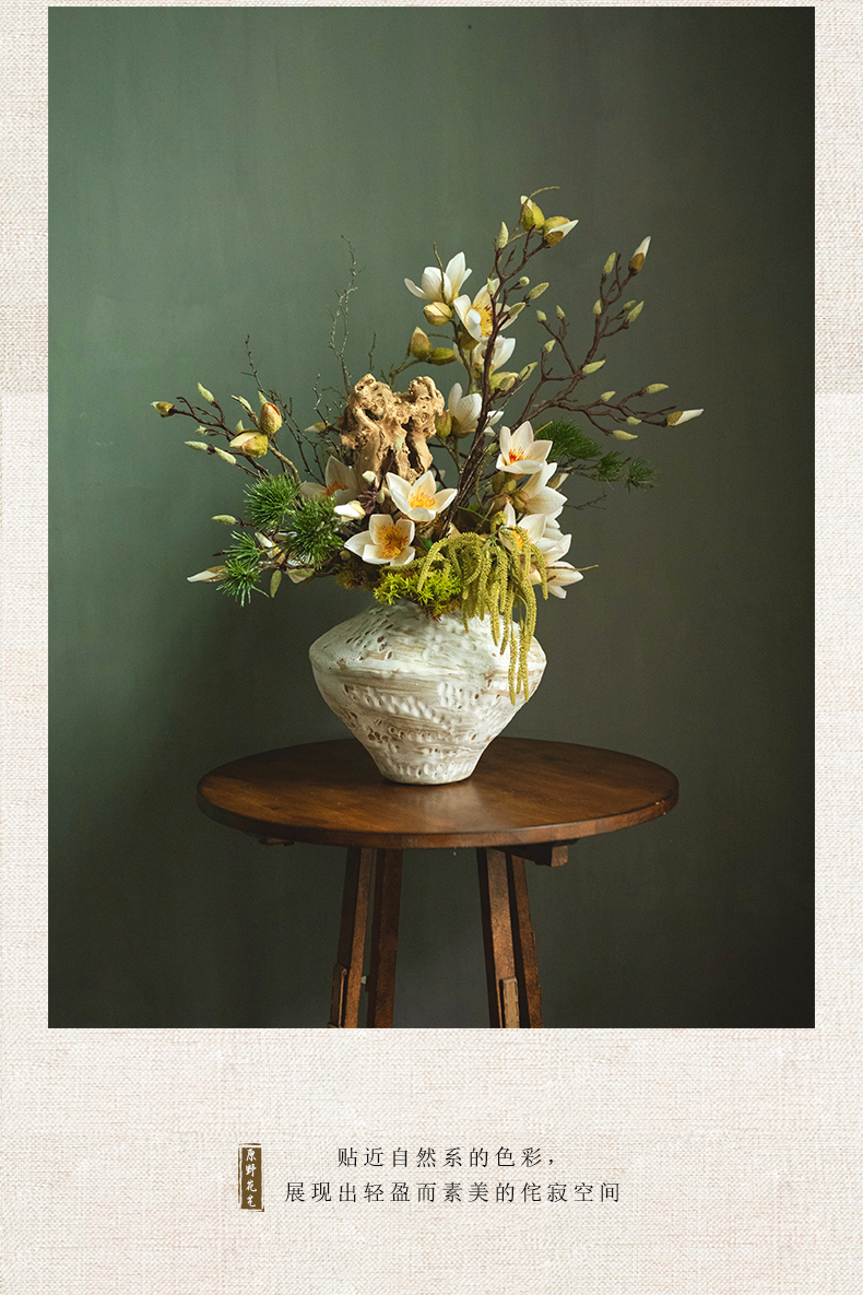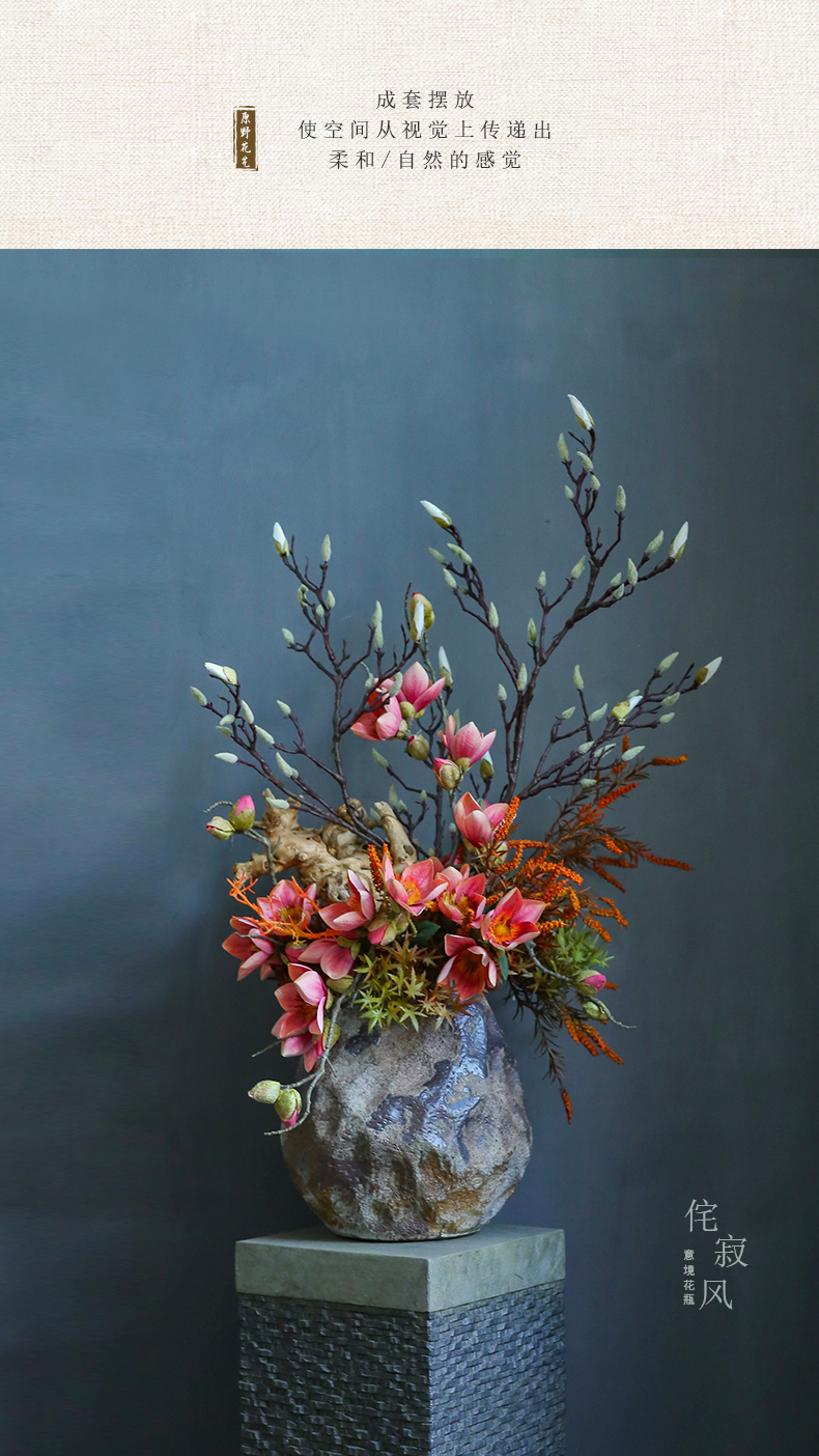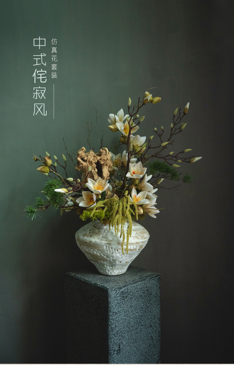 侘寂风日式中式仿真花摆件陶瓷复古餐桌酒店客厅创意插花装饰摆设