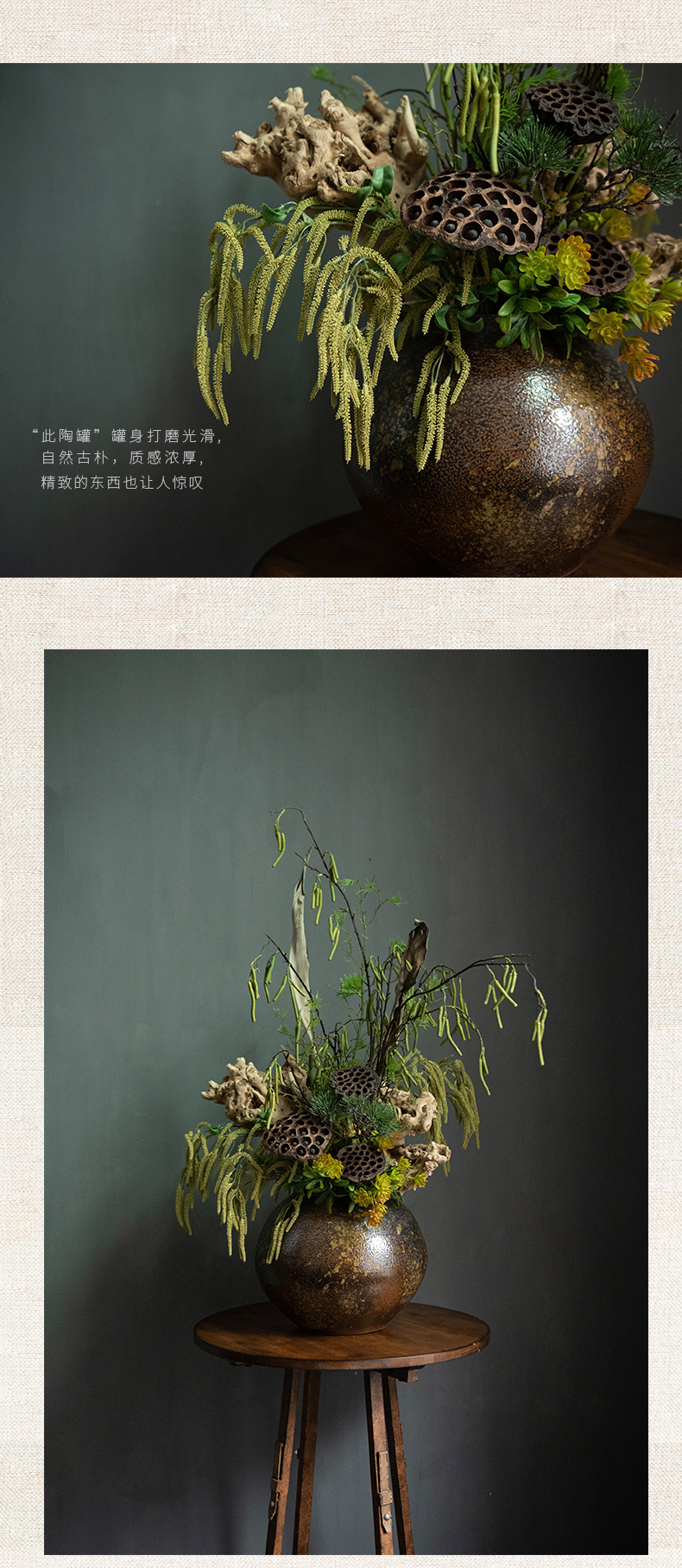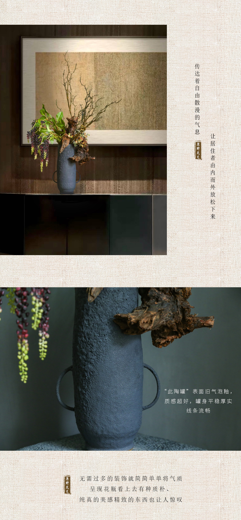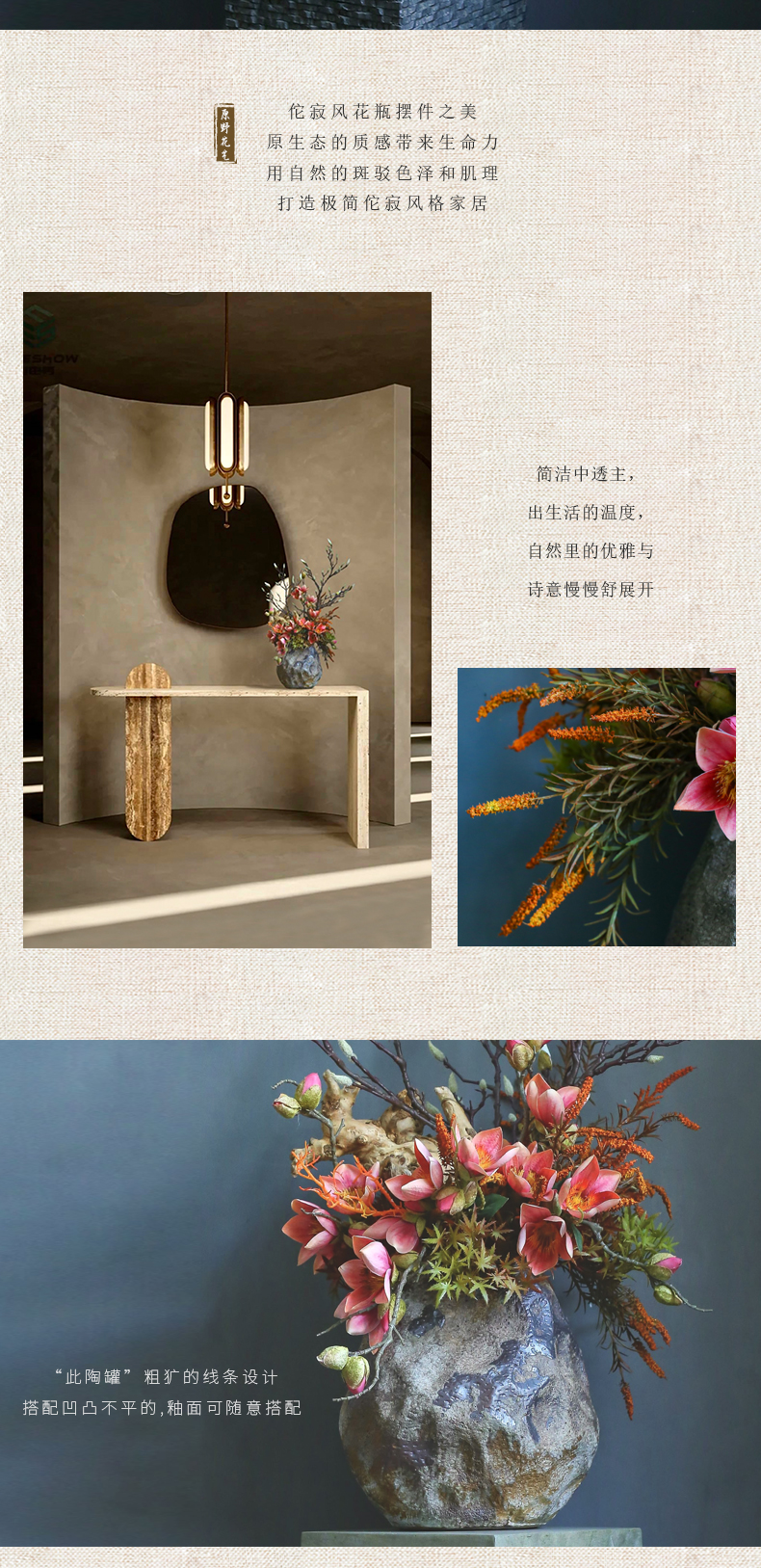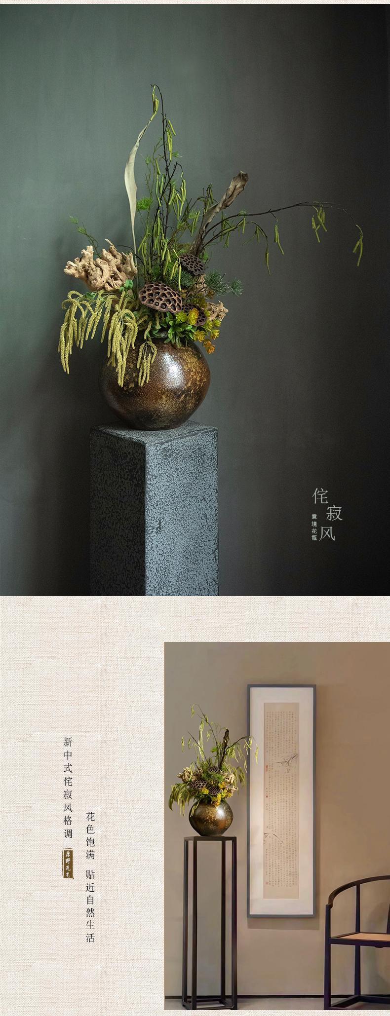 侘寂风日式中式仿真花摆件陶瓷复古餐桌酒店客厅创意插花装饰摆设