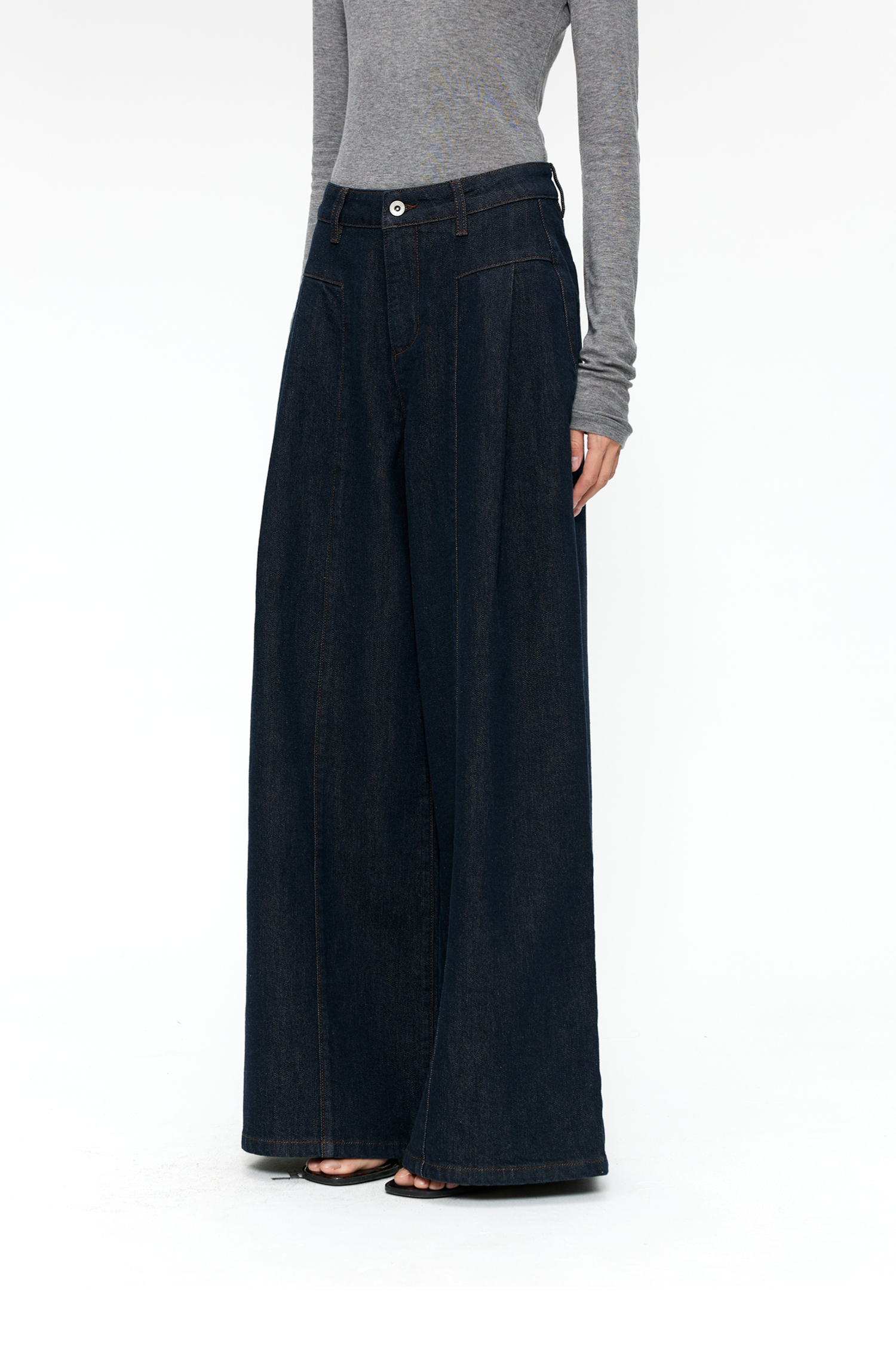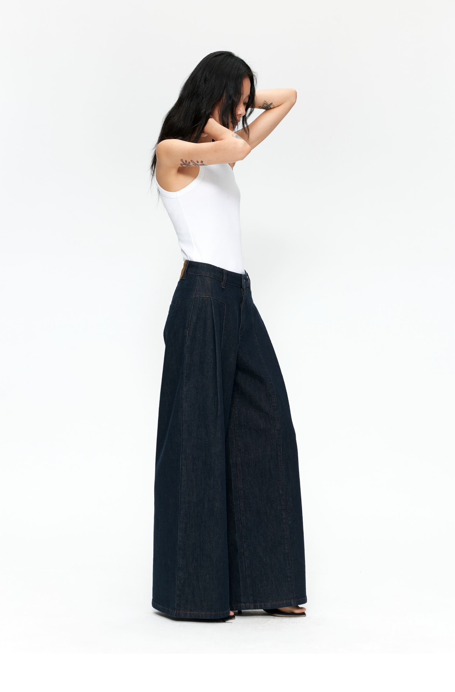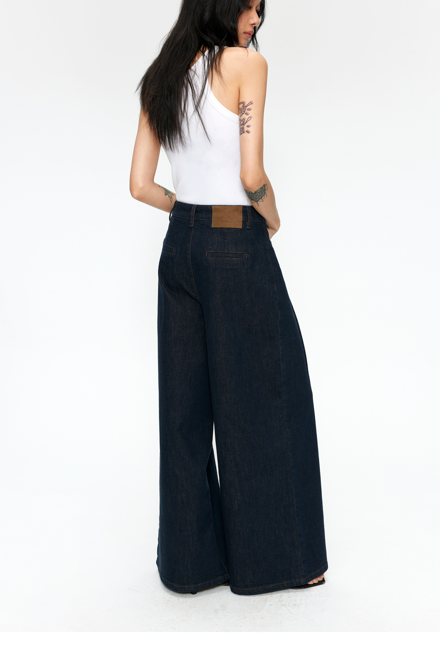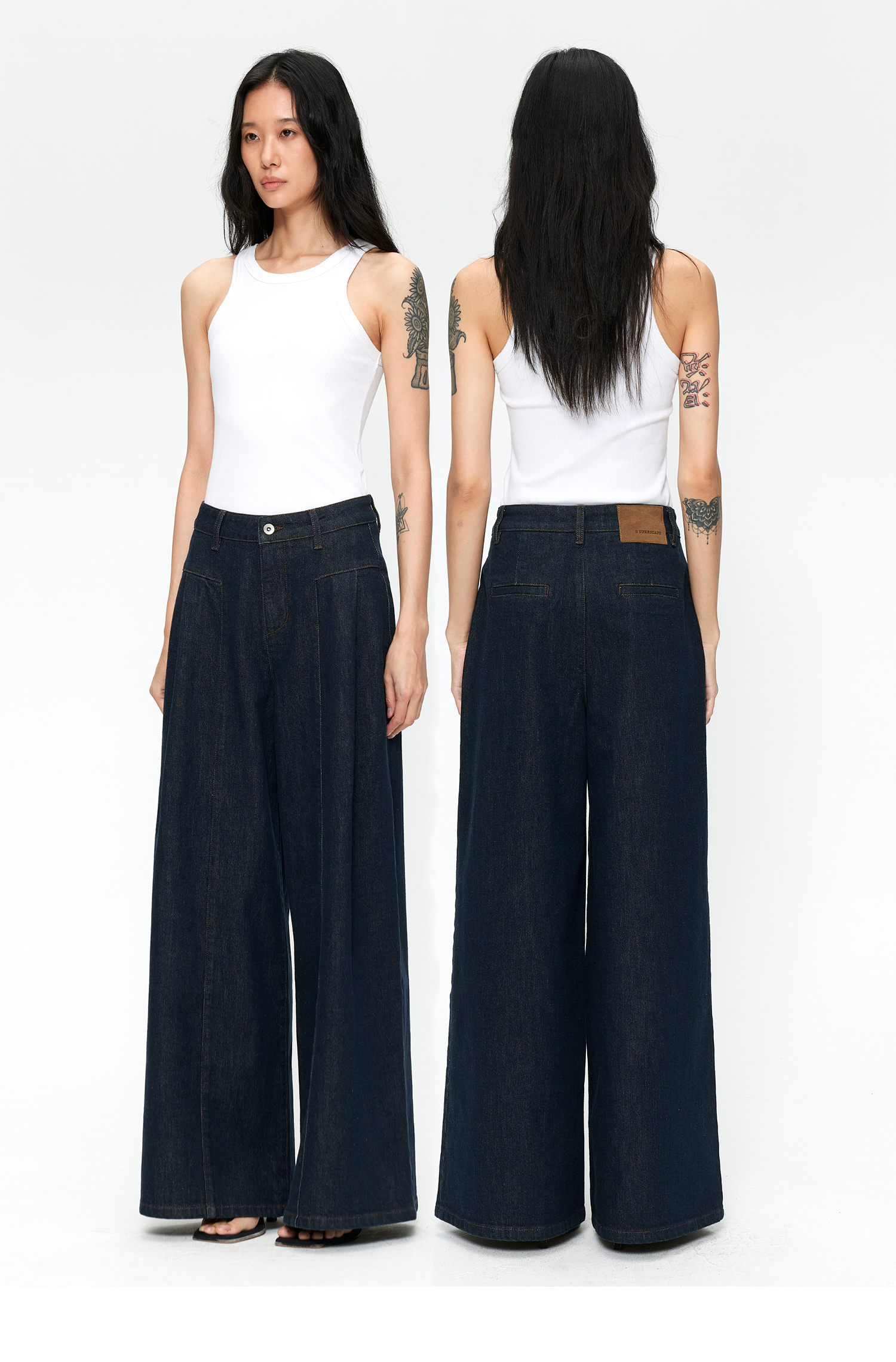 【8/25新品】素舶 S4 PowerBlue棉氨纶牛仔不掉色牛皮皮牌宽松褶件阔腿牛仔裤