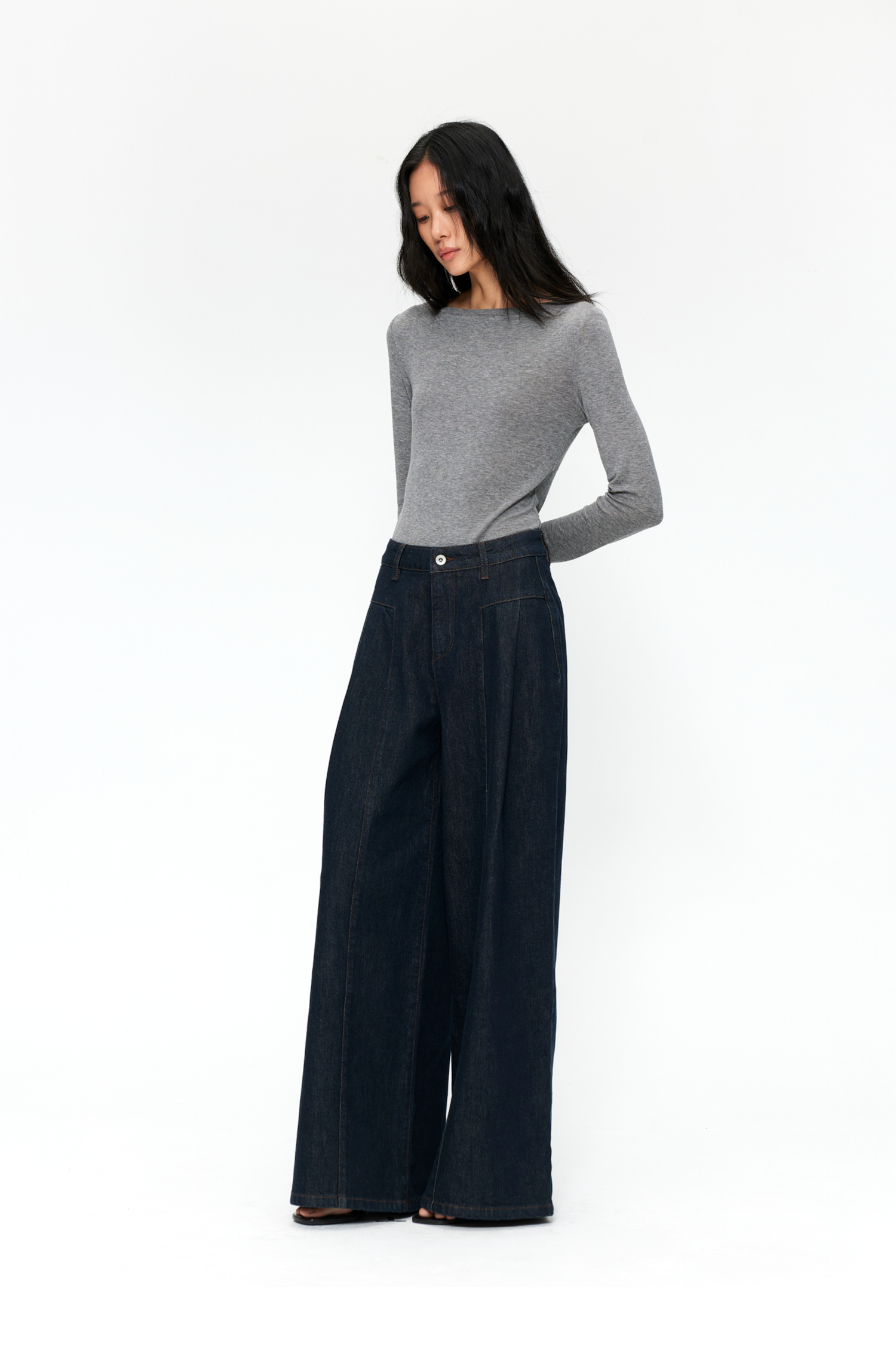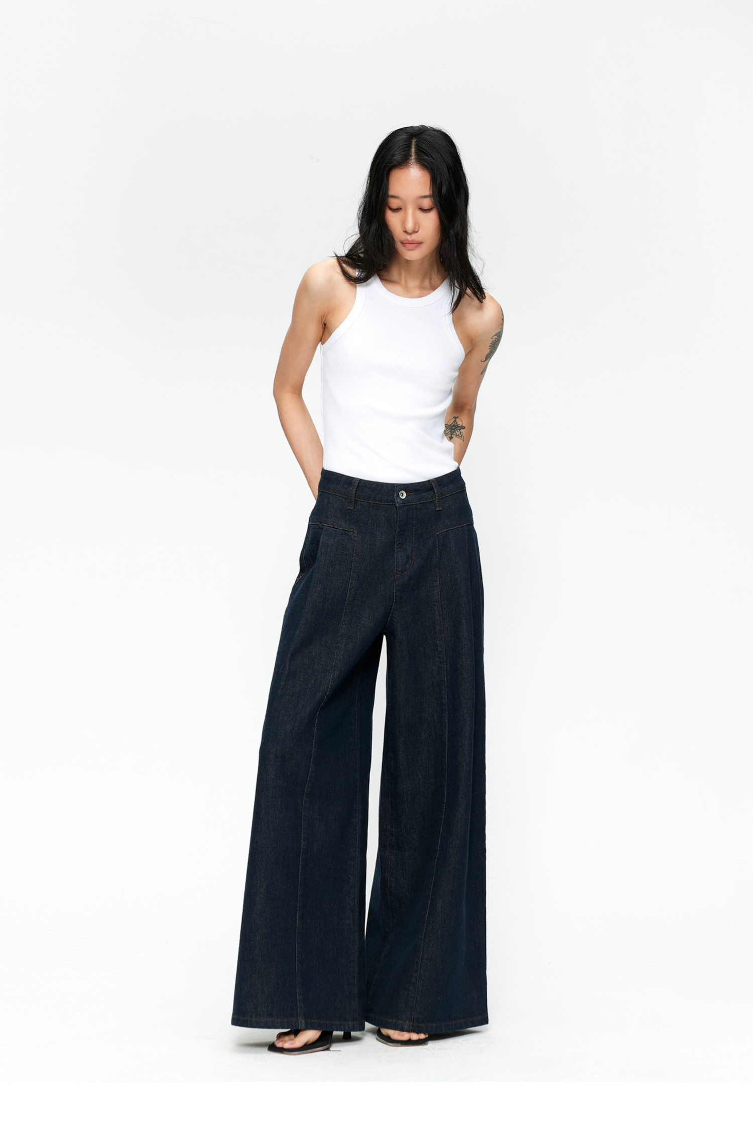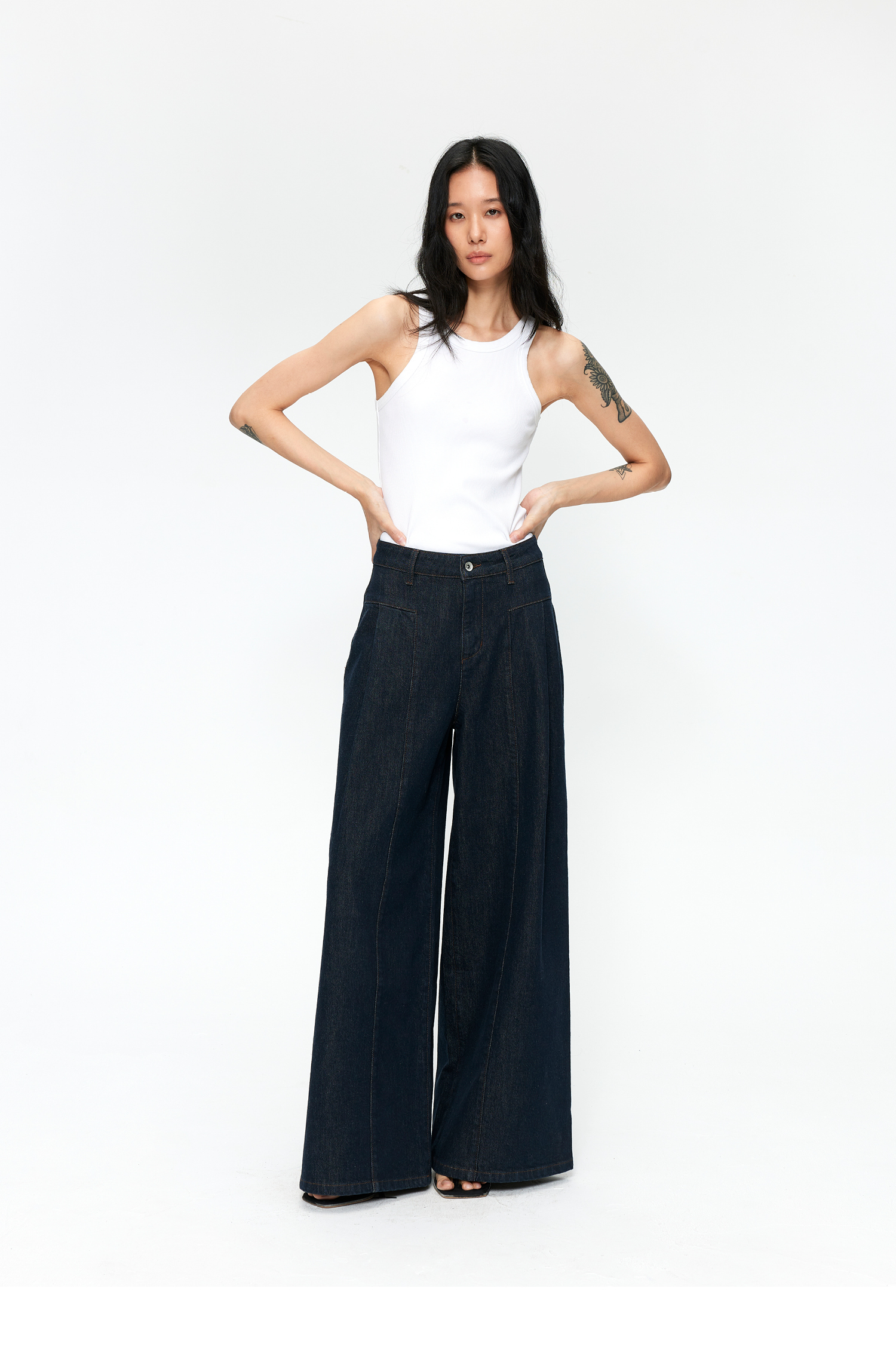 【8/25新品】素舶 S4 PowerBlue棉氨纶牛仔不掉色牛皮皮牌宽松褶件阔腿牛仔裤