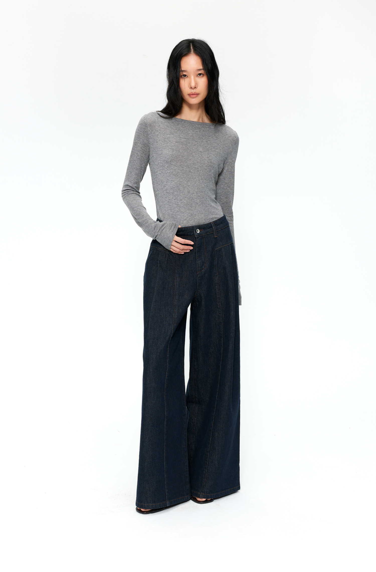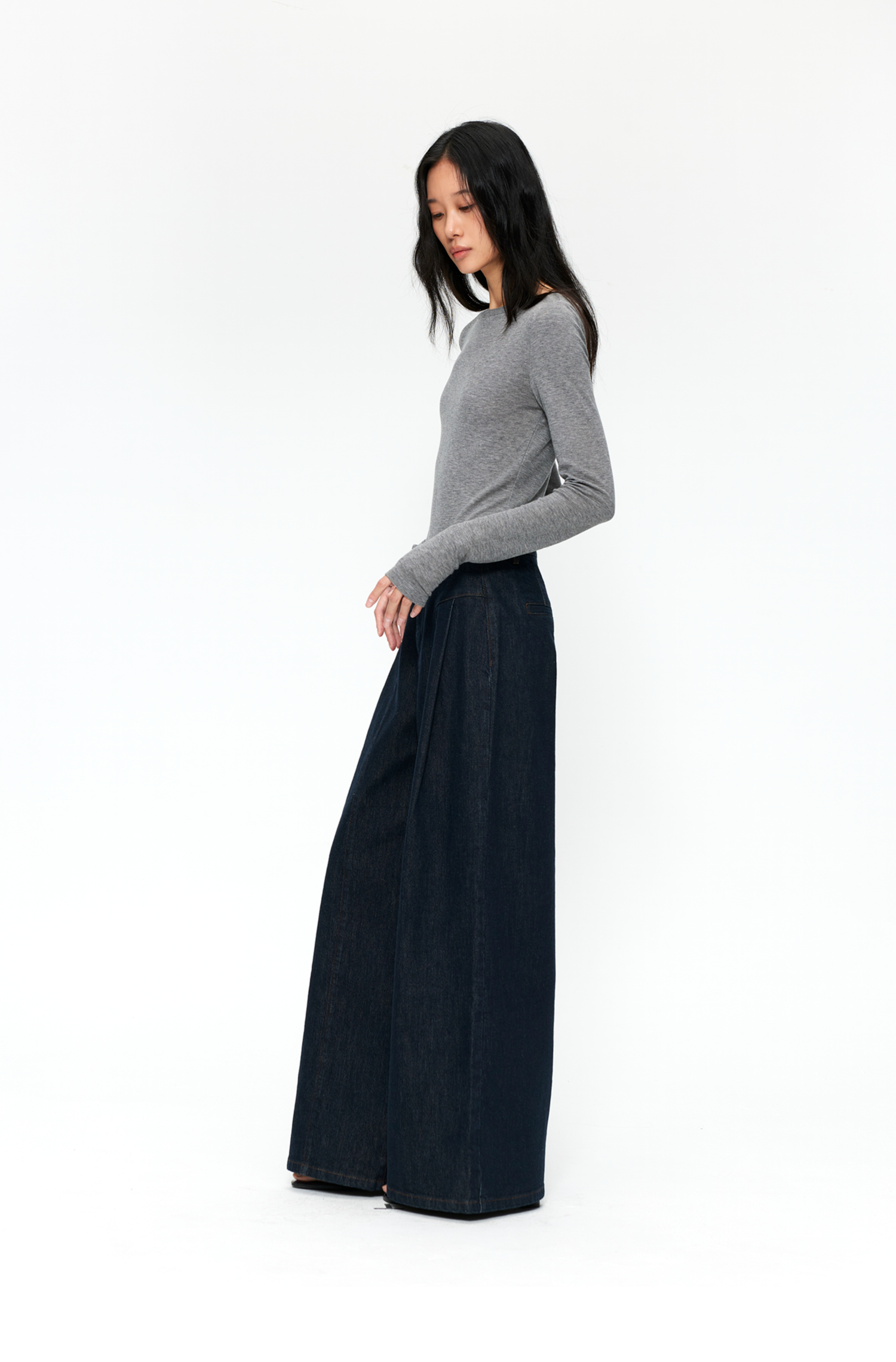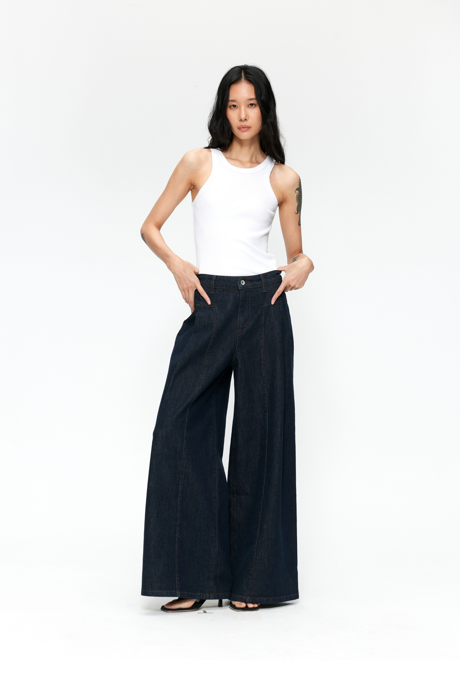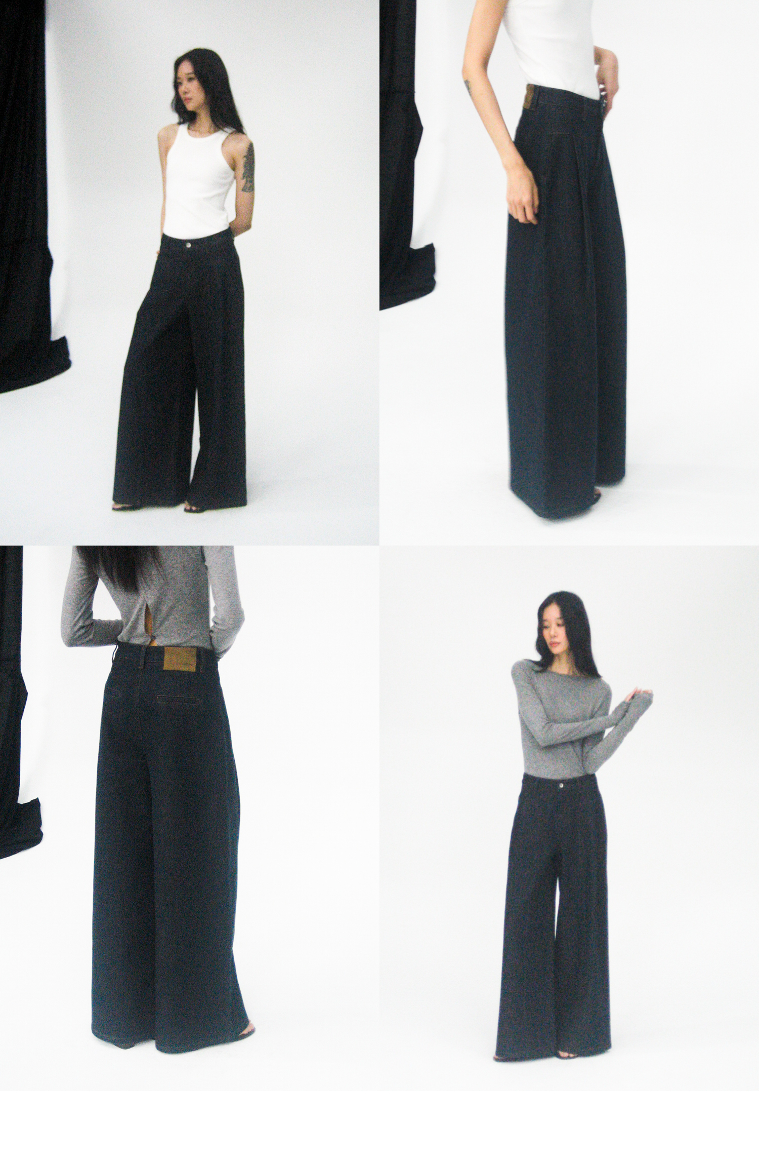 【8/25新品】素舶 S4 PowerBlue棉氨纶牛仔不掉色牛皮皮牌宽松褶件阔腿牛仔裤