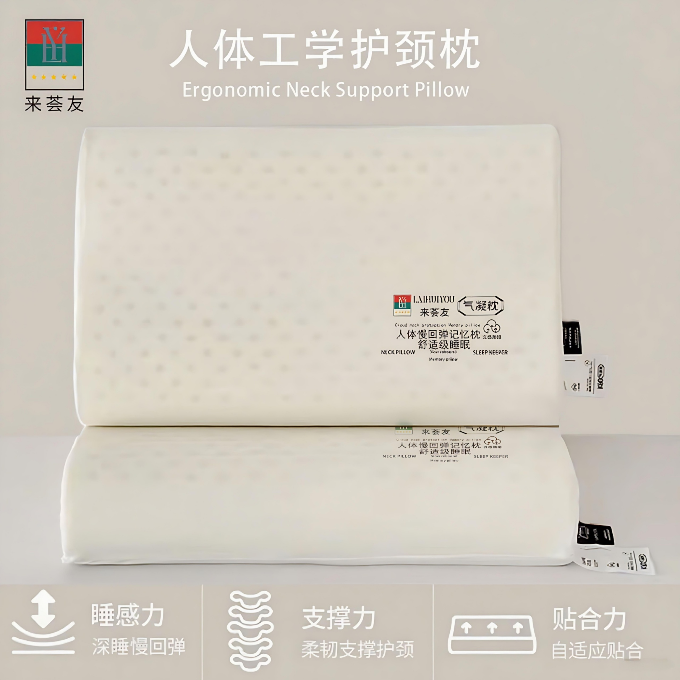 LAIHUIYOU来荟友人体工学慢回弹记忆枕 高透亲肤云感裸肌面料 加大加宽枕面 恒温零感记忆棉黄金慢回弹 温和支撑肩颈释放压力