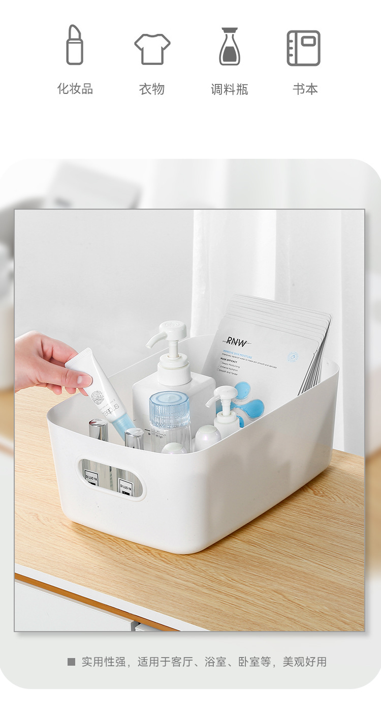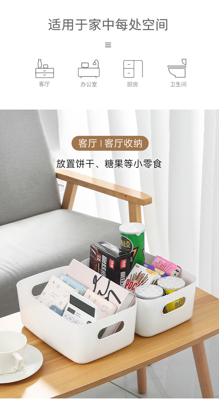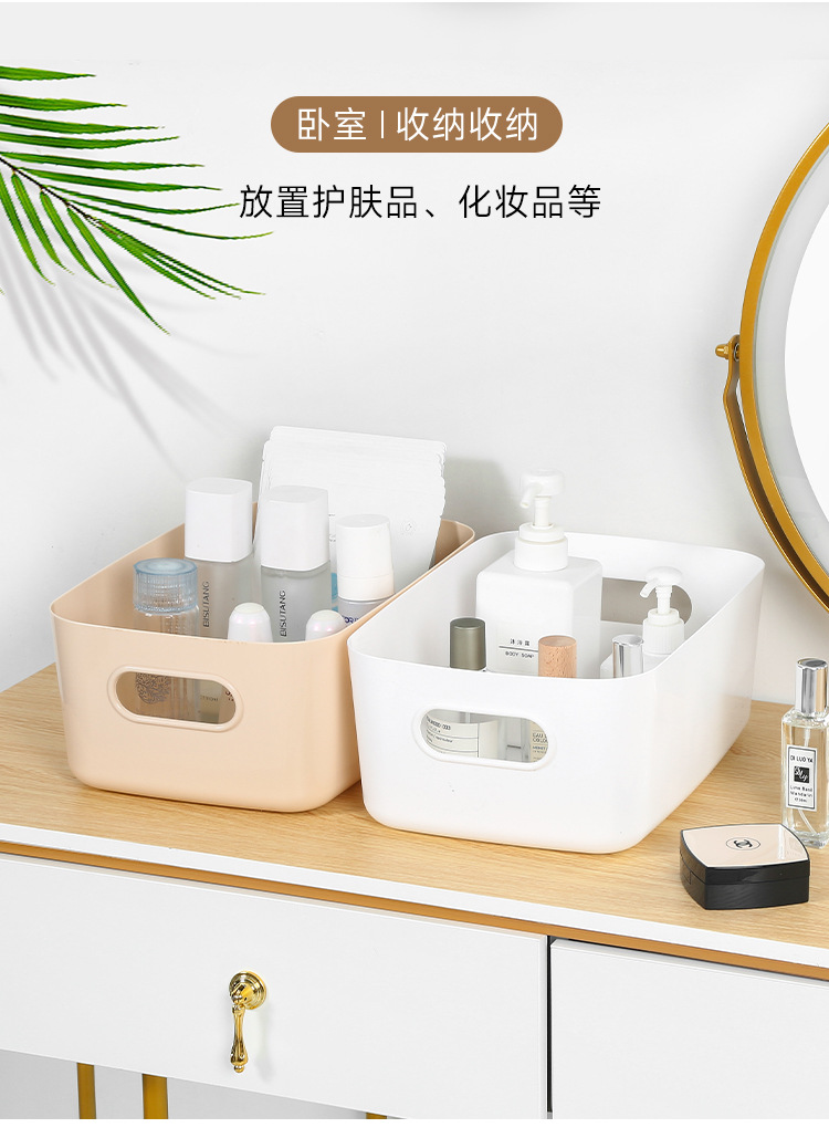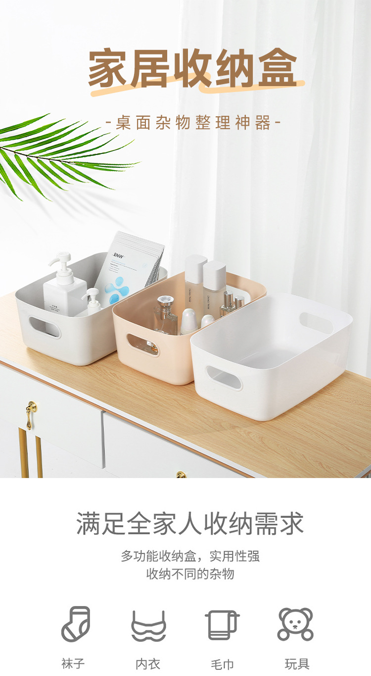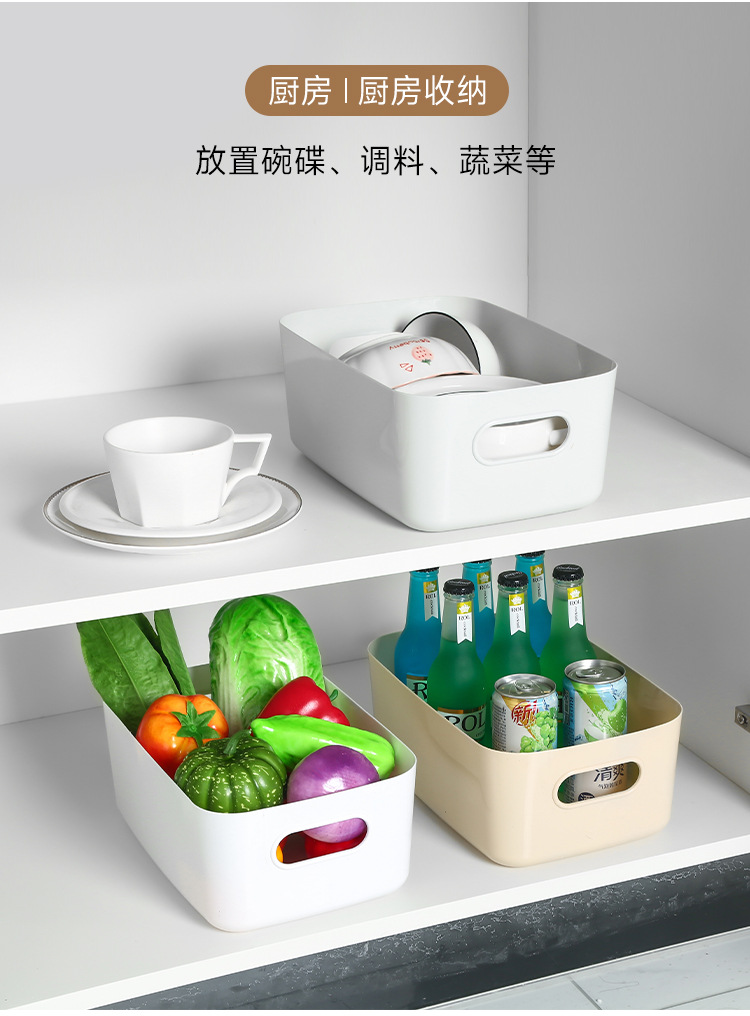 加厚桌面收纳盒 长方形化妆品收纳筐厨房储物盒抽屉杂物塑料整理篮1个