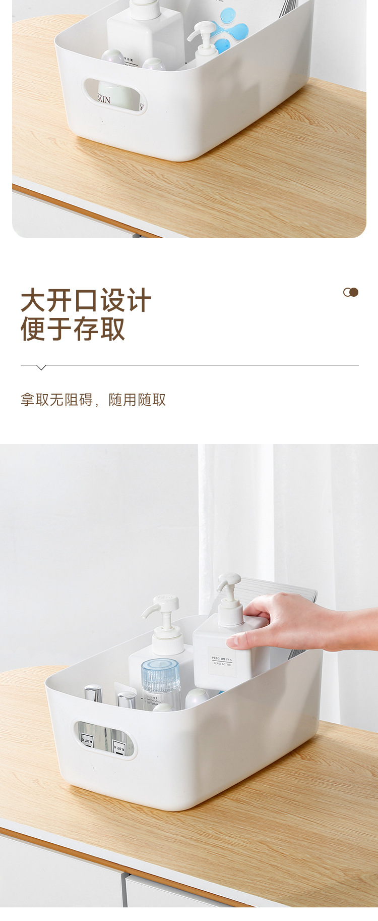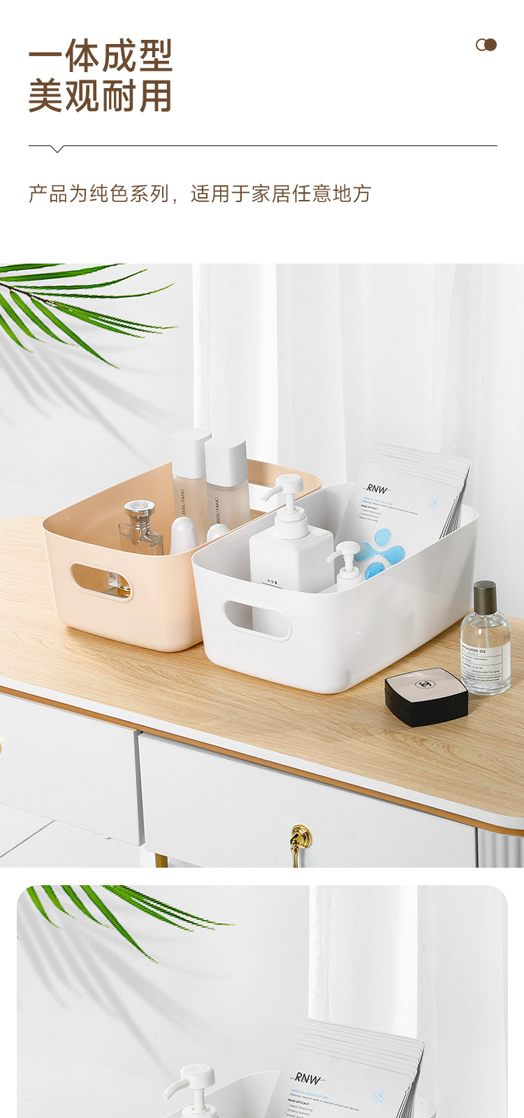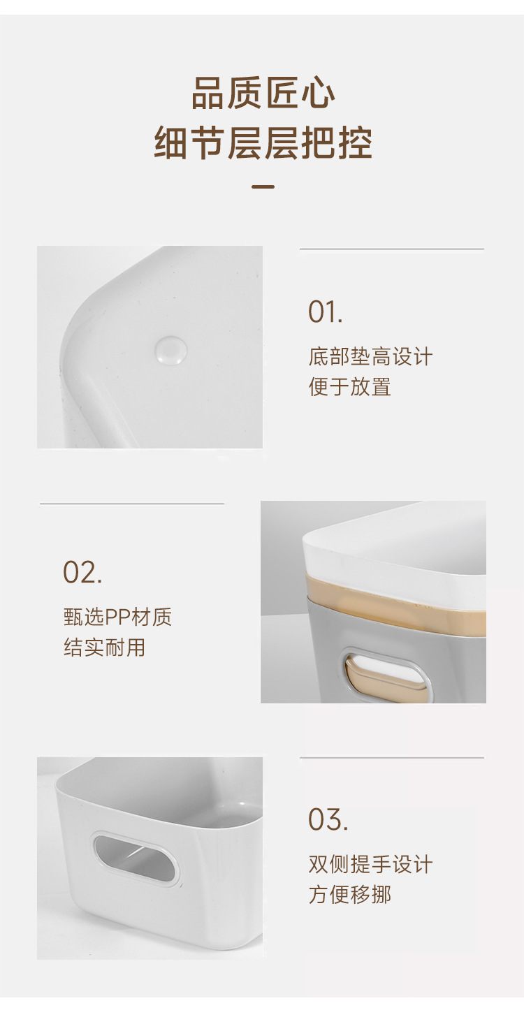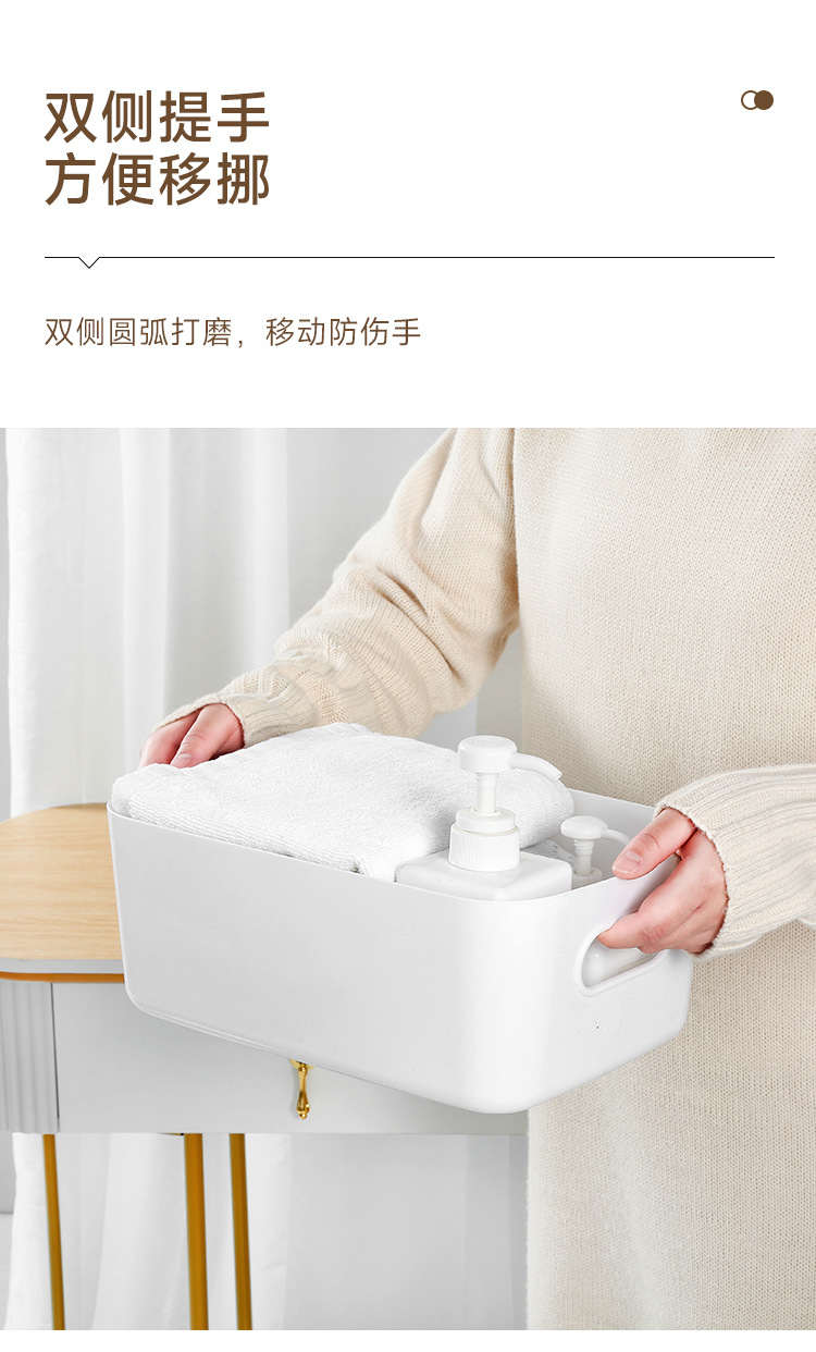 加厚桌面收纳盒 长方形化妆品收纳筐厨房储物盒抽屉杂物塑料整理篮1个