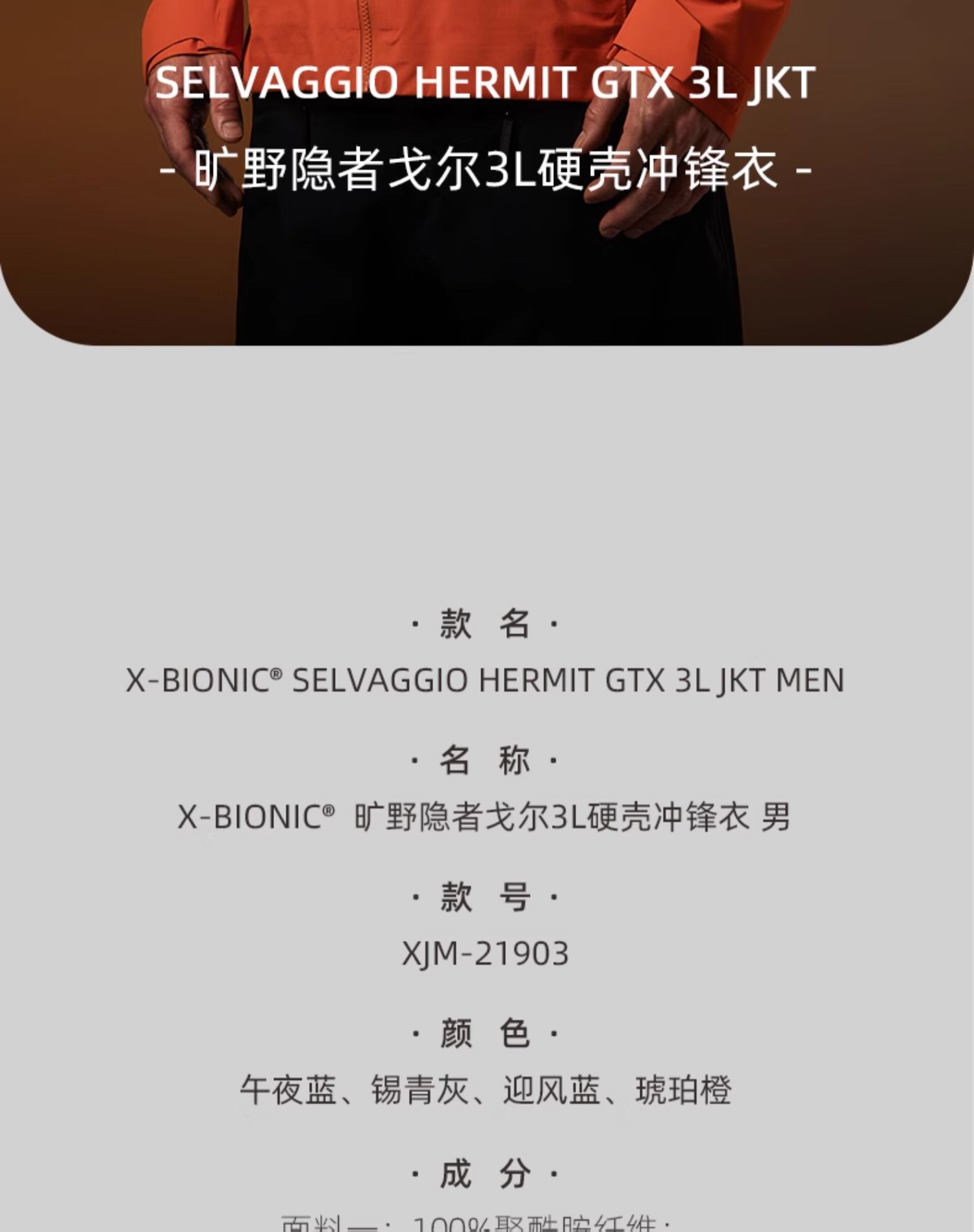 X-BIONIC 旷野隐者40D GORE-TEX Pro 3L硬壳冲锋衣 防雨透汽21903