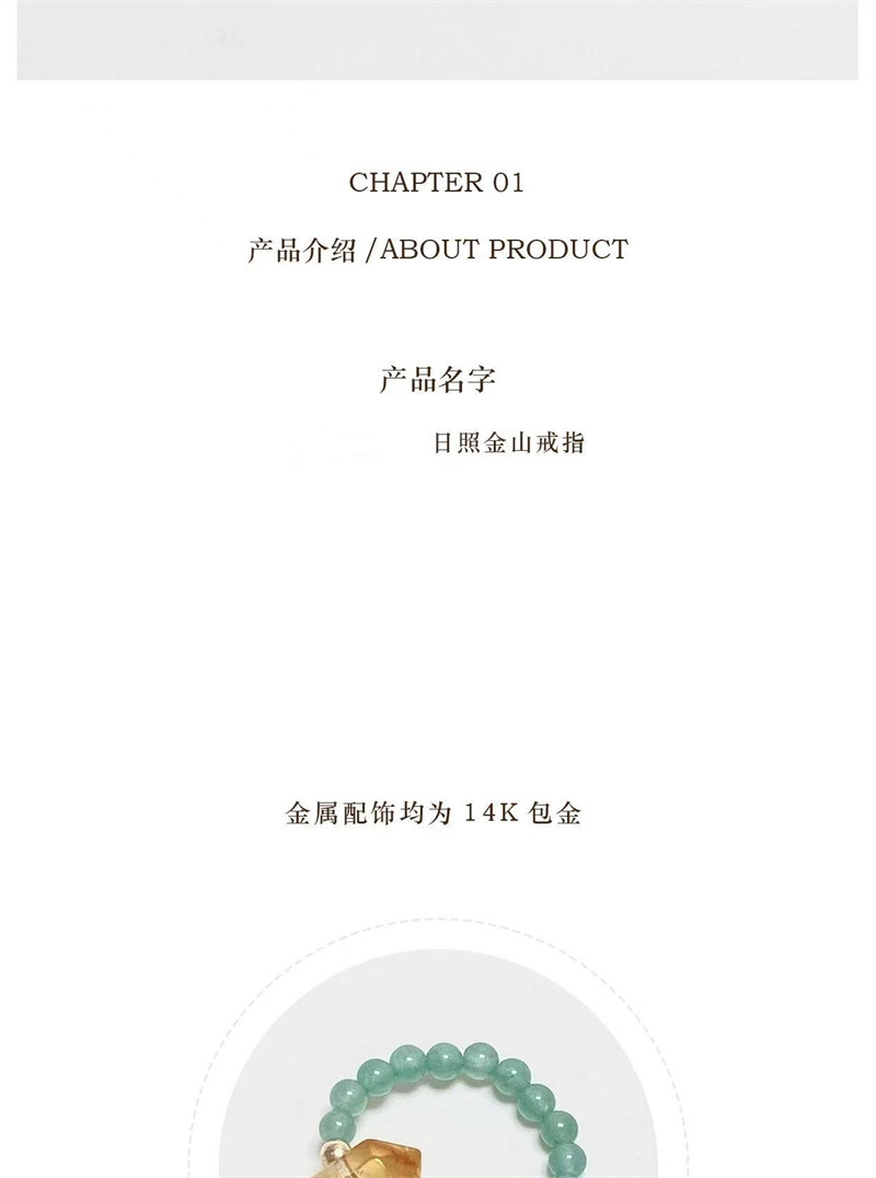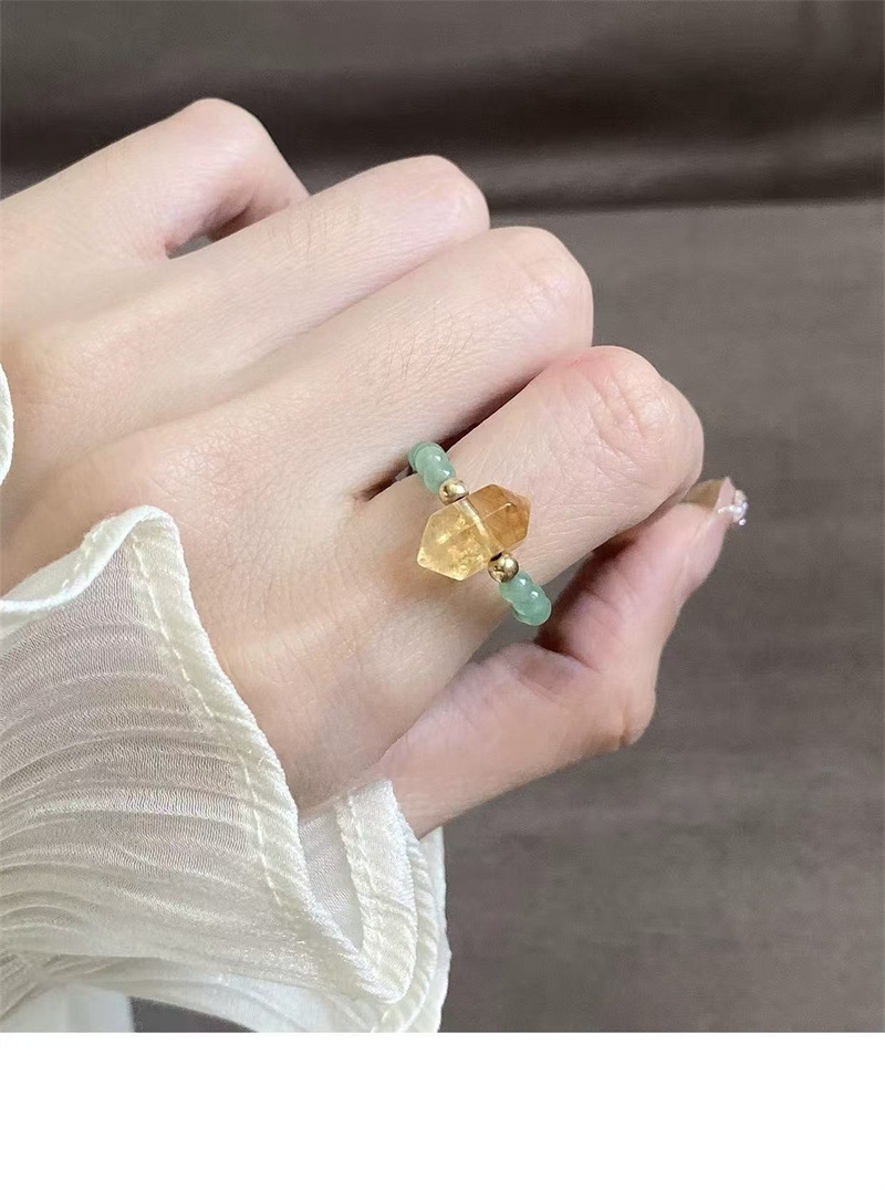 六鑫珠宝 日照金山黄水晶东陵玉戒指 简约精致小众轻奢