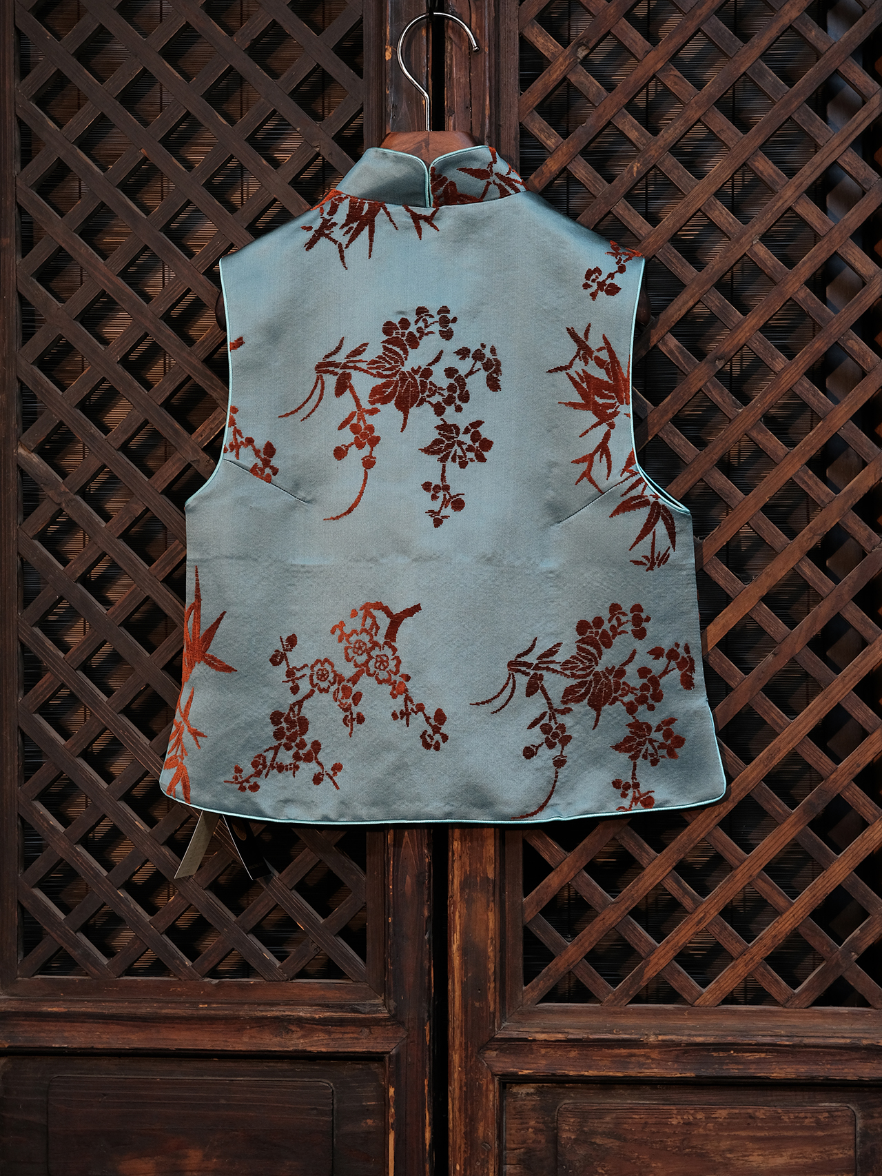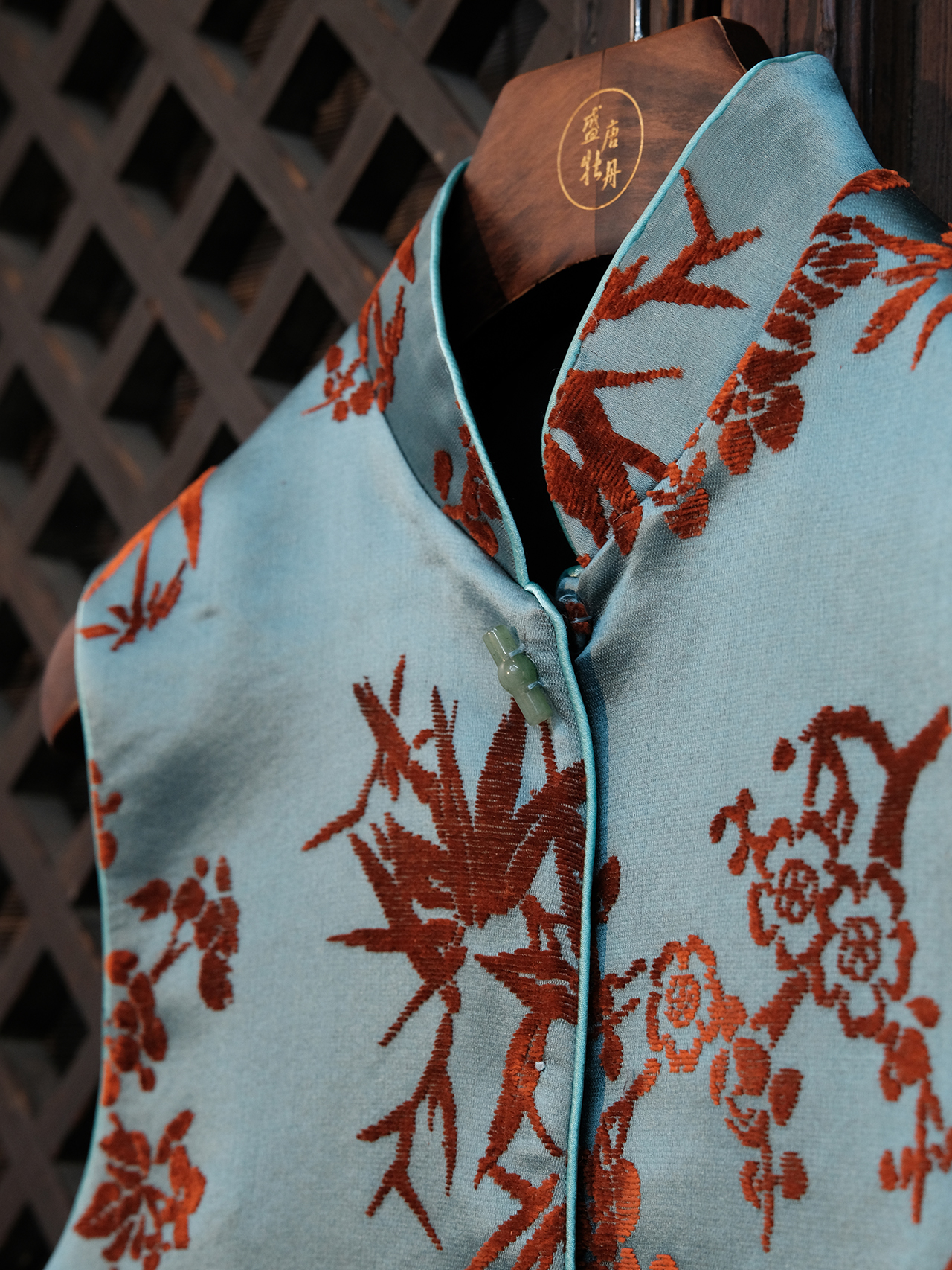 盛唐牡丹| 宝石蓝底色真丝漳绒马甲
