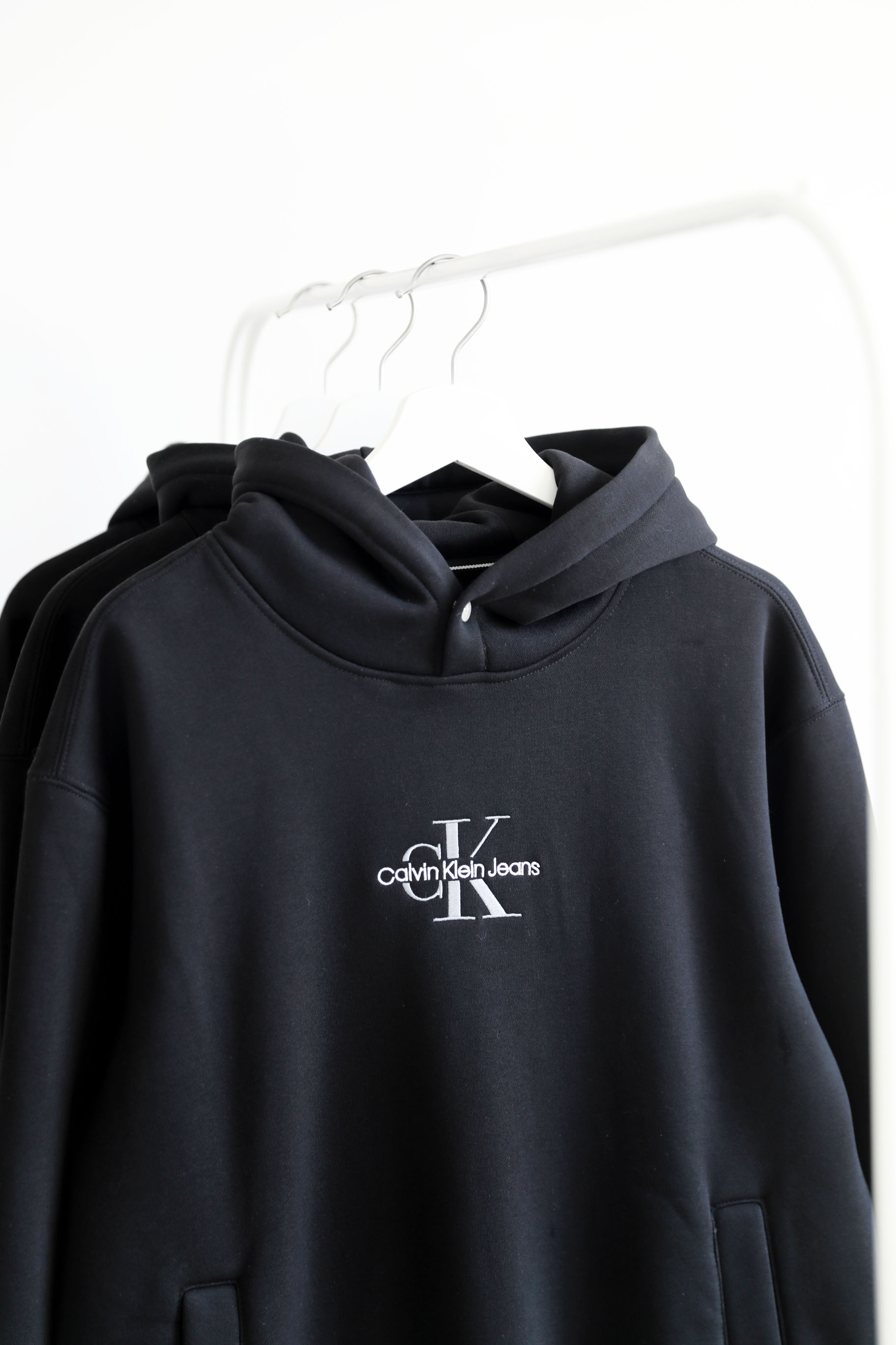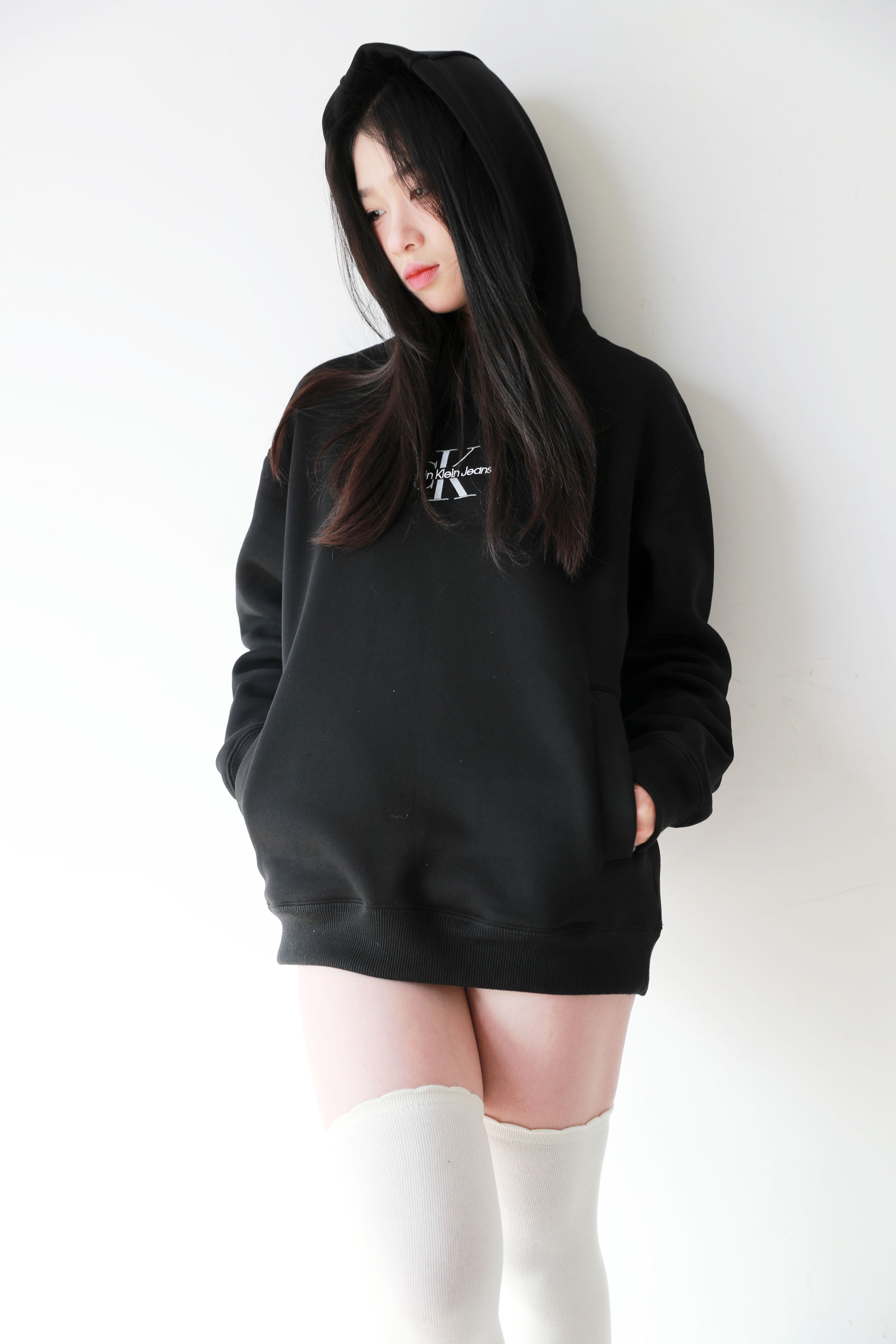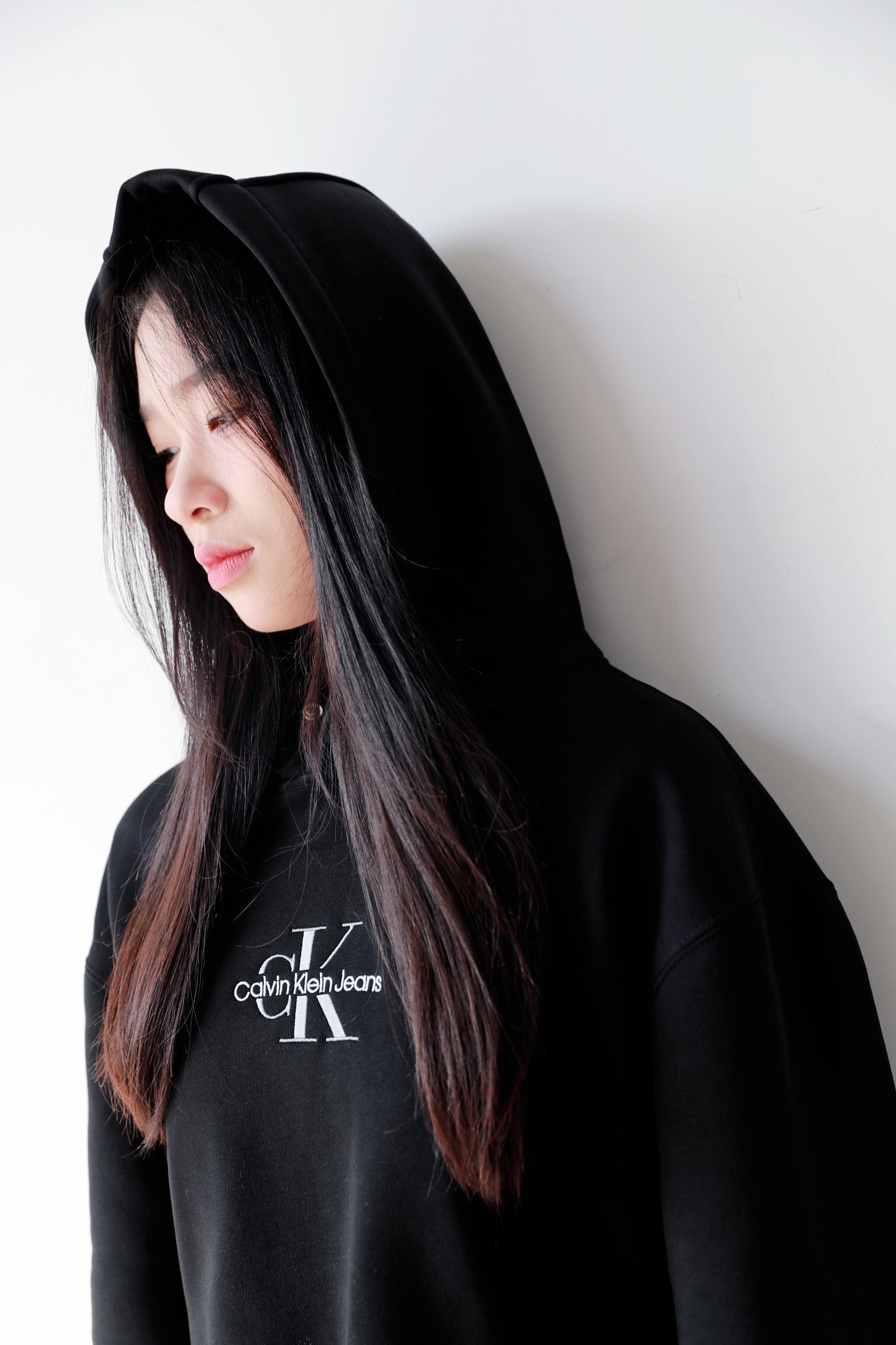 黑武士加绒卫衣,这个好看。胸口小标刺绣曜夜黑连帽外套A112366