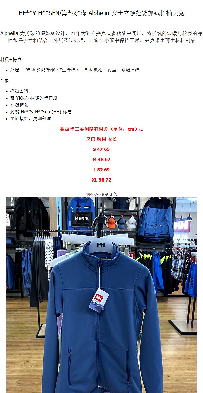 HE**Y H**SEN/海*汉*森 Alphelia 女士立领拉链抓绒长袖夹克