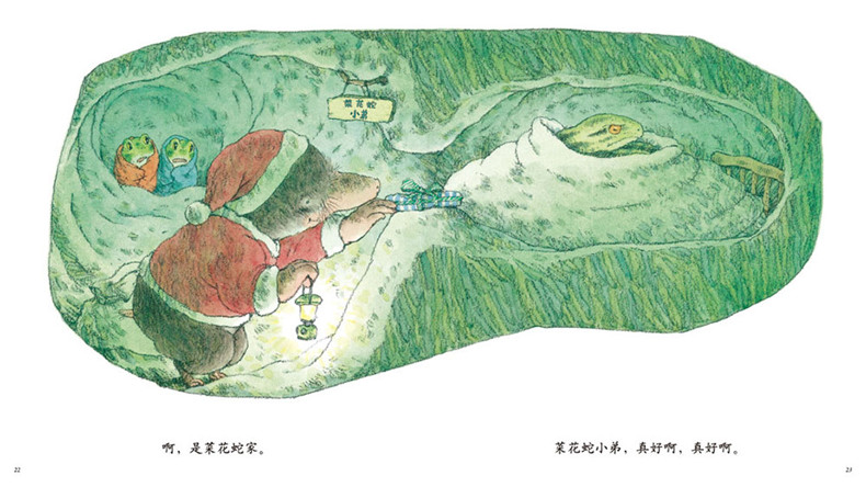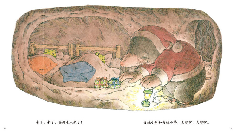 《真好 真好》冬天来了,青蛙小弟说:“我希望圣诞老人的到来。”青蛙小妹说:“我希望礼物来了。”她俩悄悄地跟着圣诞老人去送礼物,发现只要好好睡觉的小动物都可以得到一份圣诞礼物。赶回家里安心睡觉的青蛙兄妹会得到圣诞老人送来的礼物吗?