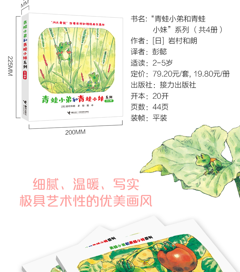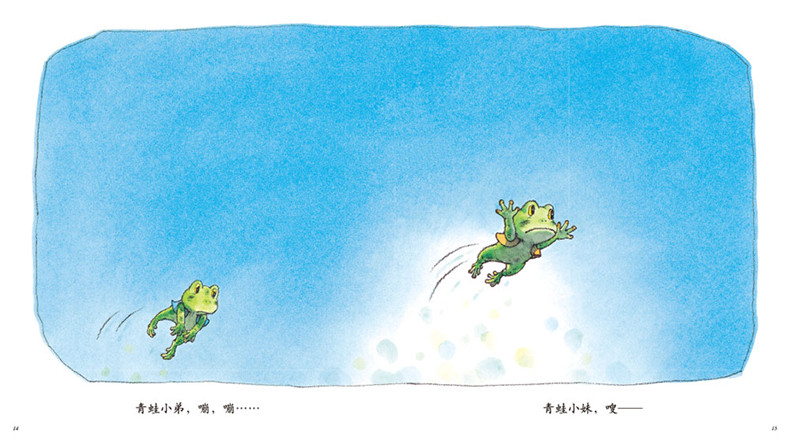 青蛙小弟和青蛙小妹的性格一点儿都不一样,他们一个安静呆萌,一个活泼冒失,但无论做什么都一起行动,遇到危险也绝不会丢下对方。