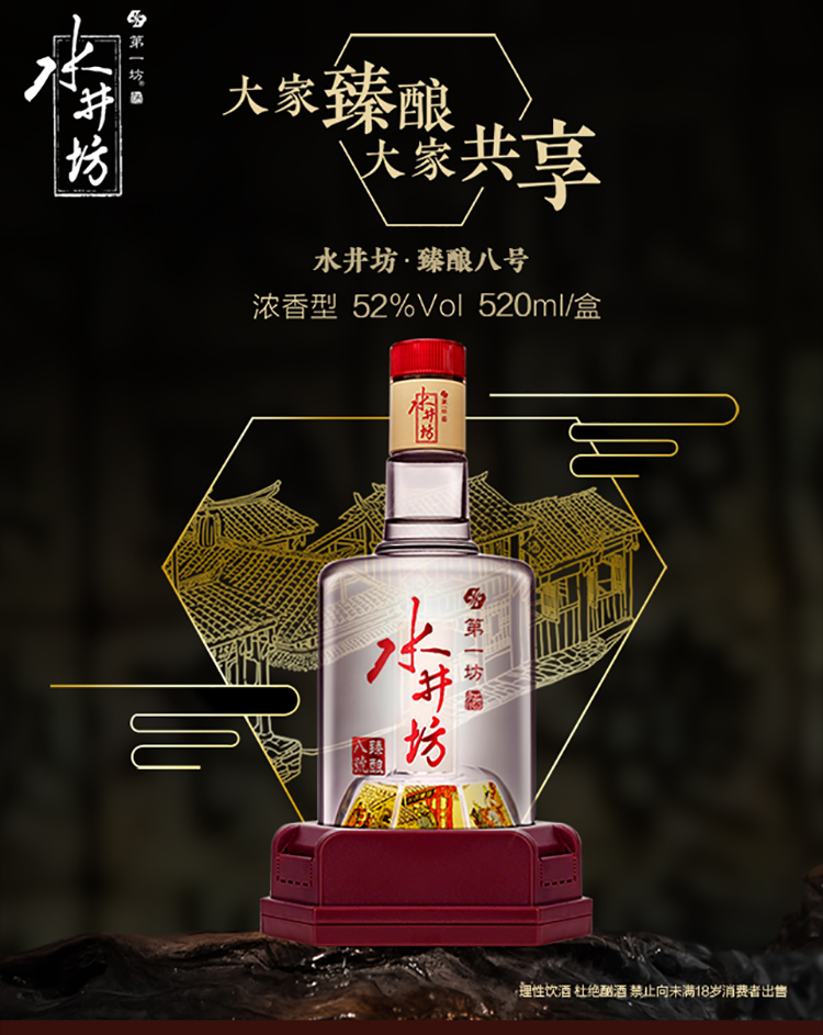 【扫码有奖】水井坊臻酿八号 浓香型白酒 500ml(52度)