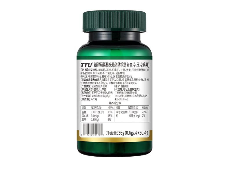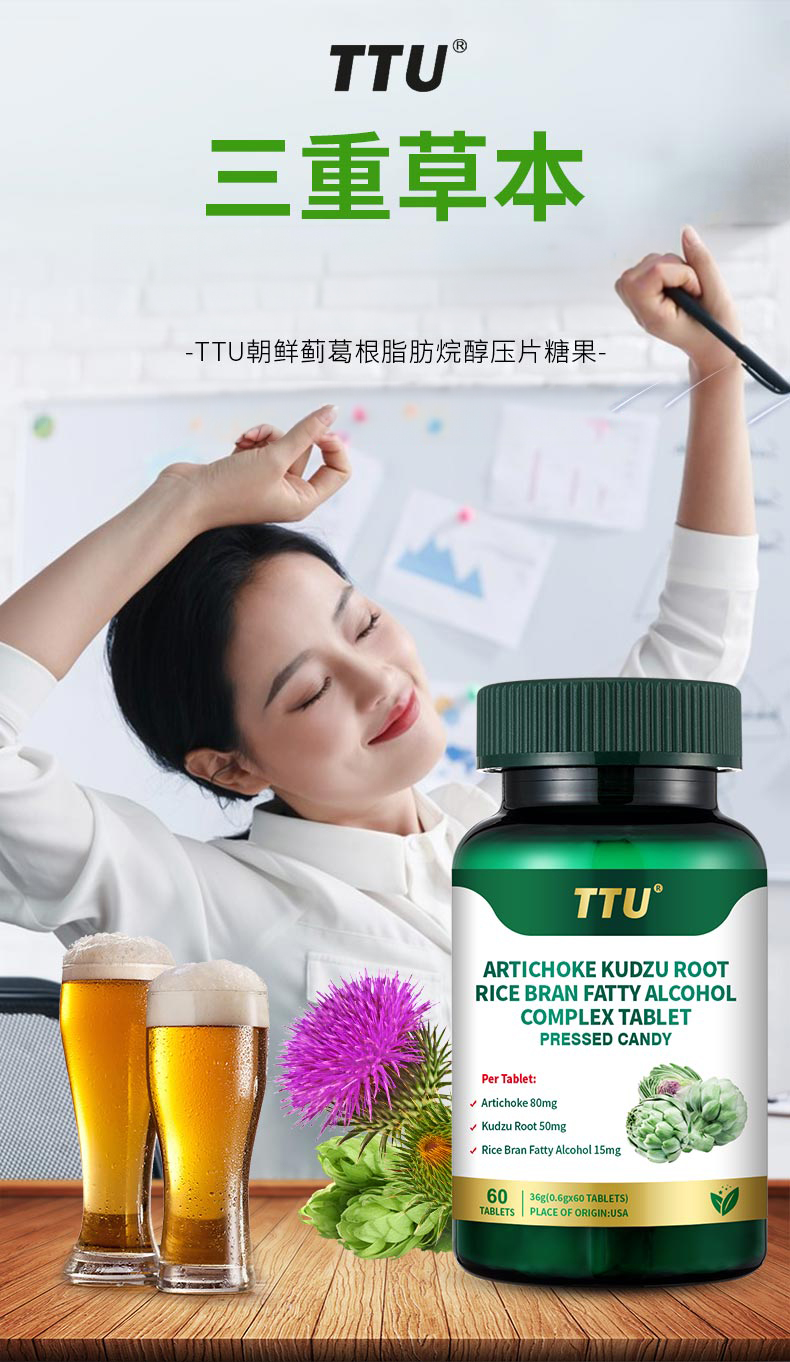 美国原装进口TTU朝鲜蓟葛根脂肪烷醇压片糖果 酒后两粒