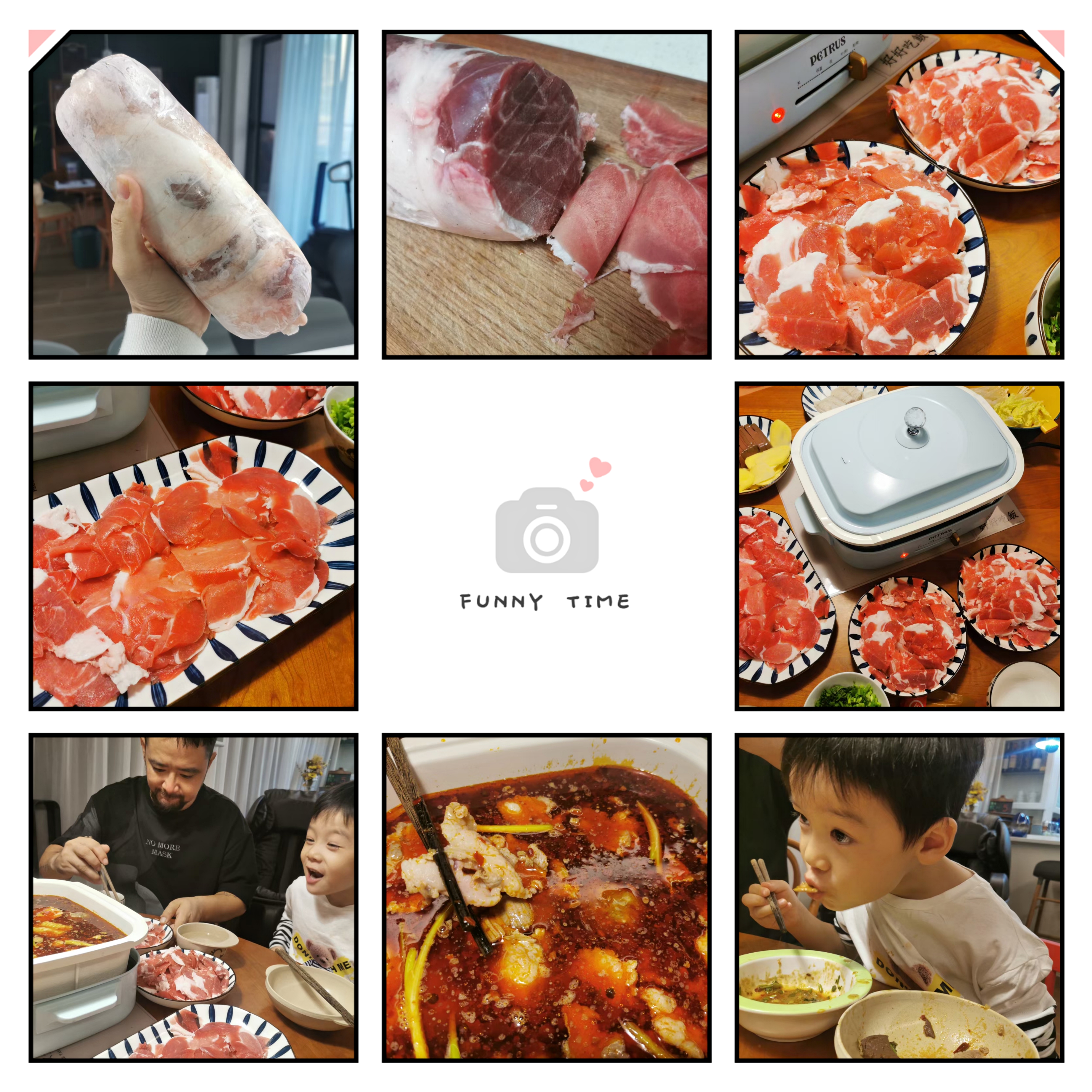 羊肉火锅:一卷3斤的羊肉卷切片出来后满满的三大碗,我们一家三口吃到撑还没吃完~~