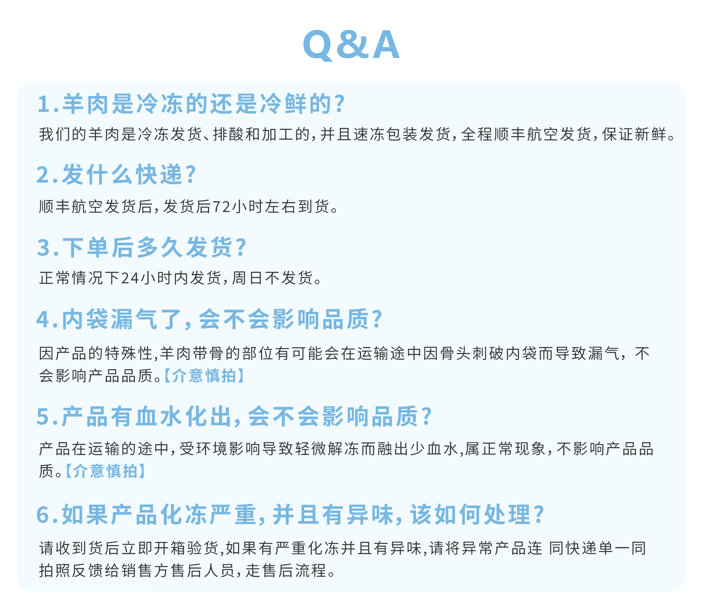 我们对今年的产品做了优化升级,全部为1斤的小包装,更加注重精细化分割,用心做好每一块肉,改善包装,增加质检程序,顺丰包邮到家,保证新鲜。