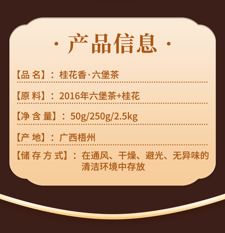 【桂花六堡】六山知野丨 2016桂花香六堡 广西六堡茶 黑茶 50g/250g/2500g 罐装(支持试喝1泡)