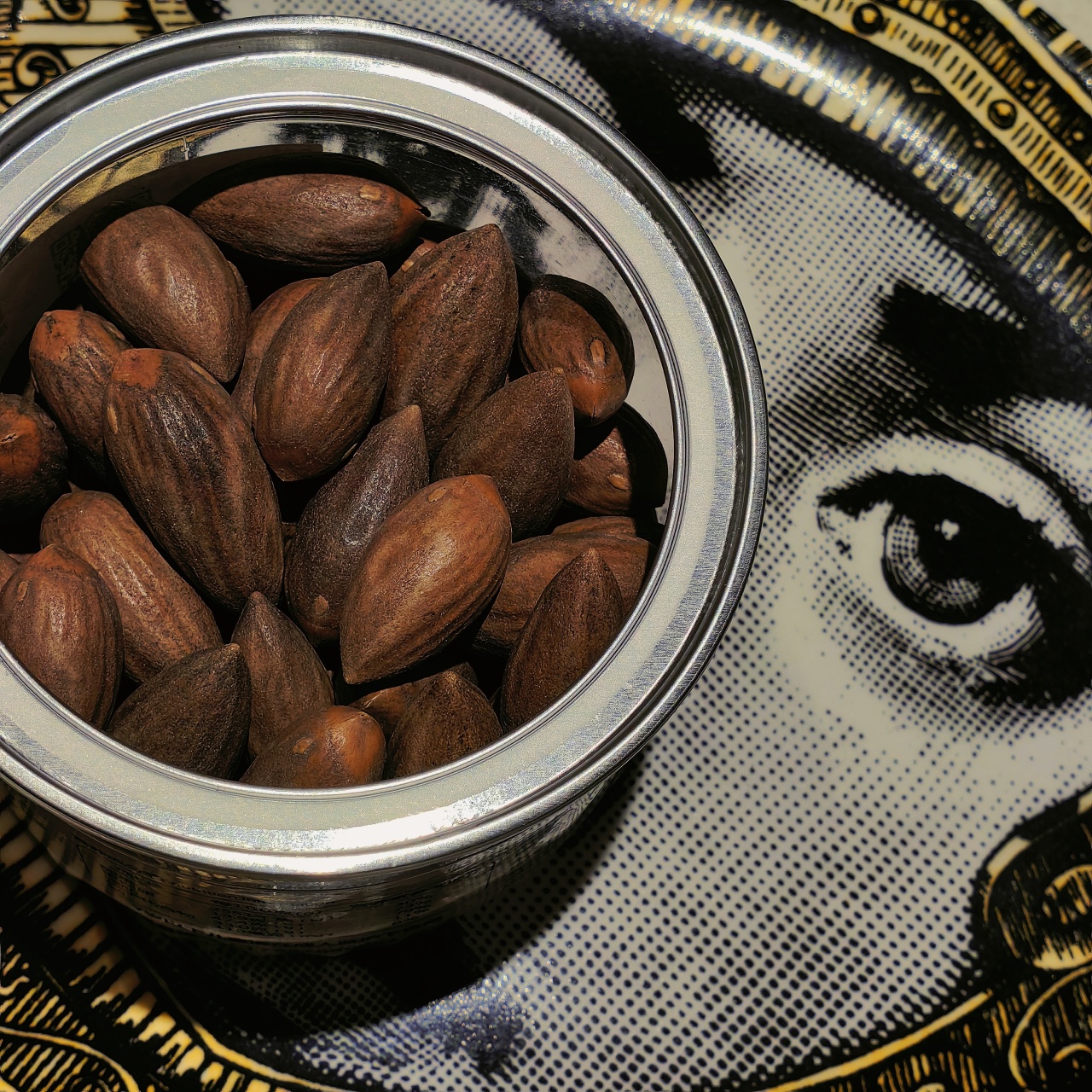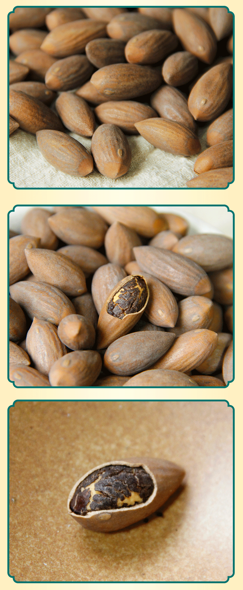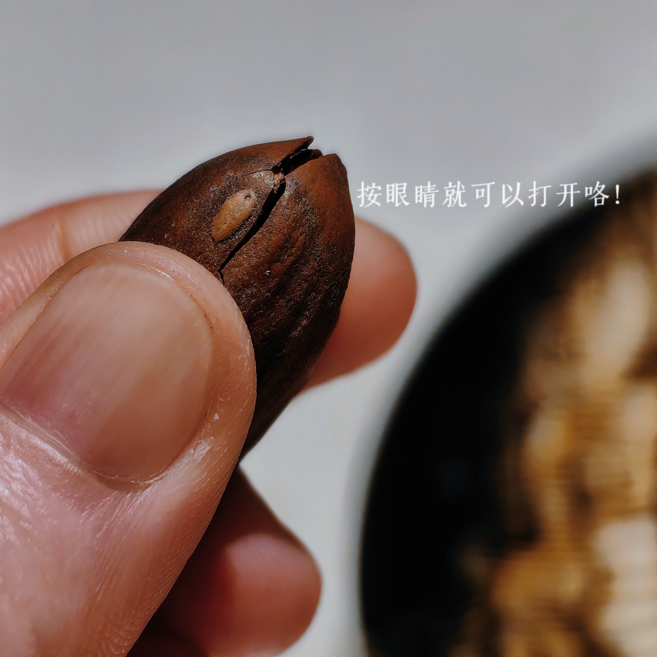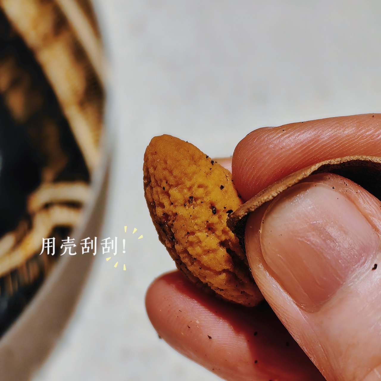香榧可以不用咬哦,壳的一端都有两道裂口,俗称“香榧眼”,只要两指按住一捏,就很容易剥了,再将果仁按在壳中稍稍旋转,去除黑色果衣,一口咬下,细密脆香,没有太多油脂,满口皆是山林树木的香气,非常结实,虽然仅用了粗盐调味,却是五味俱全,满嘴松香!