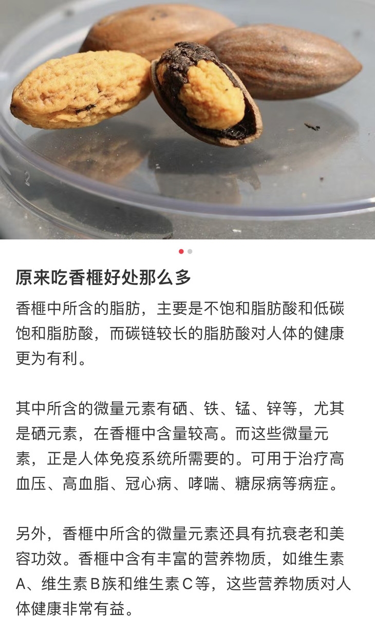香榧,被誉为“坚果之王”,自古以来便以其独特的口感和稀缺获得大家的青睐,苏轼也曾赞美它为“彼美玉山果,粲为金盘实”。香榧营养价值很高,含有丰富的蛋白质、脂肪、粗纤维、钙、磷、铁等,还含有多种不饱和脂肪酸,其主要成分是油酸、亚油酸、金松酸等,对TIAO节血脂及妔氧化有一定帮助,有嗯嗯问题的也可以试试,也是润肠的一把好手哦!