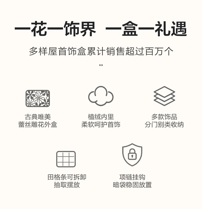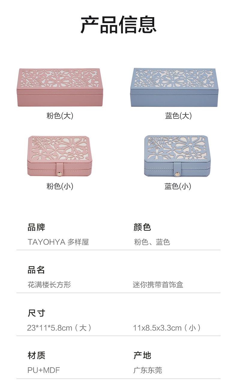 6F TAYOHYA/多样屋 花满楼双开创意首饰盒收纳盒方形高档耳环项链盒