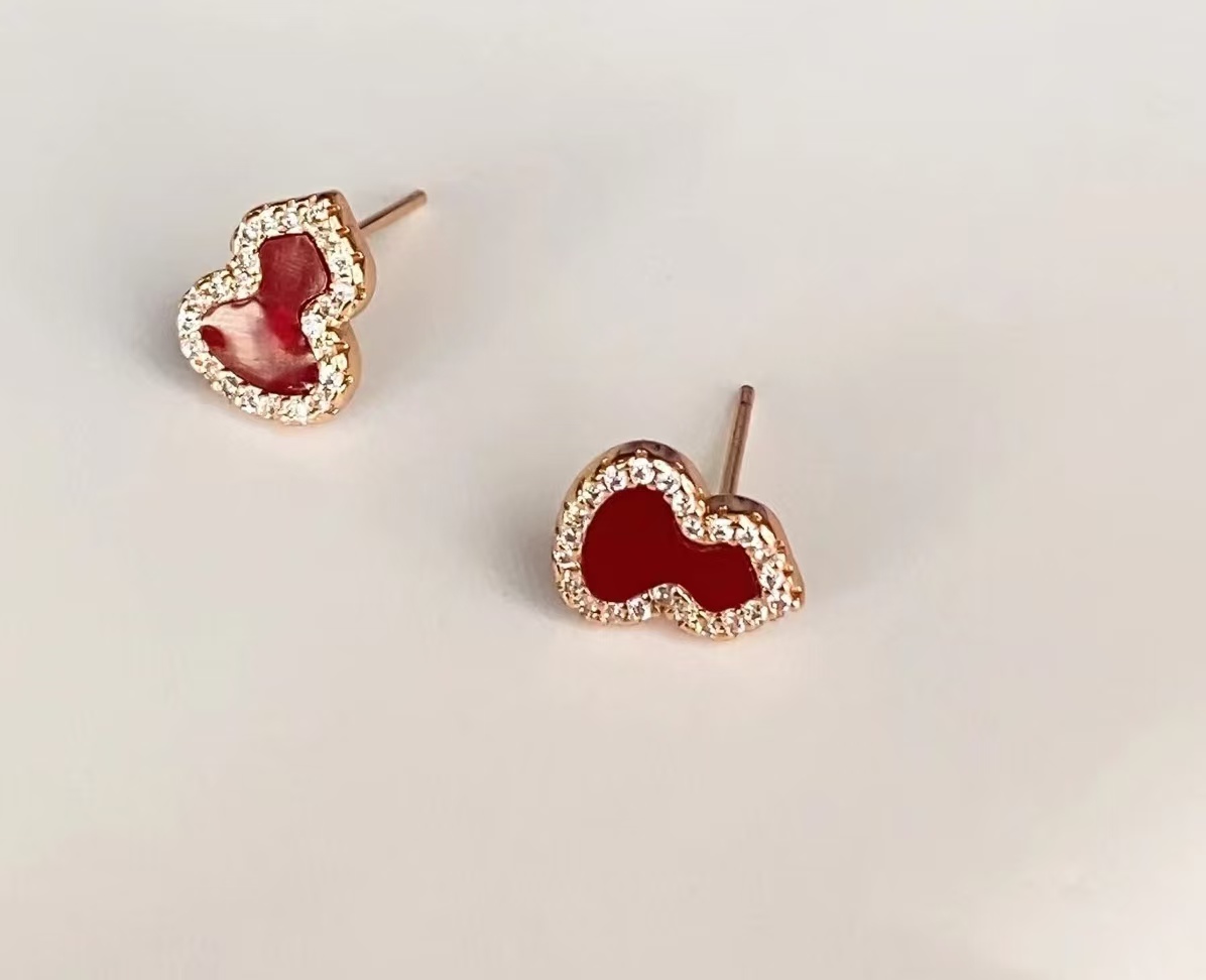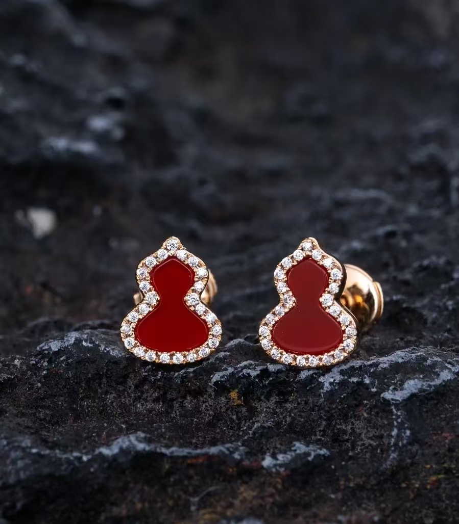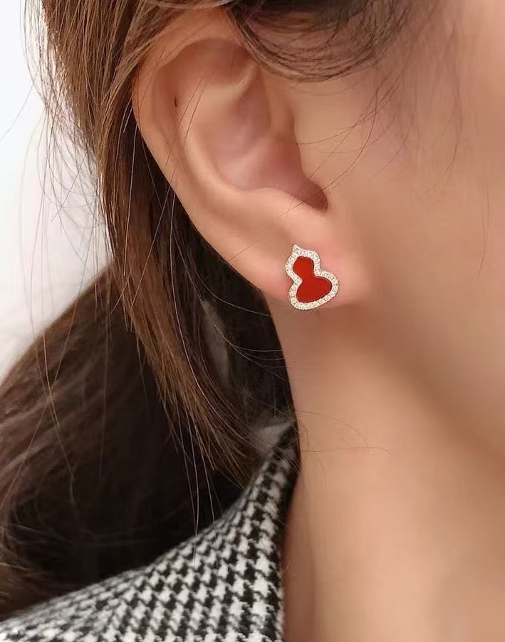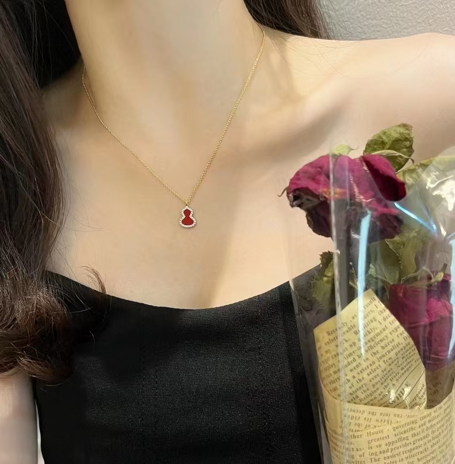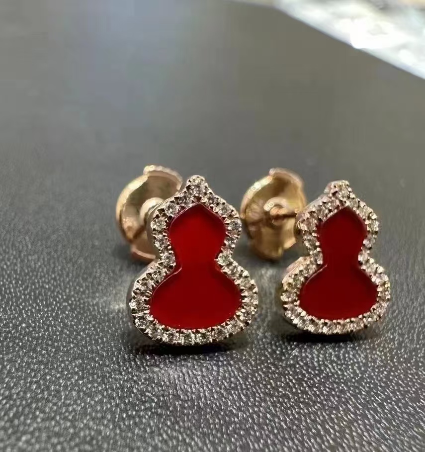Qee原版麒麟葫芦,红色葫芦是红珐琅材质,手工镶钻,项链,戒指,耳钉都是镀18K金厚0.4。