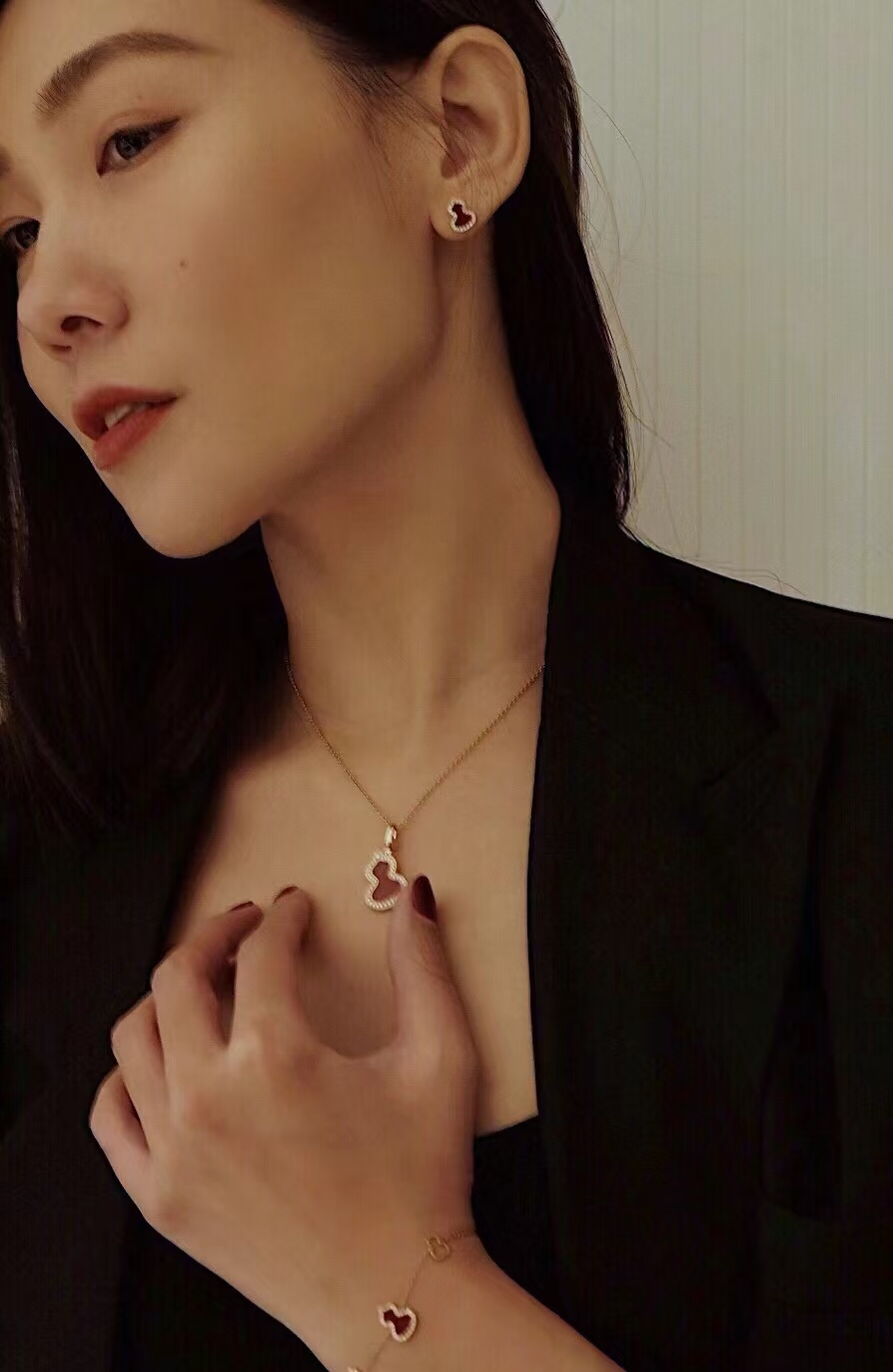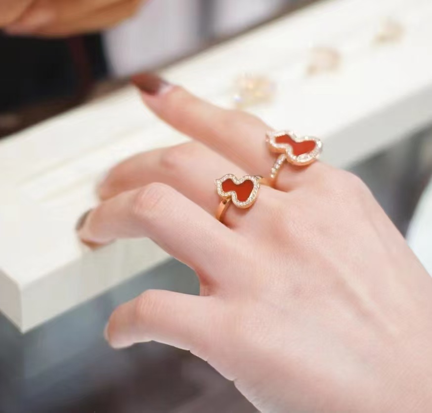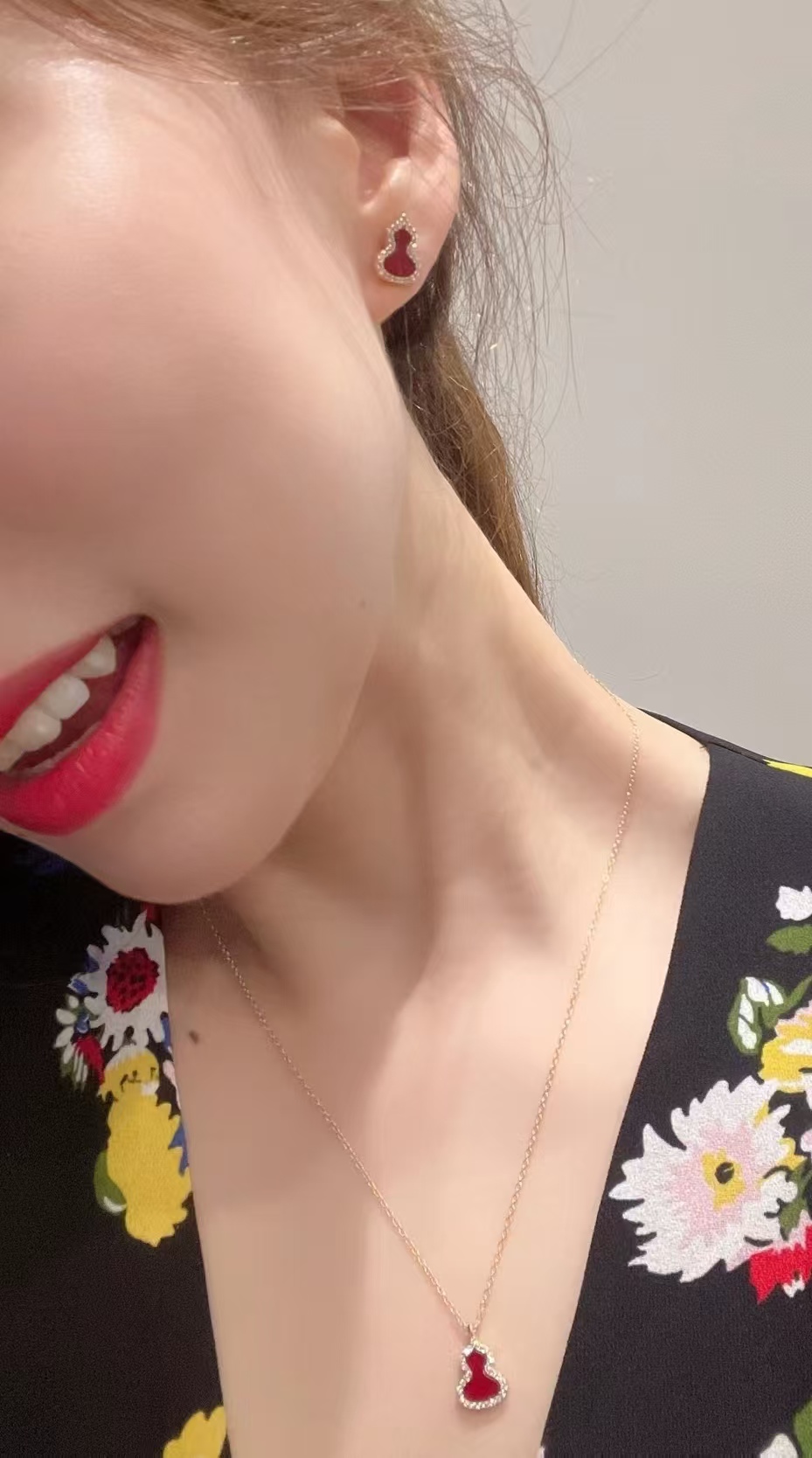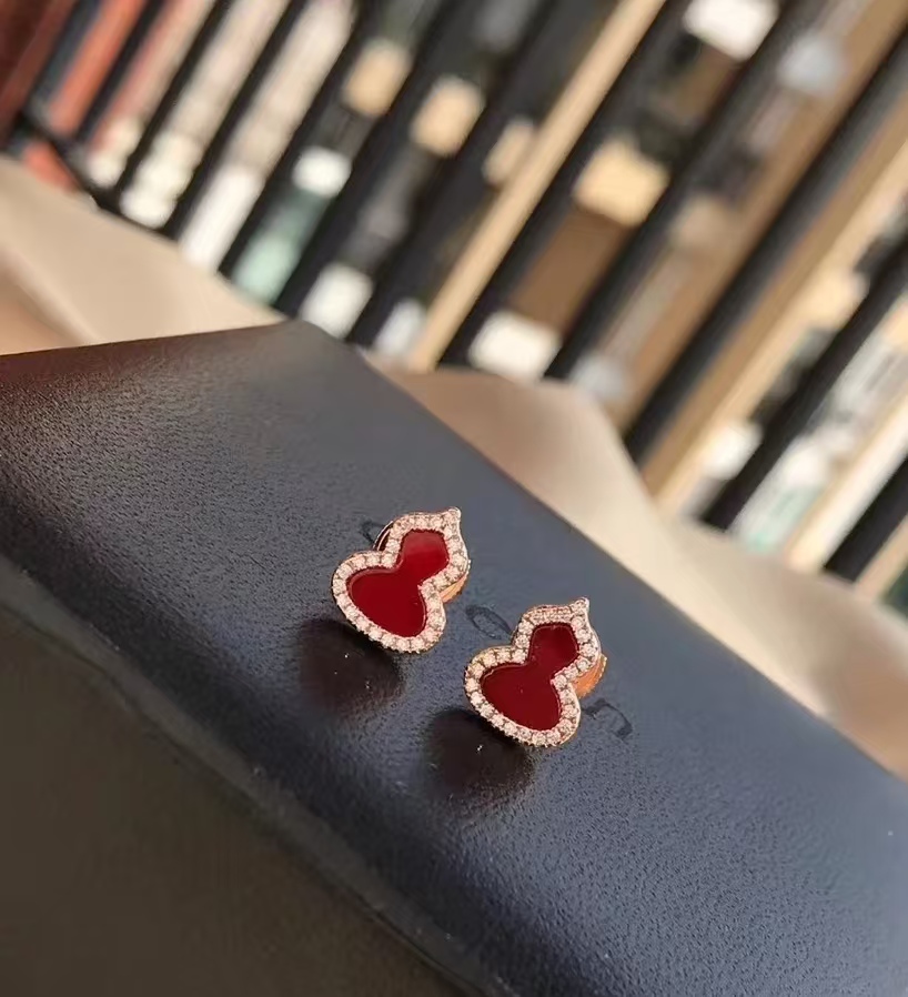 Qee原版麒麟葫芦,红色葫芦是红珐琅材质,手工镶钻,项链,戒指,耳钉都是镀18K金厚0.4。