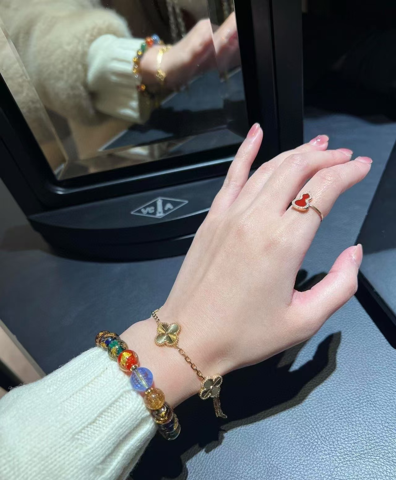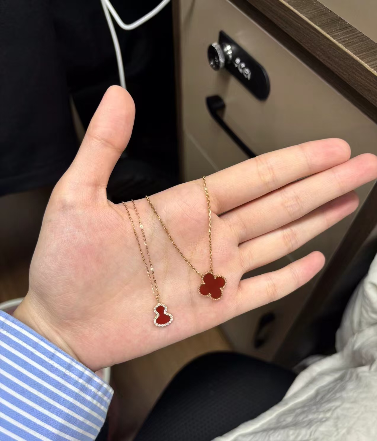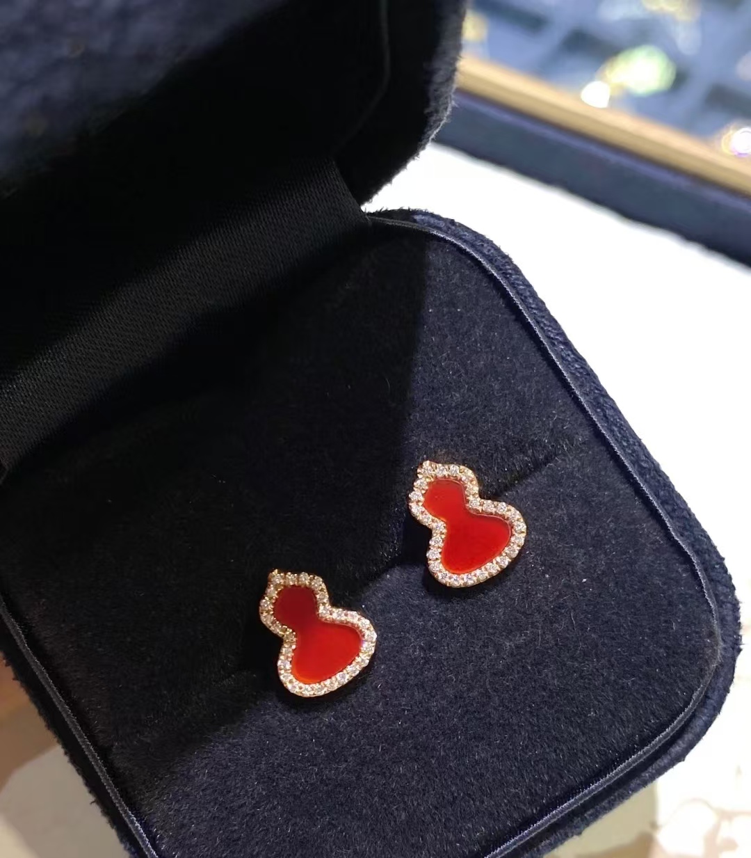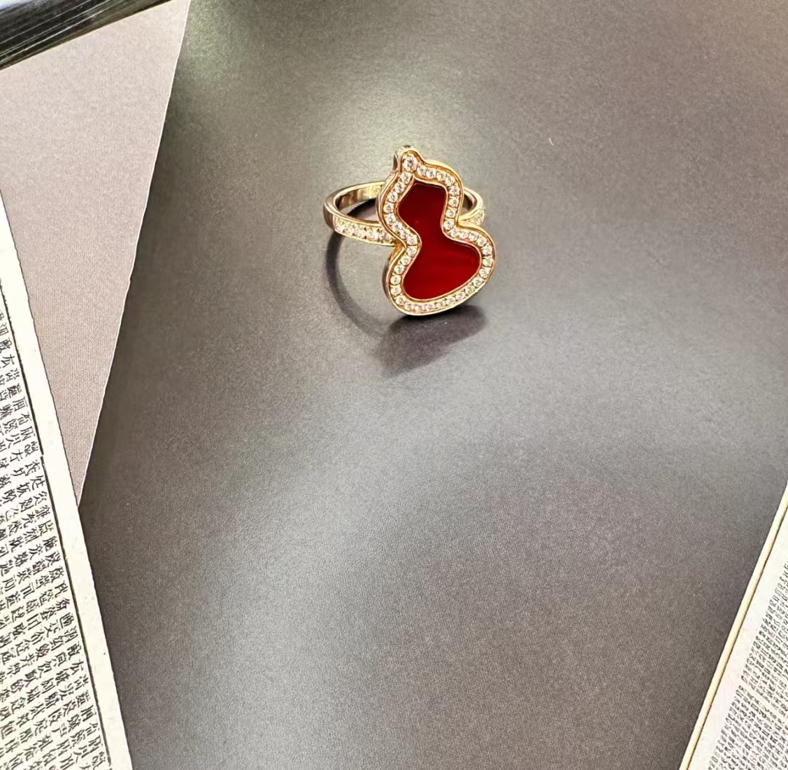 Qee原版麒麟葫芦,红色葫芦是红珐琅材质,手工镶钻,项链,戒指,耳钉都是镀18K金厚0.4。