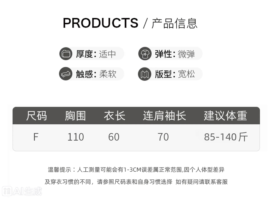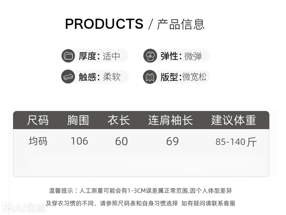 尺码说明:衣服版型宽松,80-145斤的姐妹都可以穿。