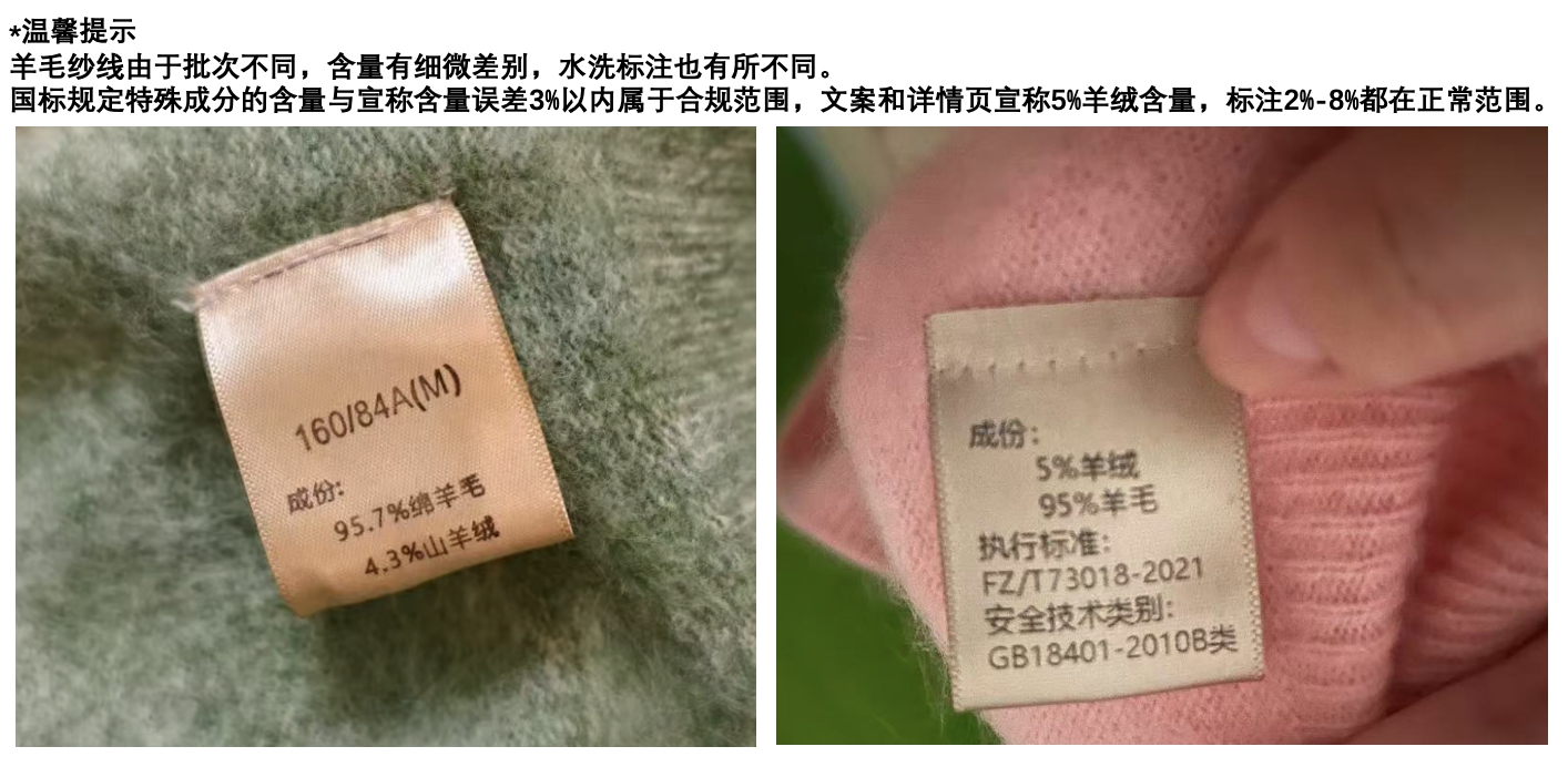 洗涤建议:建议干洗,或用中性洗涤剂低温手洗。