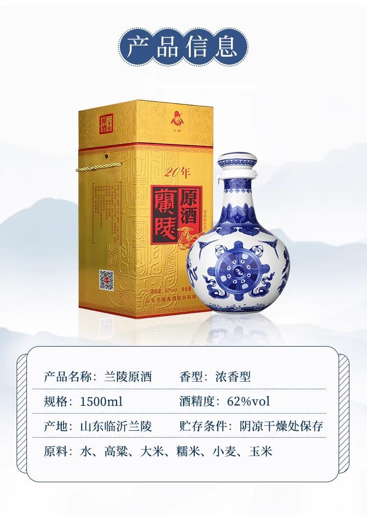 兰陵 二十年原酒62度兰陵1.5L浓香型白酒纯粮食送礼盒