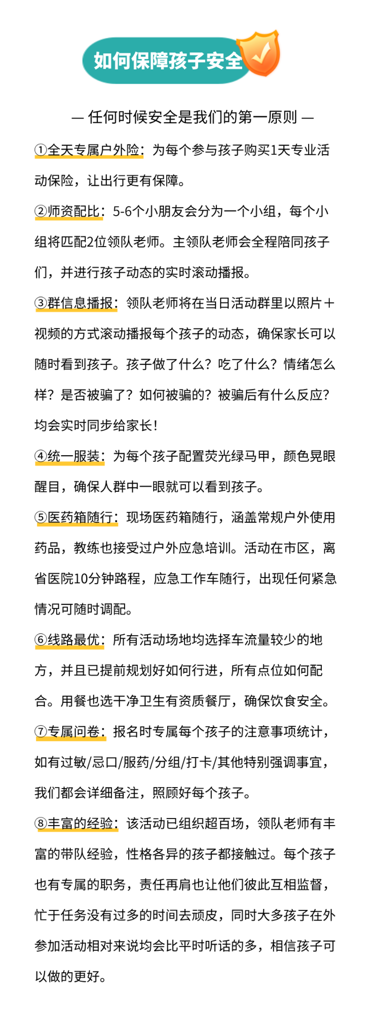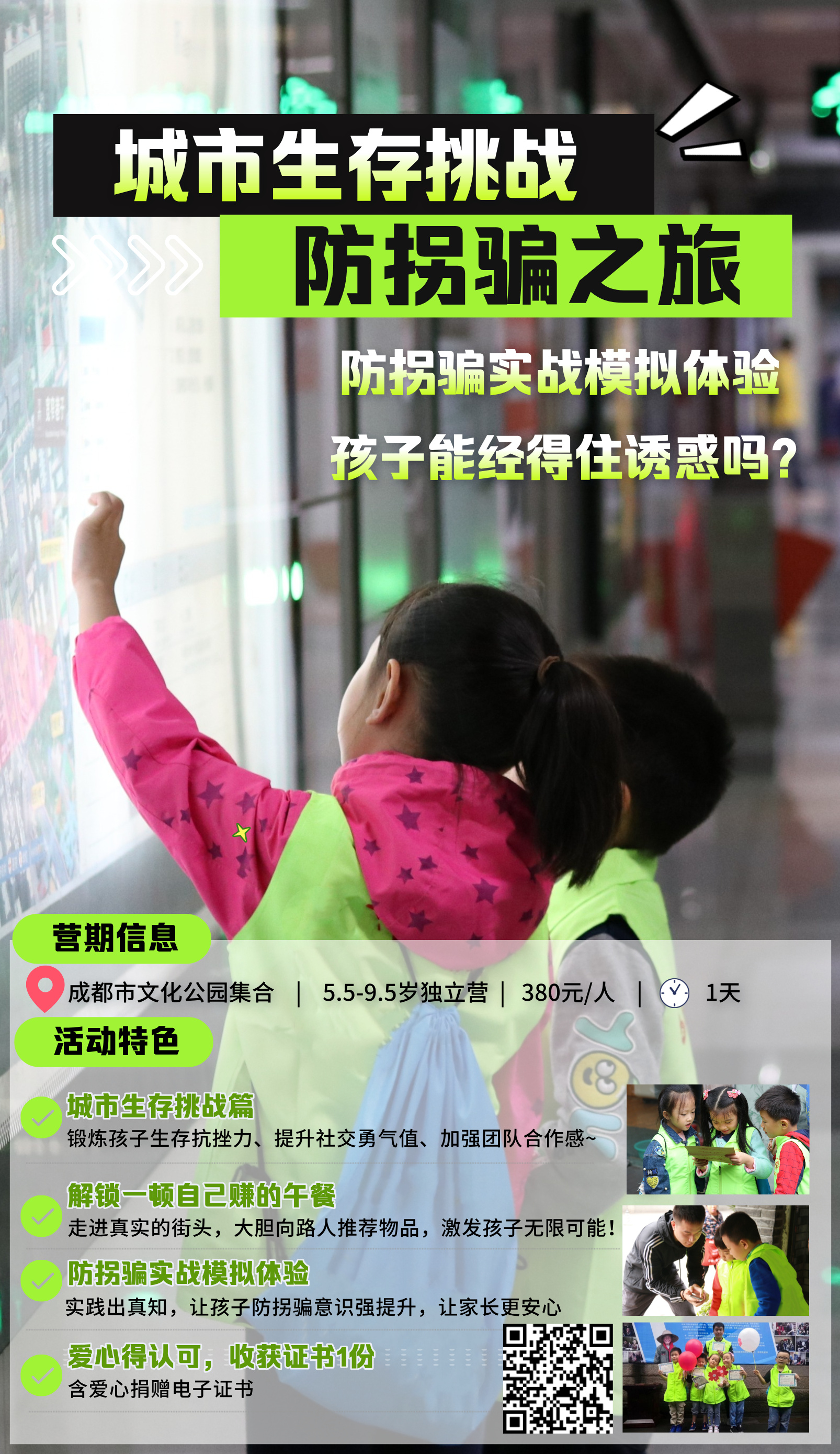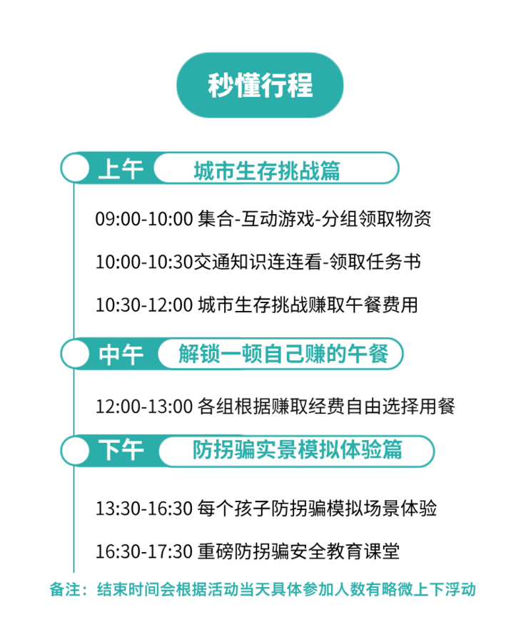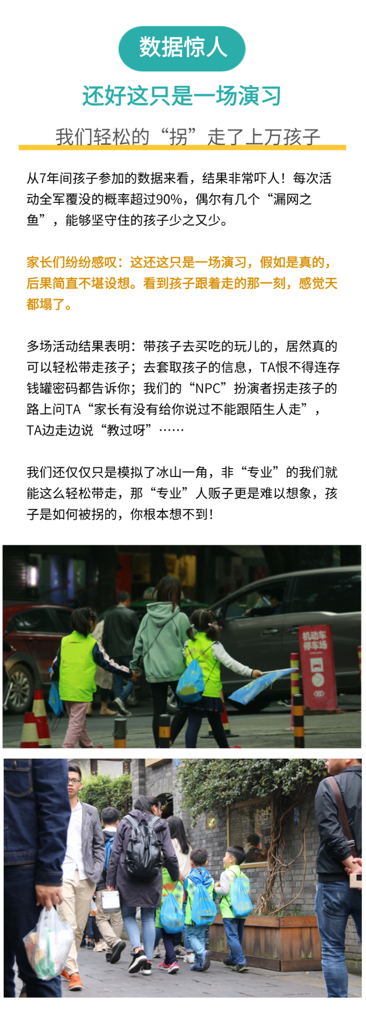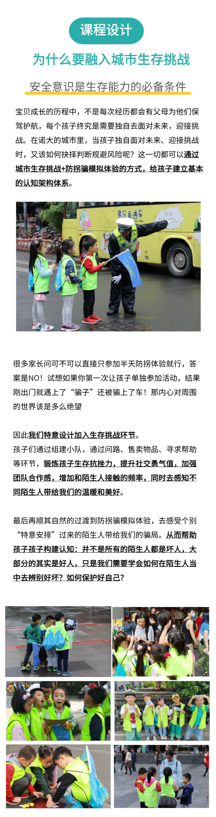 【特别要求】如有意愿参加本次活动,想看到宝贝体验拐骗的真实反映,请家长一定不要透露下午防拐骗环节,只需对宝贝说参加城市生存挑战活动即可!