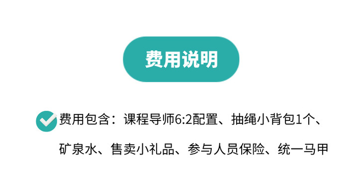 【费用包含】专业户外保险费(提供户外救援)、活动组织费、抽绳背包、饮用水、餐费、售卖物品、横幅